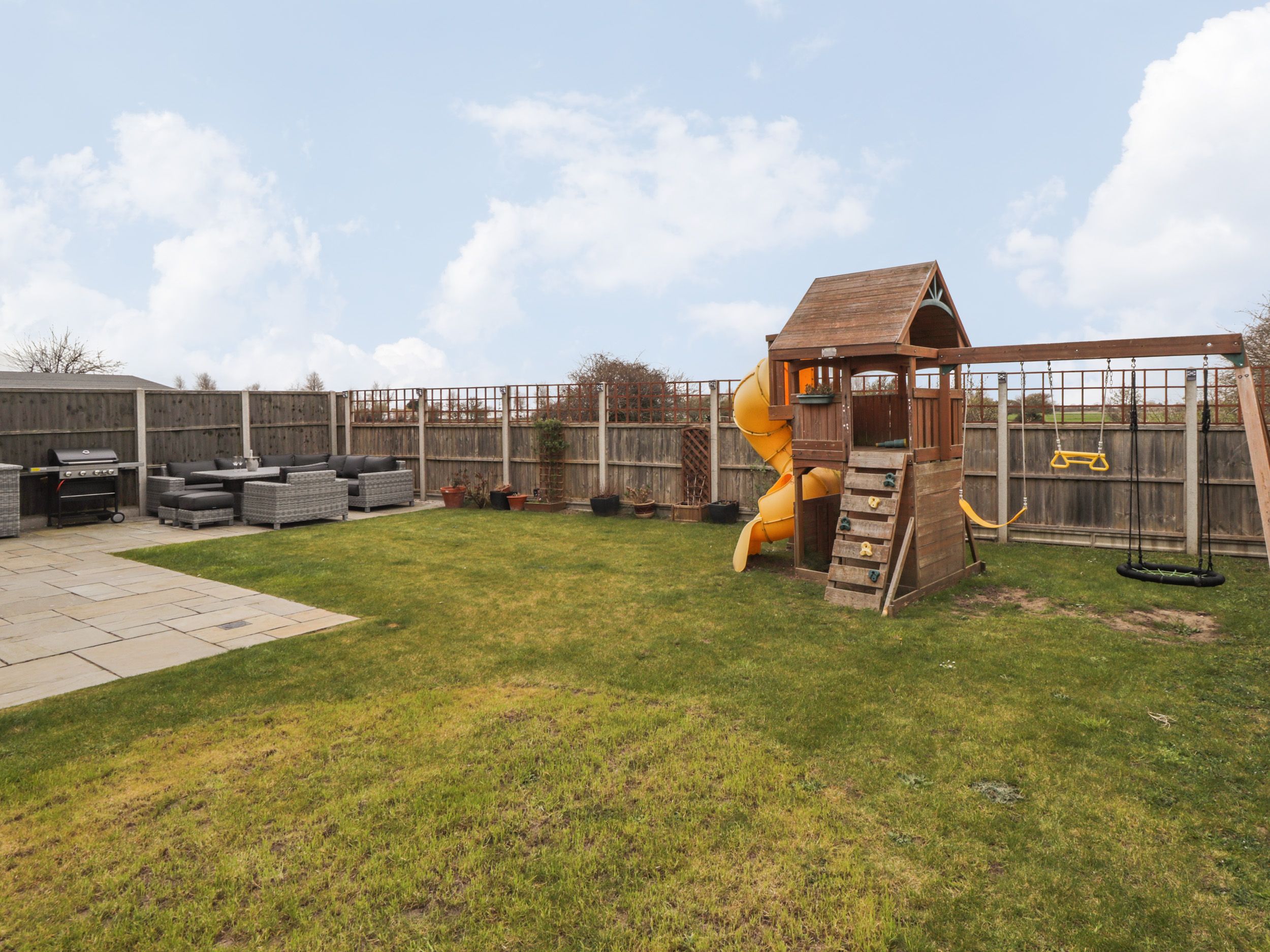 Gas central heating with woodburning stove. Electric double oven, gas hob, fridge, freezer, wine cooler, washing machine, dishwasher, TV and super fast WiFi. Fuel and power inc. in rent. Bed linen and towels inc. in rent. Highchair available, 2nd highchair available upon request. Travel cot available upon request. Off-road parking for up to 6 cars. Enclosed patio and lawn garden with children's play area. Retractable washing line available in the garden. Sorry, no smoking and no pets. Shop 0.3 miles, pub 0.4 miles. Littlestone-on-sea a short stroll (<5 minutes) from the property. Please note: this property does not accept stag/hen parties or similar. Please note: Property only accepts bookings with 3 nights minimum. Family bookings for up to 8 people are accepted. Bookings for 8 adults must enquire to be referred to the property owner before securing booking.