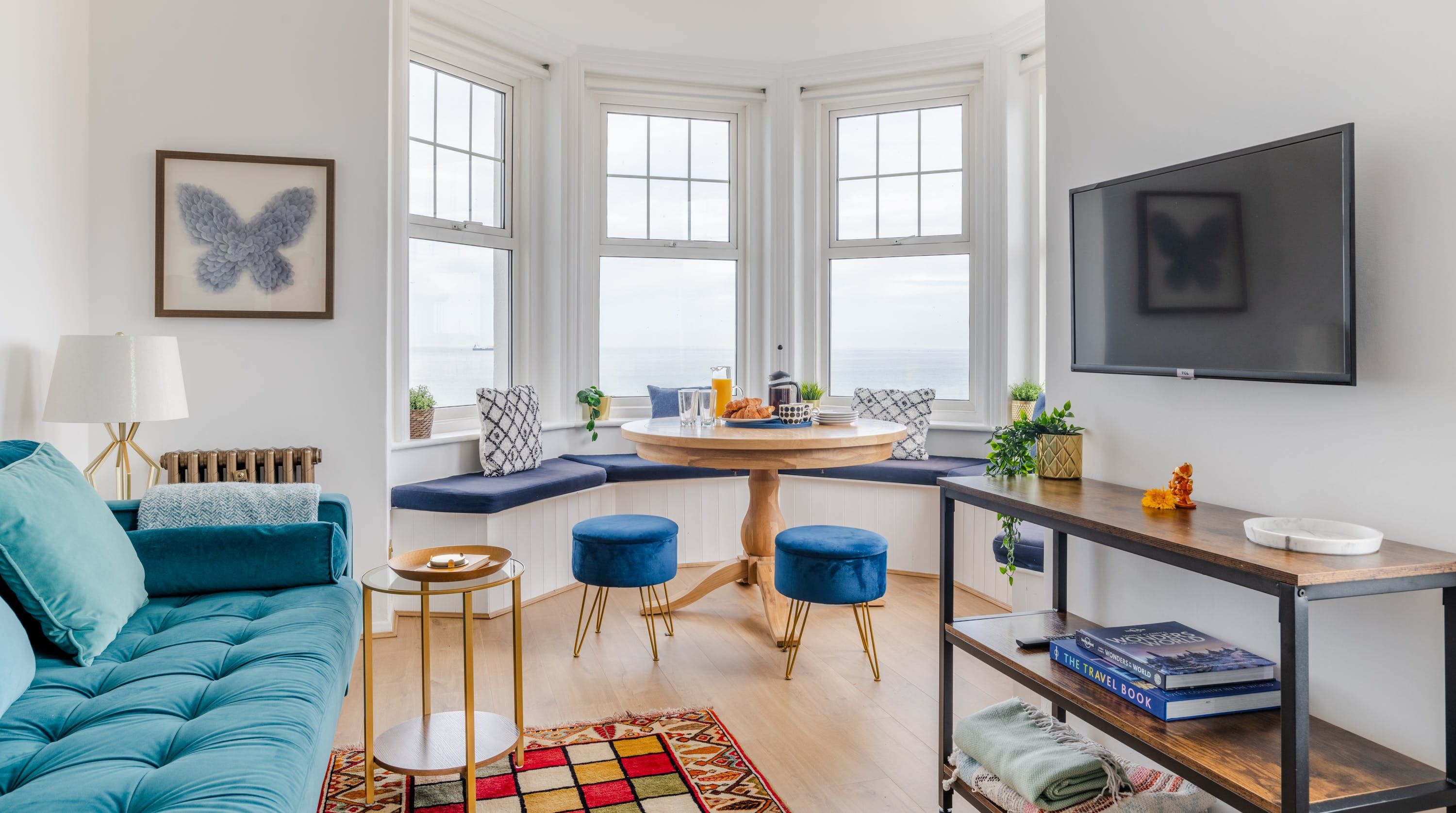 Mesmerising sea views are what steal the show at this fabulously located Margate apartment. Any closer to the water and you'd be swimming in it – at least, that's how it feels from the comfy seats in the big bay window. It's the perfect spot to relax with a cup of tea or a glass of wine and watch the tides change – or, if you're in town on business, you'll find it makes an excellent desk, although, with vistas like that, we'd definitely focus more on the scenery than our work.