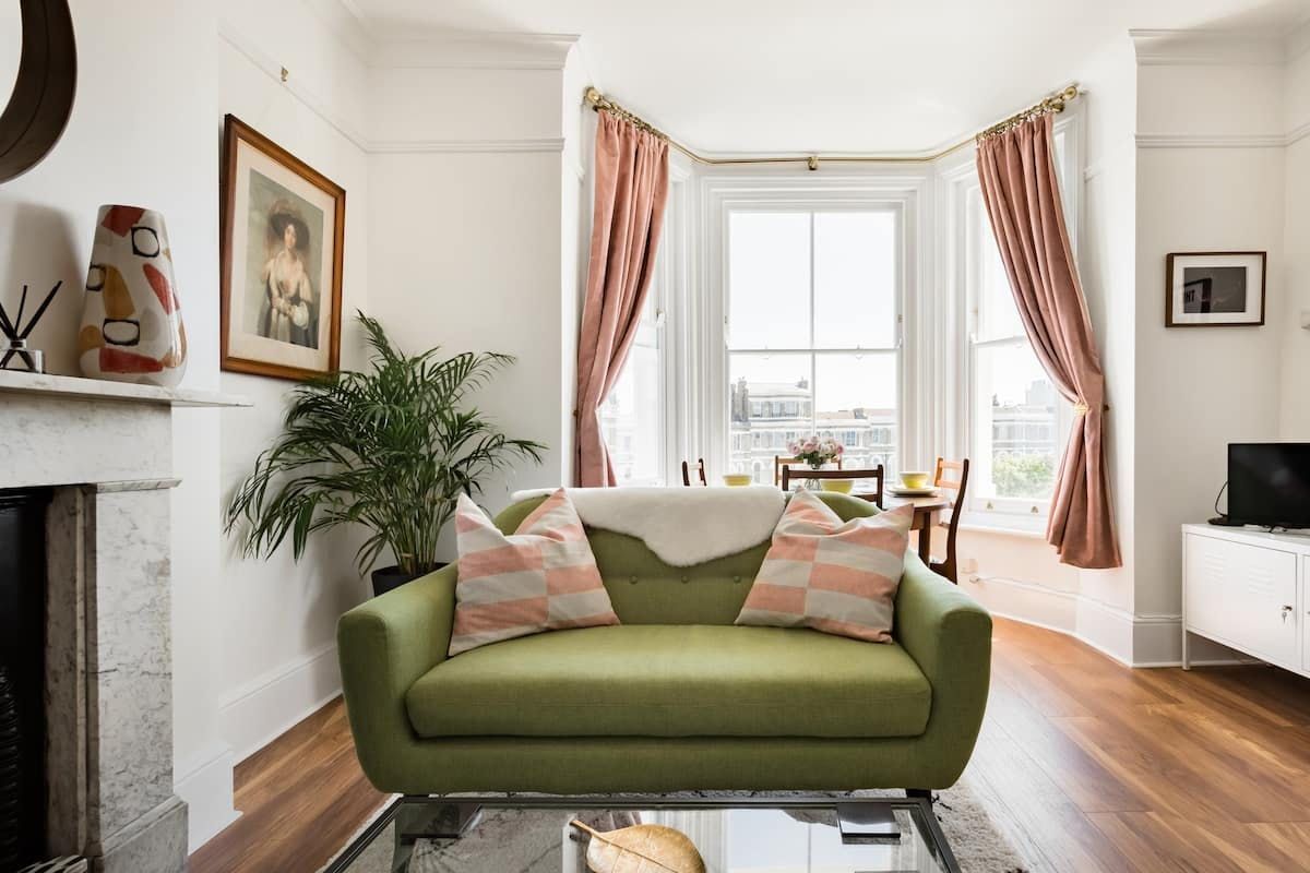 Oh, we do like to be beside the seaside, especially when the homes are as pretty as this. Part of a grand Victorian building positioned next to a square from the same era, the apartment benefits from period features such as the ornamental fireplace and a big bay window that lets in ample amounts of natural light into the living room. It also means that it's possible to see the coastline from the dining table. The furnishings fit into the current trend for mid-century influences, while the kitchen and bathroom are each dazzlingly white. If the sunshine makes an appearance, you can walk fifteen minutes to Margate's main beach or Walpole Tidal Pool, and go for a dip. When it's raining, why not head to the Turner Contemporary art gallery instead?