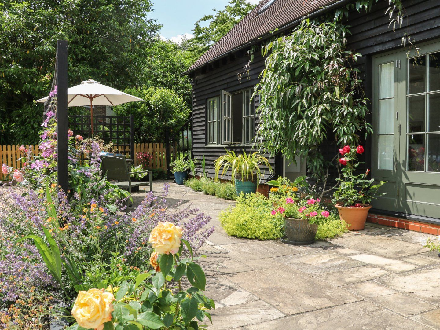 Holiday home The Barn at Sandhole Cottage is a wonderful detached bungalow resting near Pembury, Kent. All-ground-floor. Open-plan living space with king-size bed (zip/link, can be twin on request) dining area, sitting area with Smart TV and en-suite wet room with shower, basin and WC, 1 x double with en-suite walk-in shower, basin and WC. Kitchenette. Outside there is an enclosed front garden with patio and outdoor furniture. For your next adventure to the idyllic Kent countryside, choose The Barn at Sandhole Cottage.