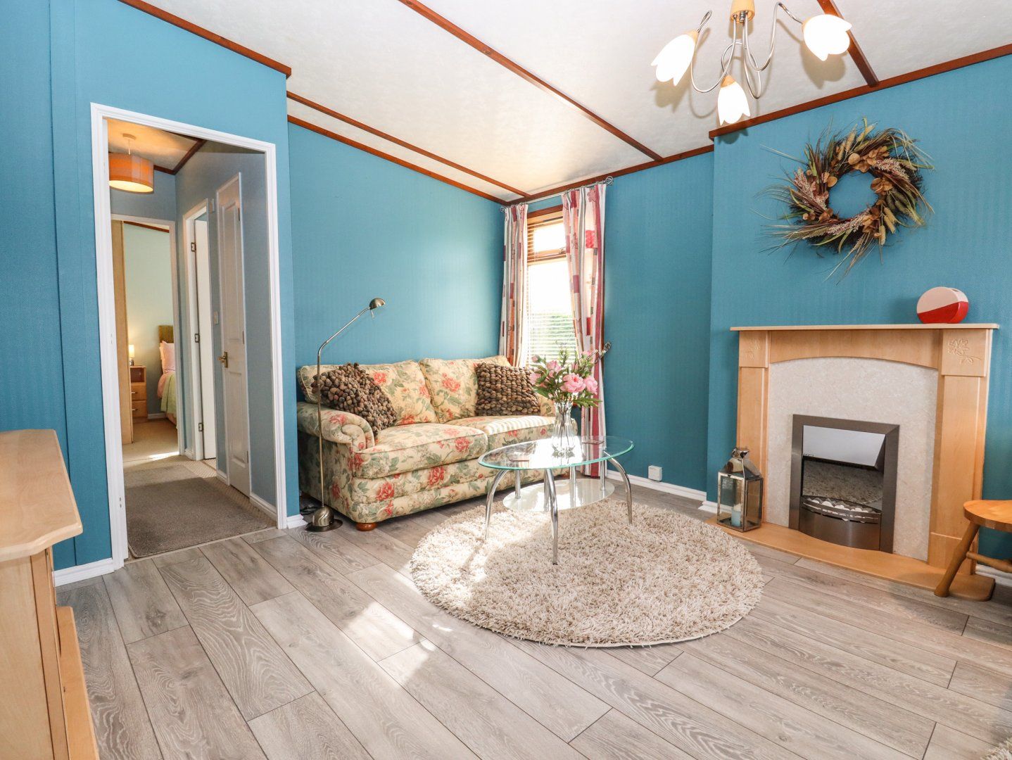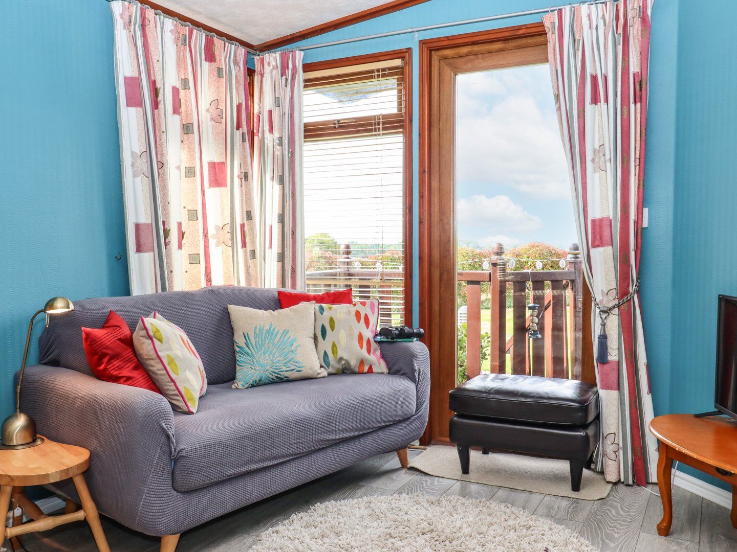 Amenities Gas central heating with electric fire. Electric oven, gas hob, microwave, fridge with ice-box and washing machine. TV and WiFi. Fuel and power inc. in rent. Bed linen and towels inc. in rent. Parking available to the rear of the lodges. Communal lawn and private decking enclosed decking with furniture. One well-behaved dog welcome. Sorry, no smoking. Shop 2.3 miles, pub 1.1 miles and beach 1.4 miles. Note: There are three steps up to the property, there is a handrail available, please take care. Note: Dogs are to be kept on a lead in the communal lawn/park