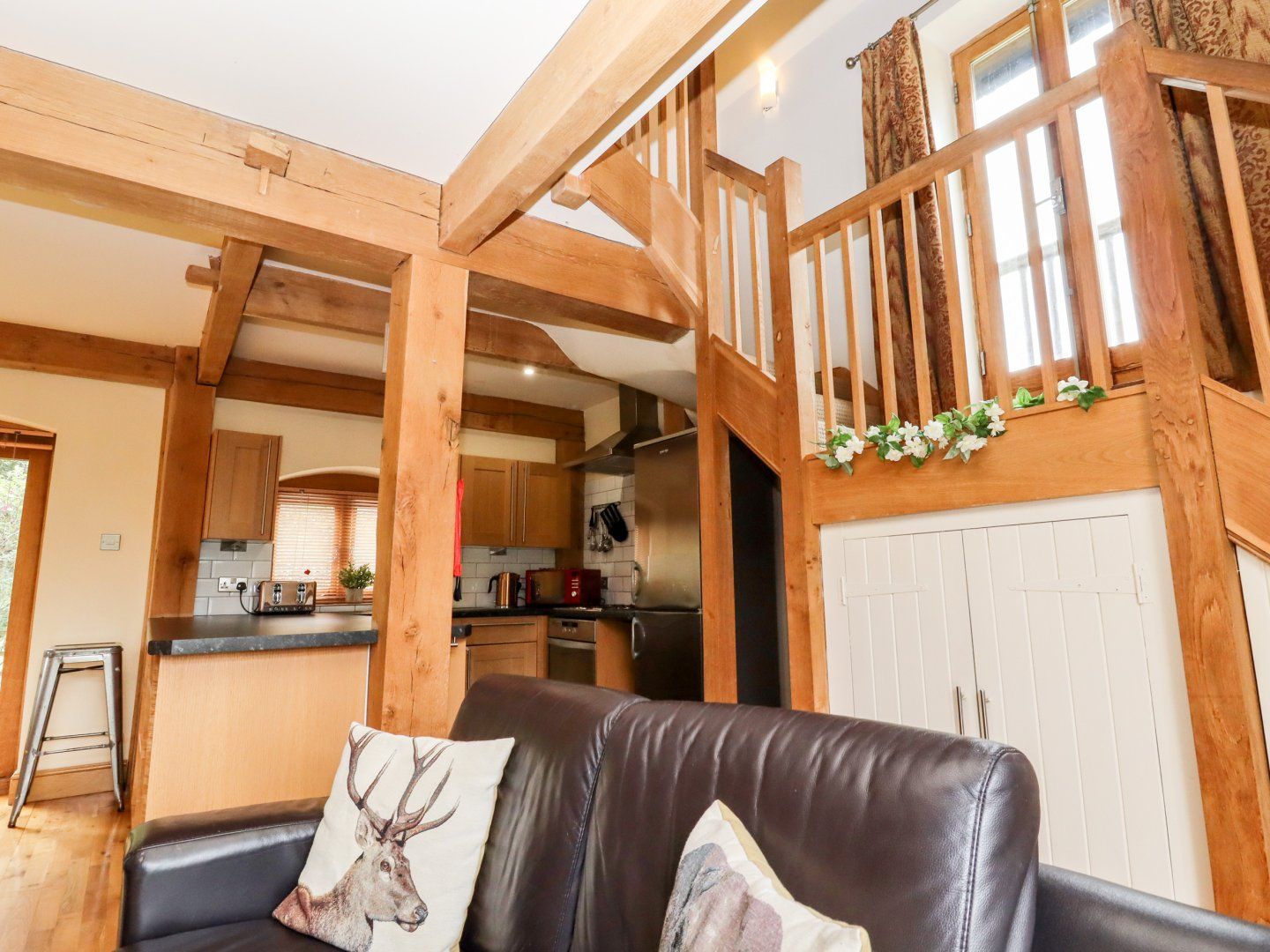 Accomodation Details Two bedrooms: 1 x king-size, 1 x twin. Shower room with walk-in shower, basin and WC. Open-plan living space with kitchen, dining area and sitting area with electric fire