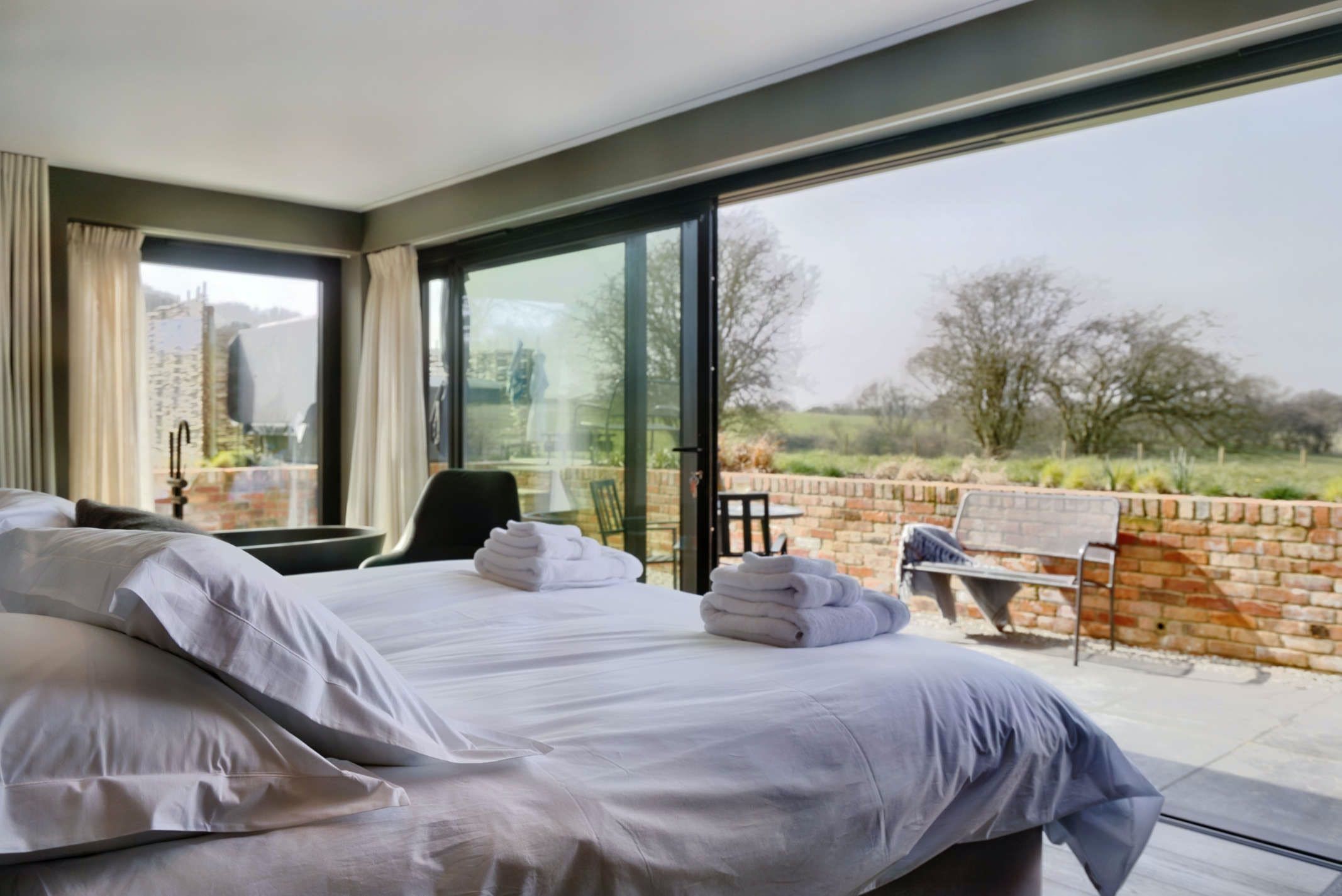 This peaceful haven offers beautiful views and the perfect setting for a restorative retreat in the North Downs. Nestled within a small country estate, you can relax in the private garden, savour long soaks in the hot tub and follow hiking trails through the surrounding meadows. Inside, the rooms have been designed to inspire a wonderful sense of well-being. From the Scandinavian design and the woodburning stove to the luxurious freestanding bath and the range of extra services, you’ll find it easy to settle in and make it your own. It’s also family-friendly with a bunk bed room for children and plenty to explore in the surroundings. From here, it’s just a short drive to Canterbury and the coastal towns of Folkestone and Hythe.