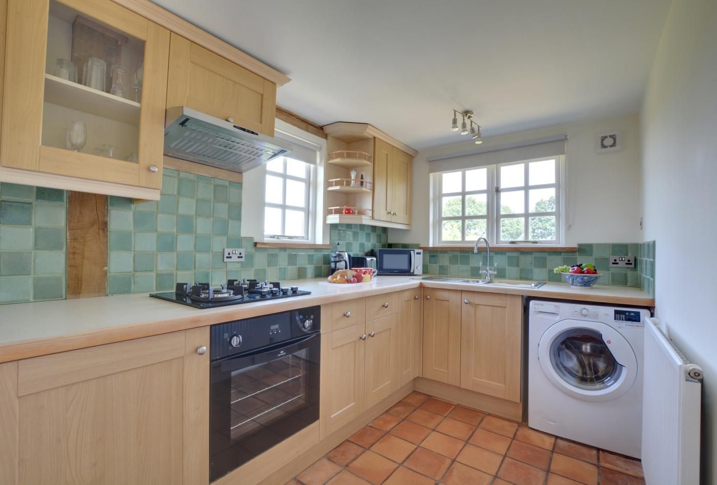 It is located on a working farm and is secluded with its own pretty garden and lovely countryside views. The spacious open plan living area has been tastefully furnished and has a cosy wood burning stove and boasts a medieval bed, which has been restored to the highest standard.
