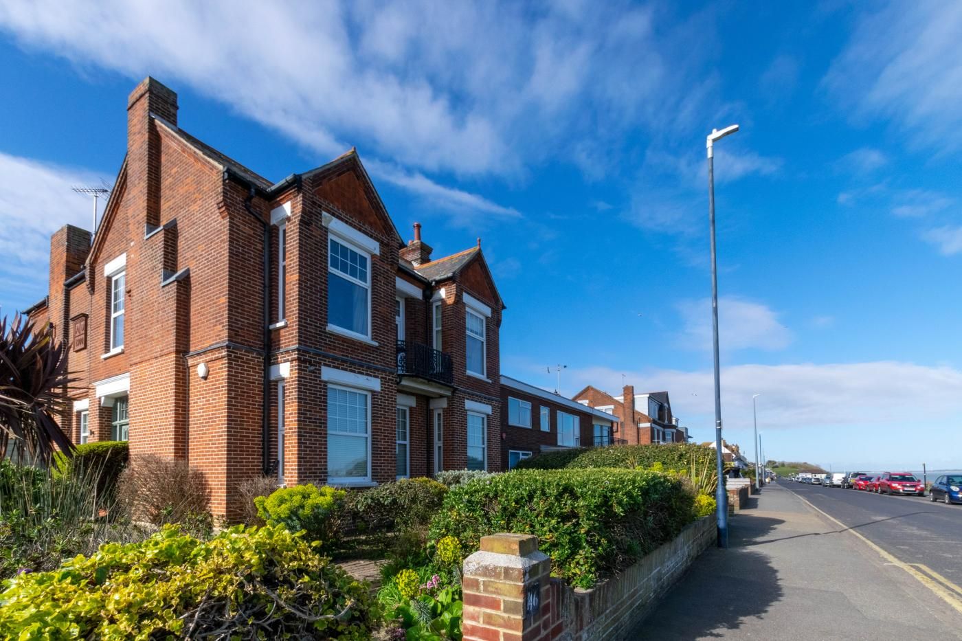This gracious and elegant ground floor apartment is located right on the seafront, with unrestricted views to the sea.
