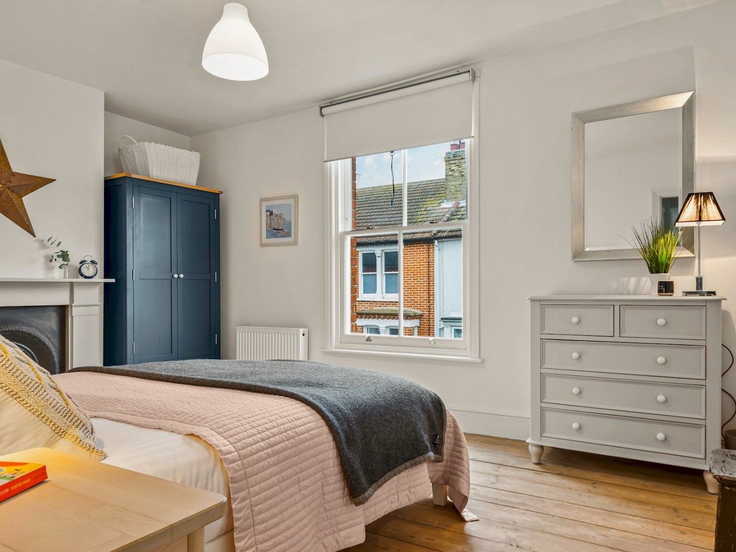 In the heart of the picturesque seaside town of Whitstable, this home is just steps away from the High St – lined with independent boutiques, art galleries and seafood restaurants – with the bustling Harbour Market and the beachfront just a few minutes further on foot. The ground floor has been opened up, making this home better suited to modern living. However, period features, including a cast iron fireplace in the main bedroom and sash windows, remain. Out back, a spacious patio and dining area is equipped with solar lights that flick on in the evening, creating a lovely space for alfresco dining over the summer months.