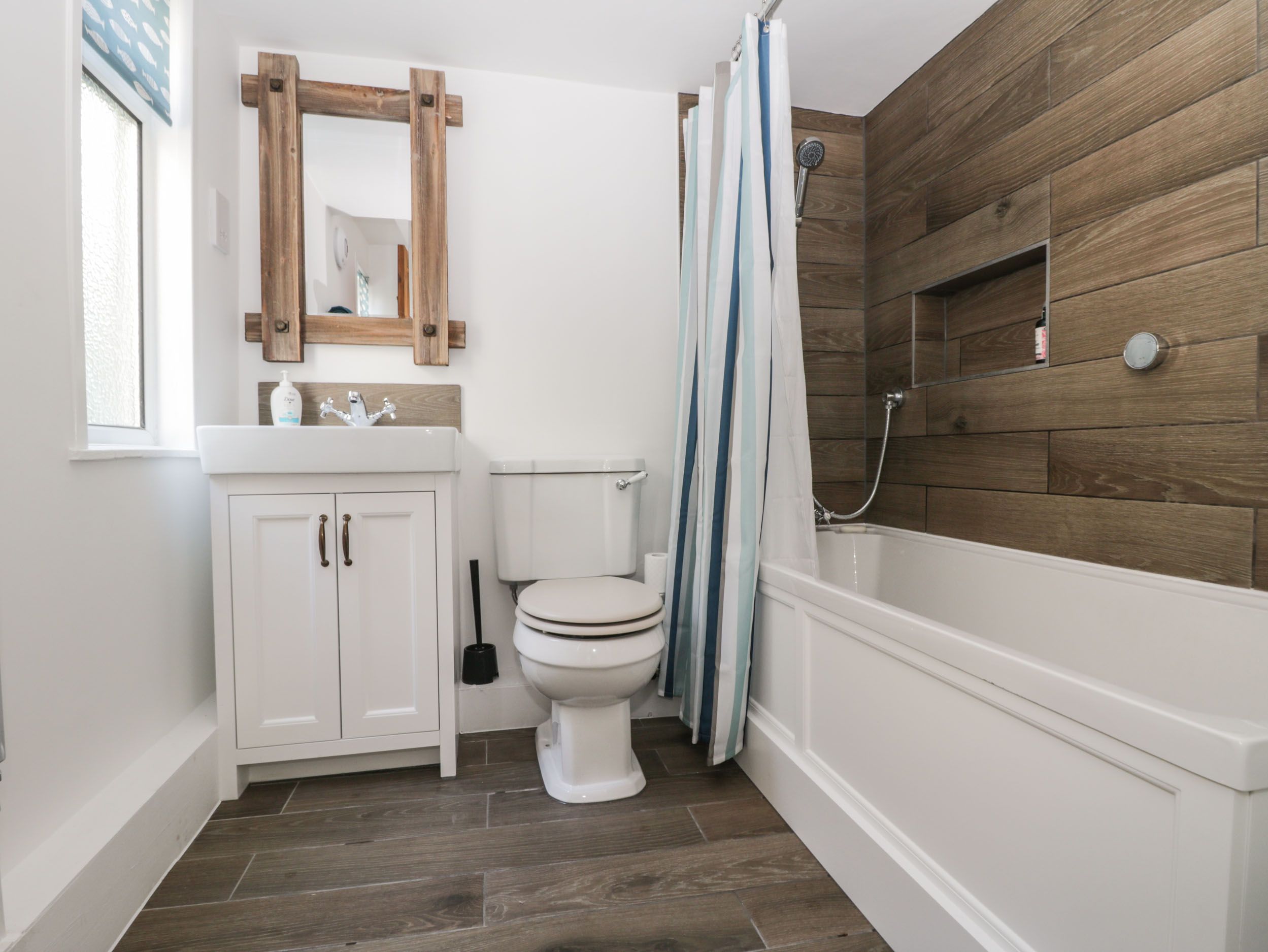 Accomodation Details Three bedrooms: 2 x double, 1 x twin. Ground-floor bathroom with bath, shower over, basin, heated towel rail and WC. Kitchen with Electric oven, hob, microwave, fridge, dishwasher, washing machine and tumble dryer. Dining room with seating for six guests. Sitting room with comfy seating.