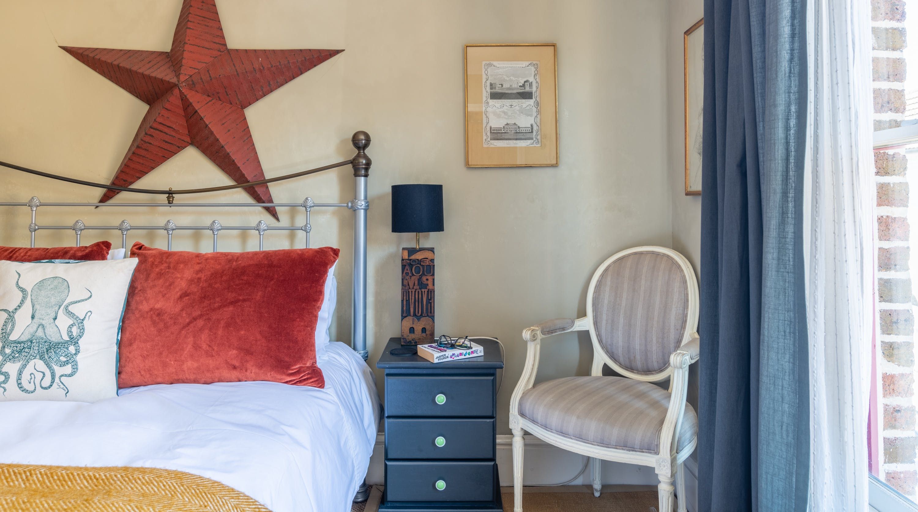 Step inside, and you'll feel instantly at home thanks to the cosy furnishings and warm colour scheme. There are quirky details dotted throughout the house – look out for the sweet octopus sketch, patterned tiles, and carefully curated antique pieces. On chilly evenings, you can light up the wood-burner and enjoy a home-cooked dinner of local seafood. Or, when the sun shines, head out to the courtyard and fire up the barbeque for a delicious grilled feast.