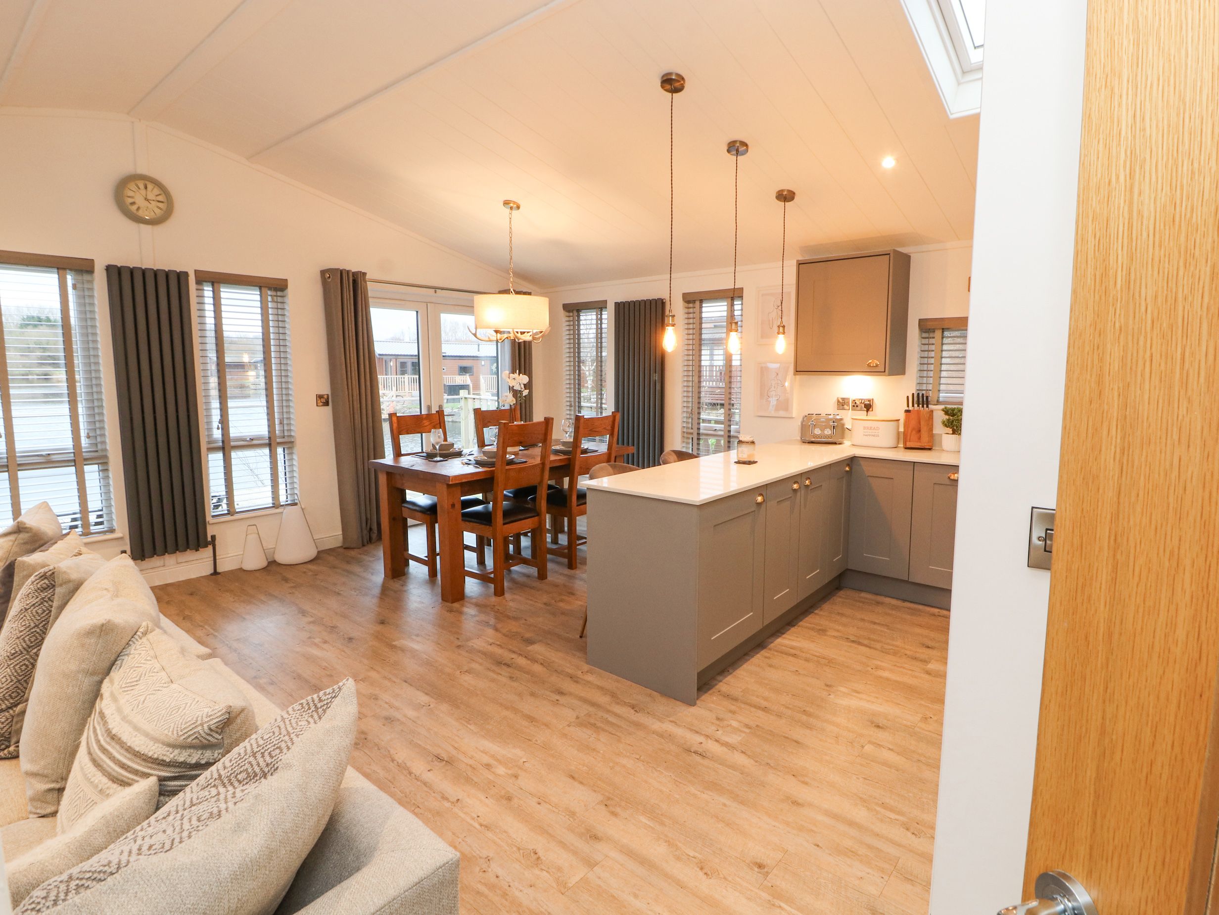 Holiday home 12A Lake Escape consists of an open-plan kitchen/living/diner with gas oven and hob, microwave, fridge/freezer, dishwasher, kettle, toaster, with dining seating for four people, and sitting area with TV and electric fire, and a utility with washing machine. The bedrooms consist of a king-size with TV and en-suite bathroom, double with TV, and a single with TV, along with a wet room. Outside, there is wraparound decking and patio with furniture, and off-road parking for two cars. One well-behaved pet welcome. Sorry, no smoking. You’ll find a shop in 1.8 miles, pub in 1.9 miles, lake in 0.1 miles, and river in 1.2 miles. WiFi, fuel, power, bed linen, and towels are all inc. in rent. 12A Lake Escape is a delightful base for a Lancashire escape. Note: Property is wheelchair accessible.