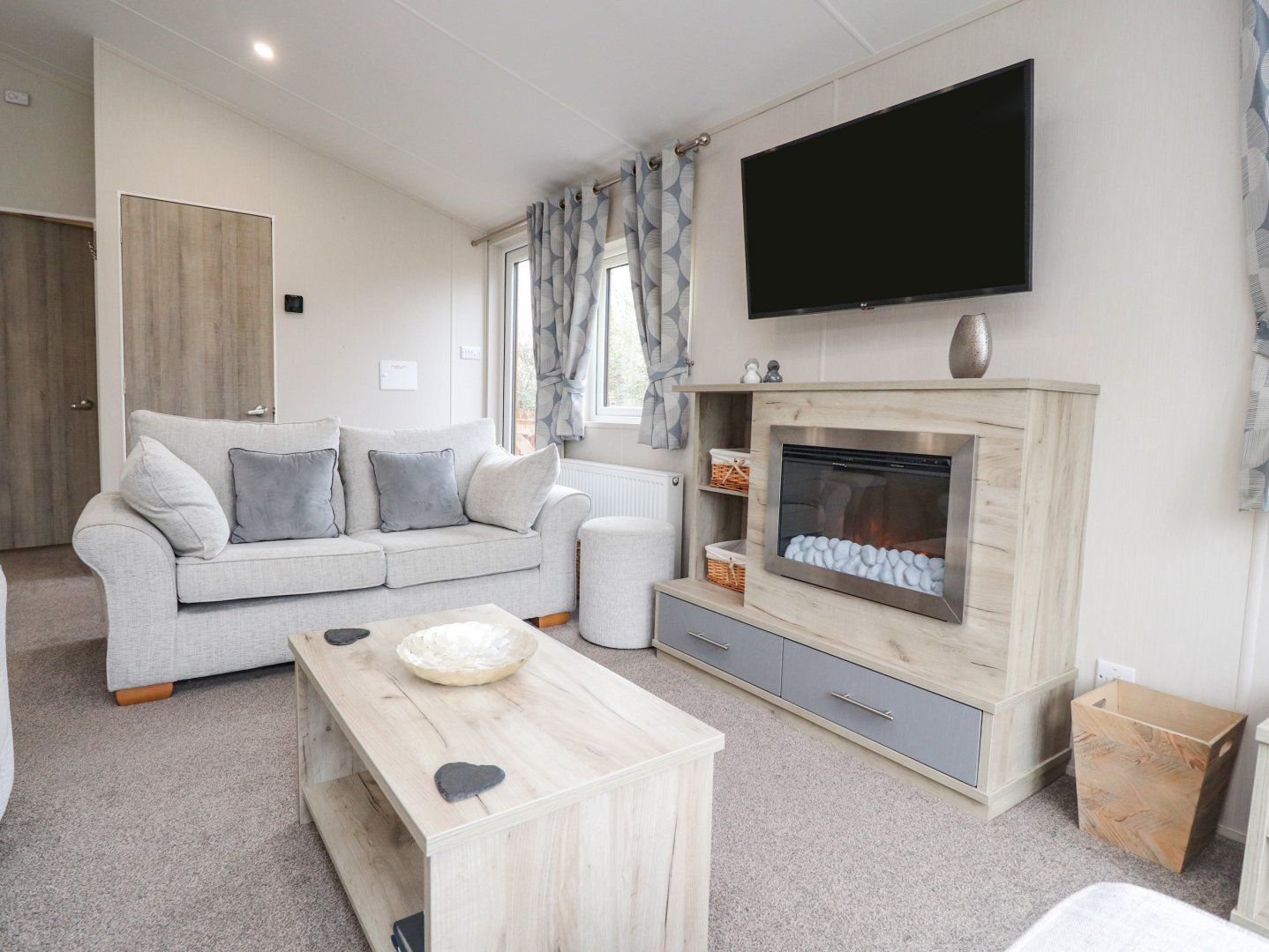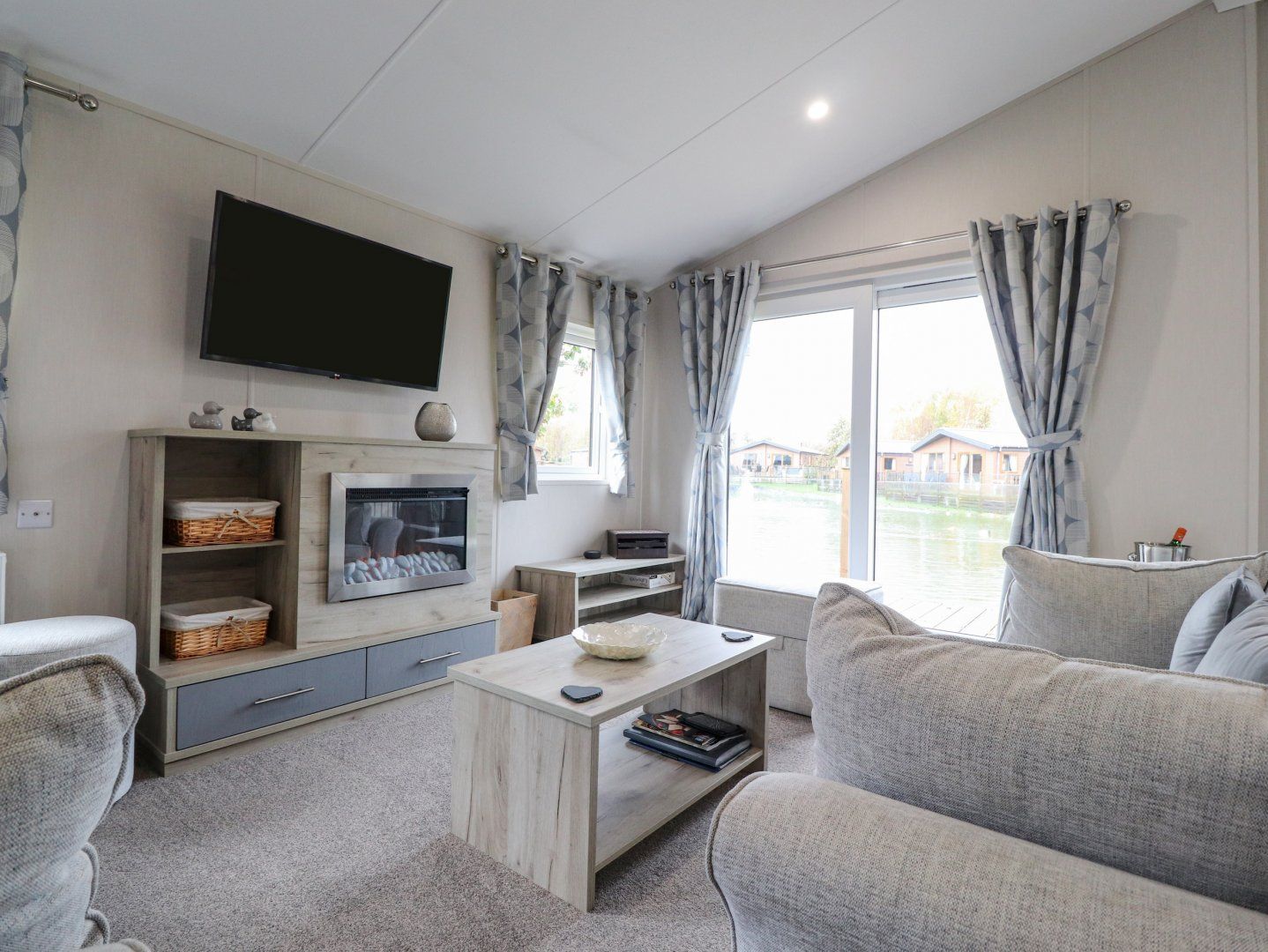 Single-storey. Three bedrooms: 1 x king-size with Smart TV, 1 x double with Smart TV and en-suite walk-in shower, basin, heated towel rail and WC, 1 x twin with Smart TV. Shower room with walk-in shower, basin and WC. Open-plan living space with kitchen, dining area and sitting area with electric fire