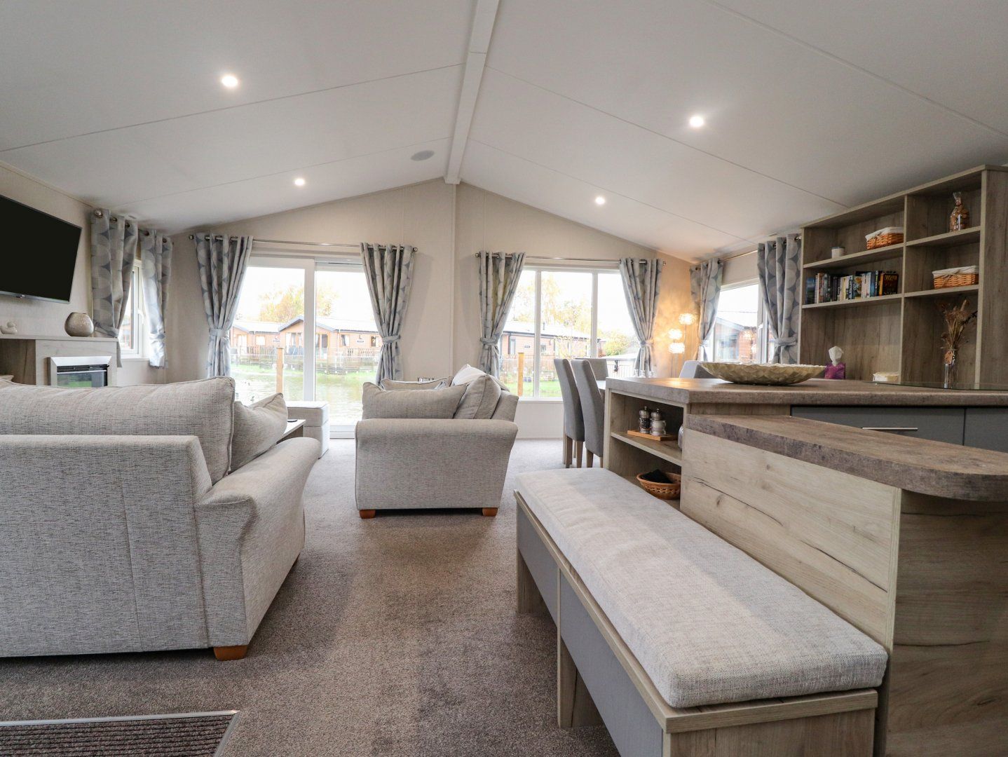 The living areas in the single-storey property consist of an open-plan living space with kitchen equipped with double gas oven and hob, microwave, fridge, freezer and a dishwasher, a dining area with seating for six guests and a sitting area with Smart TV and electric fire. The bedrooms consist of a king-size, a double with en-suite shower room and a twin, all with Smart TVs, along with a shower room. Outside there is a private wraparound decking with furniture, as well as off-road parking for 1 car. Within 1.8 miles you will find a supermarket, within 0.4 miles, a pub and within 0.1 miles, a lake and please note that this is a non-smoking property. WiFi, fuel, power, bed linen and towels are all included in the price. Fountain View is a lovely dwelling, ideal for a family escape to Lancashire. Note: There are steps up to the exterior of the property