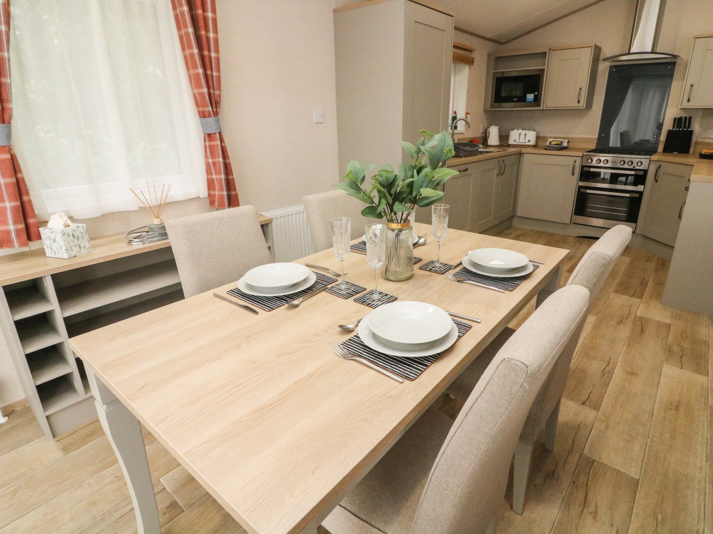 Amenities Gas central heating with electric woodburning stove. Gas oven and hob, microwave, fridge, freezer, washing machine, dishwasher, coffee machine and air fryer. 3 x Smart TVs and WiFi. Fuel and power inc. in rent. Bed linen and towels inc. in rent. Off-road parking for 2 cars. Wrap around decking with furniture. One well-behaved pet welcome. Sorry no smoking. Shop 2.1 miles and on-site pub 0.1 miles. Note: There is a door to the bathroom from twin bedroom. Note: A few steps up to the property, please take care. Note: This property cannot accept a check in on a Sunday. Note: The owner has a travel cot and highchair to hire at £10 per item a time. Note, on site wellbeing center, bar, restaurant, leisure facilities including pool and gym available at an extra cost.
