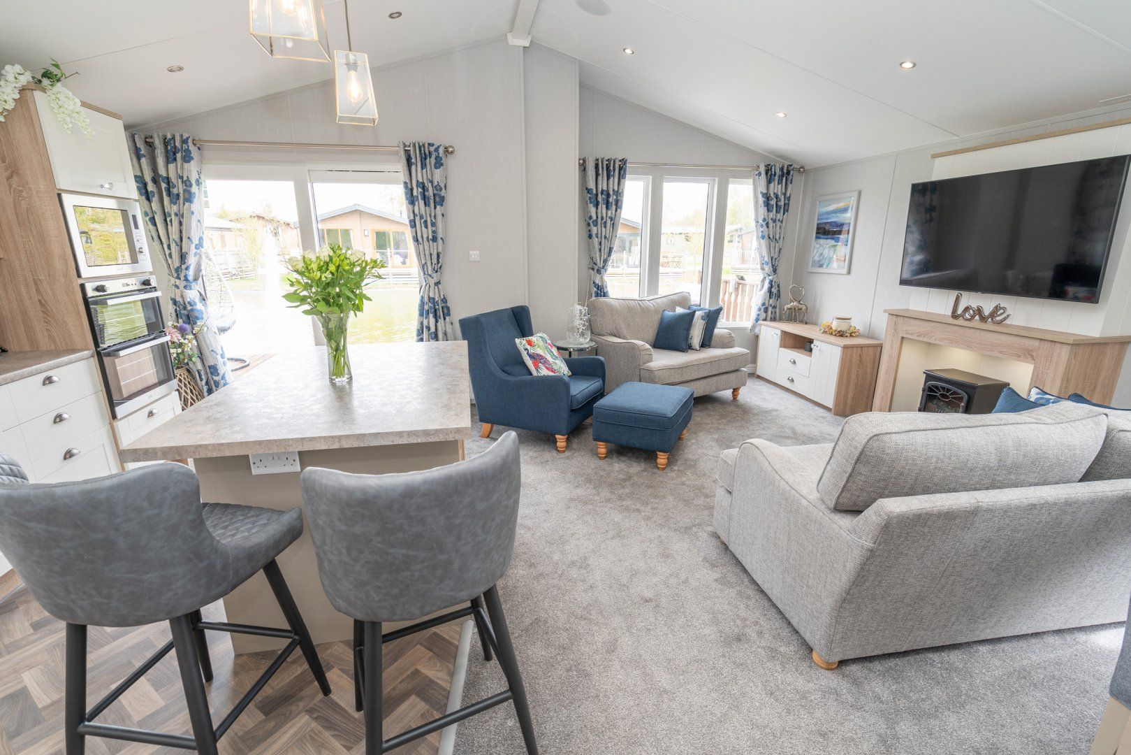 This single-storey lodge has an open-plan living space with a kitchen with electric oven, gas hob, microwave, fridge, and dishwasher, a dining area, and a sitting area with electric fire and Smart TV. The bedrooms consist of a king-size with Smart TV and en-suite shower room, a king-size with Smart TV, and a twin, along with a bathroom. Outside, there is a wrap-around decking with furniture, a laundry area with washer and dryer, and off-road parking for two cars. Within 1.8 miles, there is a shop, and 0.5, a pub. Please note that pets and smoking are not permitted. WiFi, fuel, power, bed linen and towels are all included in the price. A highchair and travel cot are available. Loluke Lodge is a delightful base for a family holiday in Lancashire and the Lakes. Note: Leisure passes are not included but available at a weekly/daily rate payable at the leisure centre. Note: Course Fishing is free with three lakes to choose from offering pike and Carp fishing; guests require a rod license.
