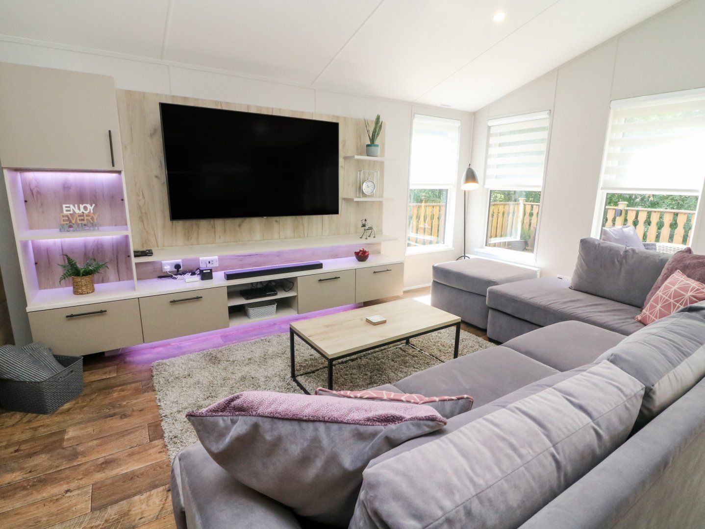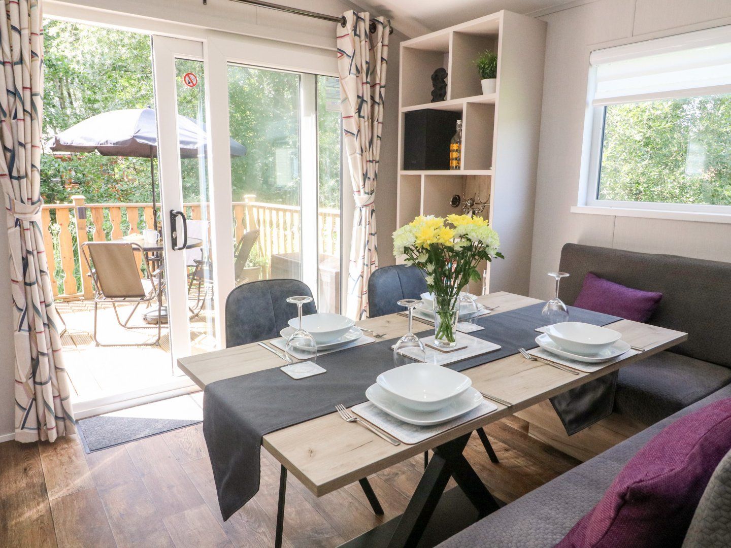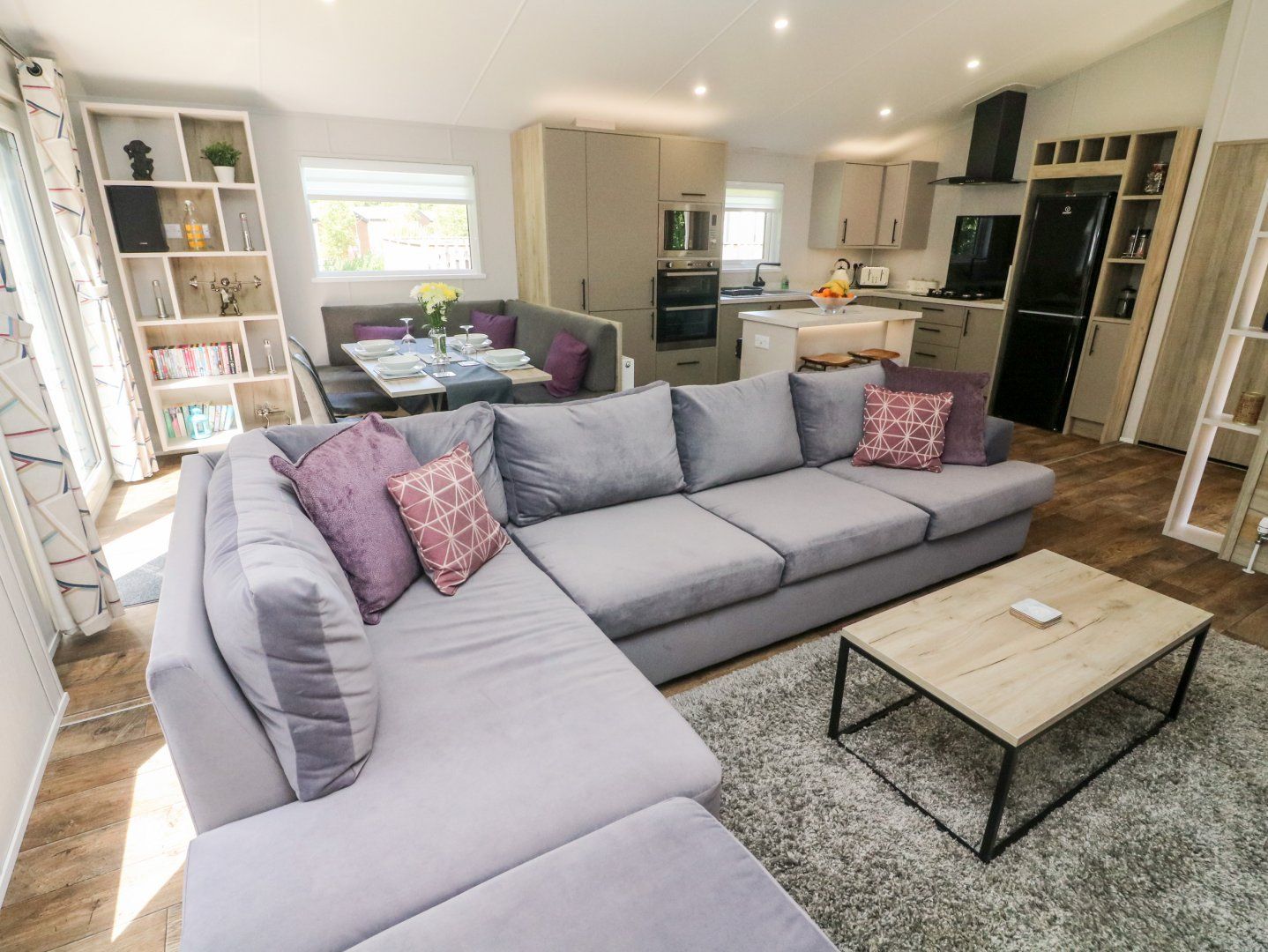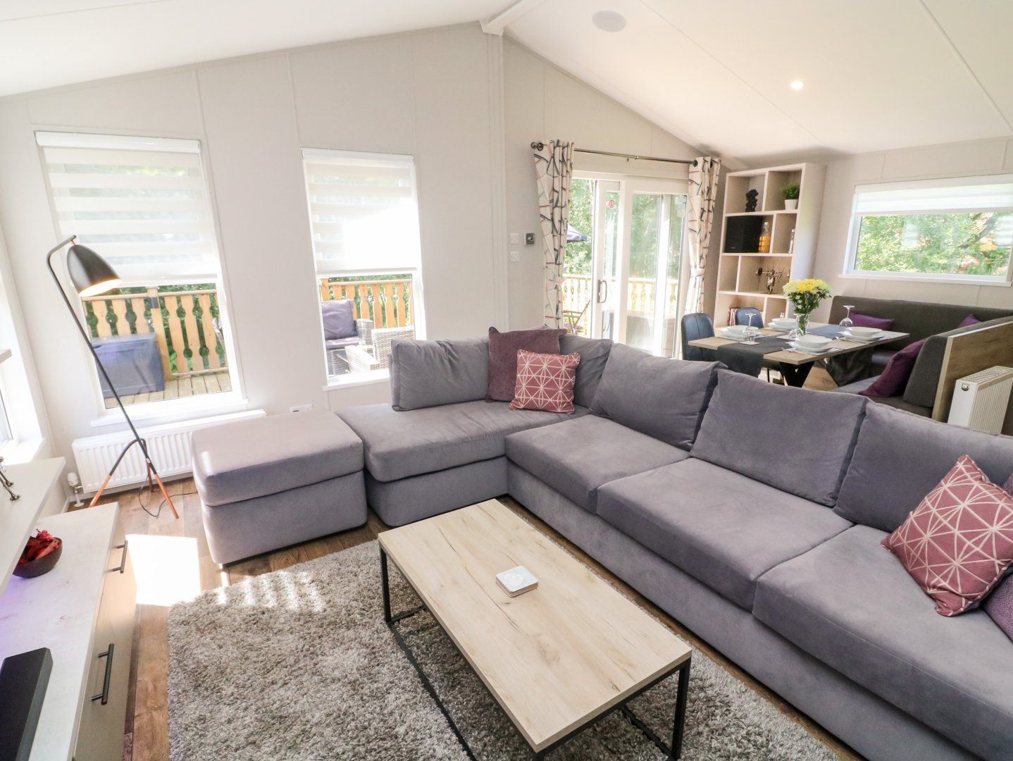 Accomodation Details Single-storey. Two bedrooms: 1 x king-size with TV and en-suite walk-in shower, basin, heated towel rail and WC, 1 x twin. Shower room with walk-in shower, basin, heated towel rail and WC. Open-plan living space with kitchen, dining area and sitting area