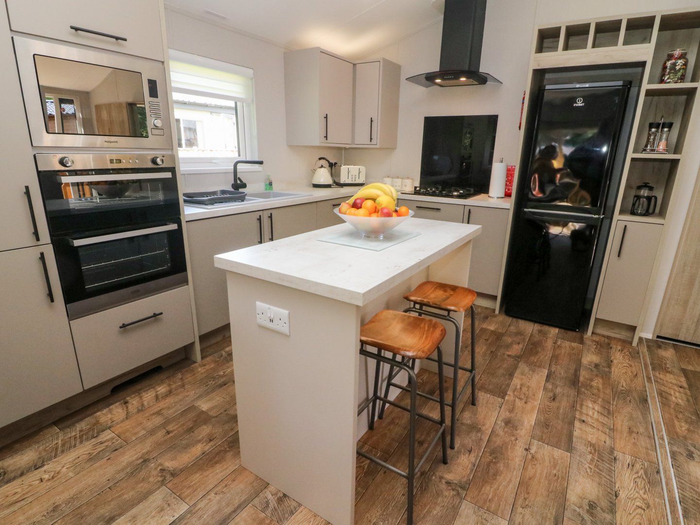 Holiday home This single-storey lodge has an open-plan living space with a kitchen, a dining area for six guests, and a sitting area with a large Smart TV, soundbar, and built-in Bluetooth speakers. Amenities include an electric oven and grill, gas hob, microwave, fridge/freezer, washer/dryer, and dishwasher. The bedrooms consist of a king-size with TV and en-suite shower room, and a twin, along with a shower room. Outside, there is a decking with furniture, and off-road parking for three cars. Within 1.5 miles, there is a shop, and within 0.1, a pub. One well-behaved dog is welcome; however, no smoking. WiFi, fuel, power, bed linen and towels are all included in the price. Sherwood 34 is a stylish lodge to call home as you explore the Lake District and Cumbria.