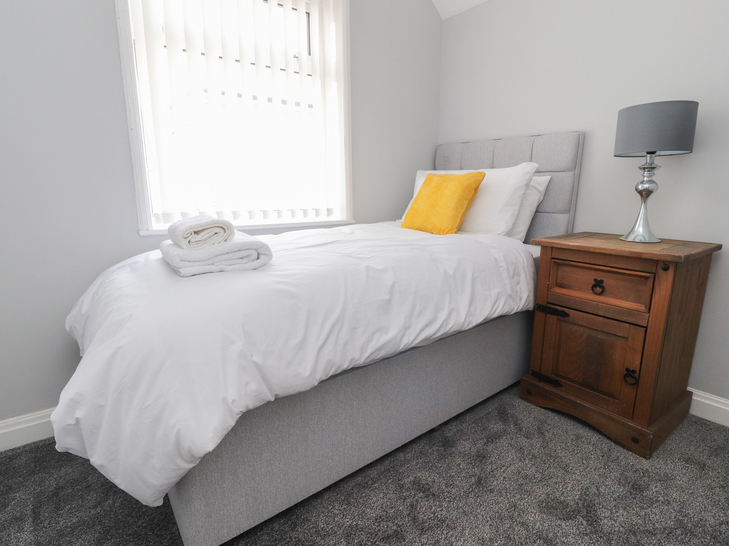 Holiday home 23 Ryden Avenue is a homely bay-fronted cottage resting at the centre of Cleveleys in Lancashire. There are three bedrooms in the property sleeping six guests including a king-size, a double, and a truckle bed, served by a first-floor cloakroom and bathroom. There is also a kitchen/diner and a sitting room with an electric 'coal effect' fire. To the front of the property is off-road parking for two cars and to the rear is an enclosed lawn and patio with furniture. 23 Ryden Avenue is a wonderful choice for a family escape to Lancashire. Please note: None of the beds are zip/link beds and cannot be converted into singles.