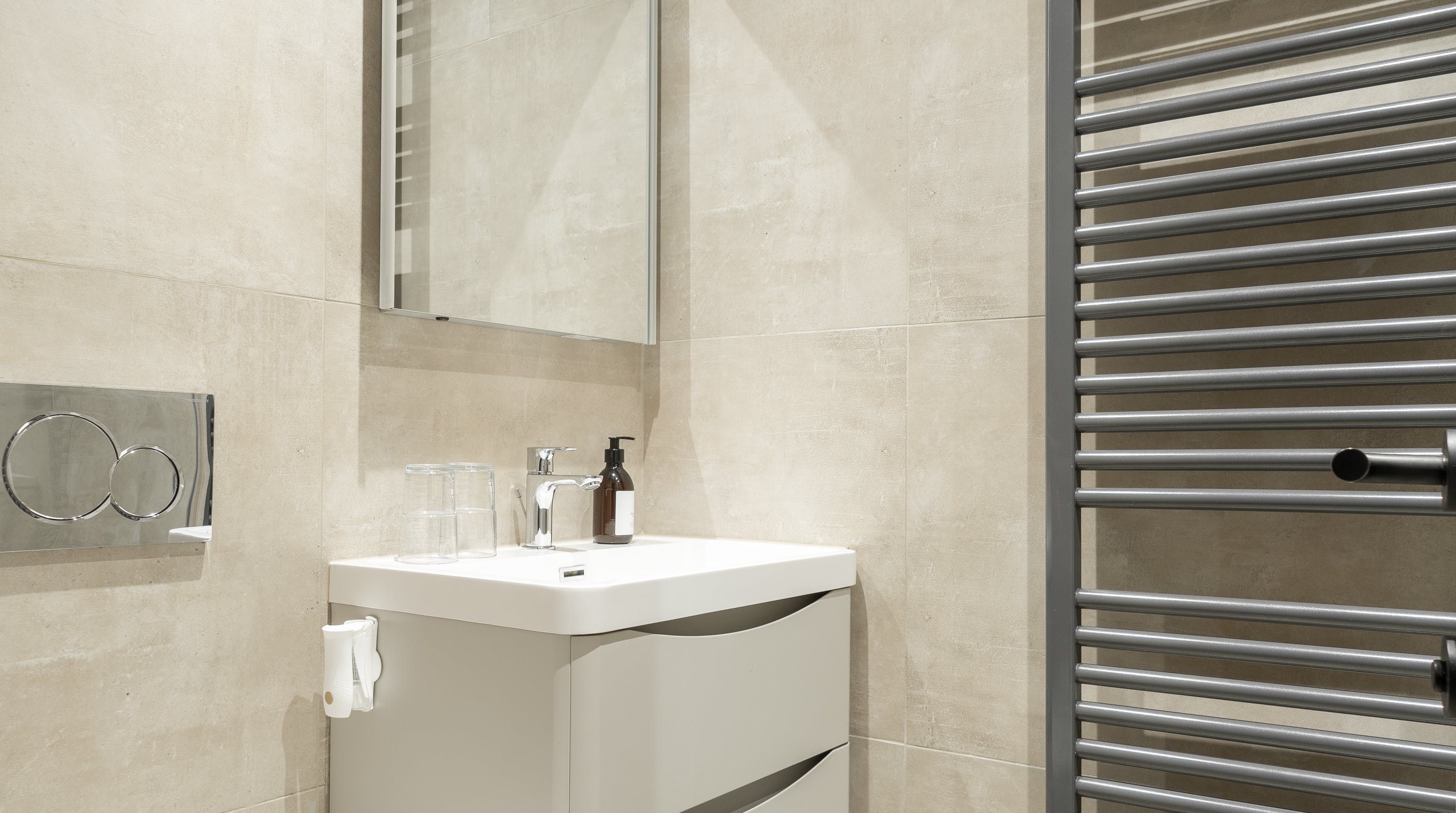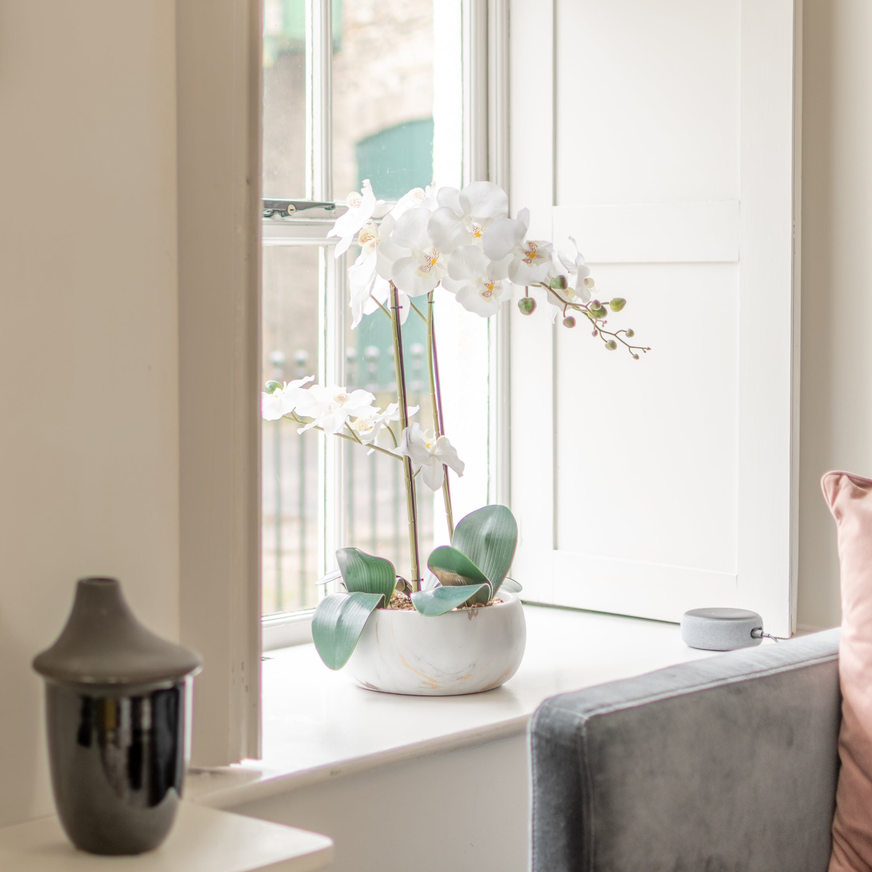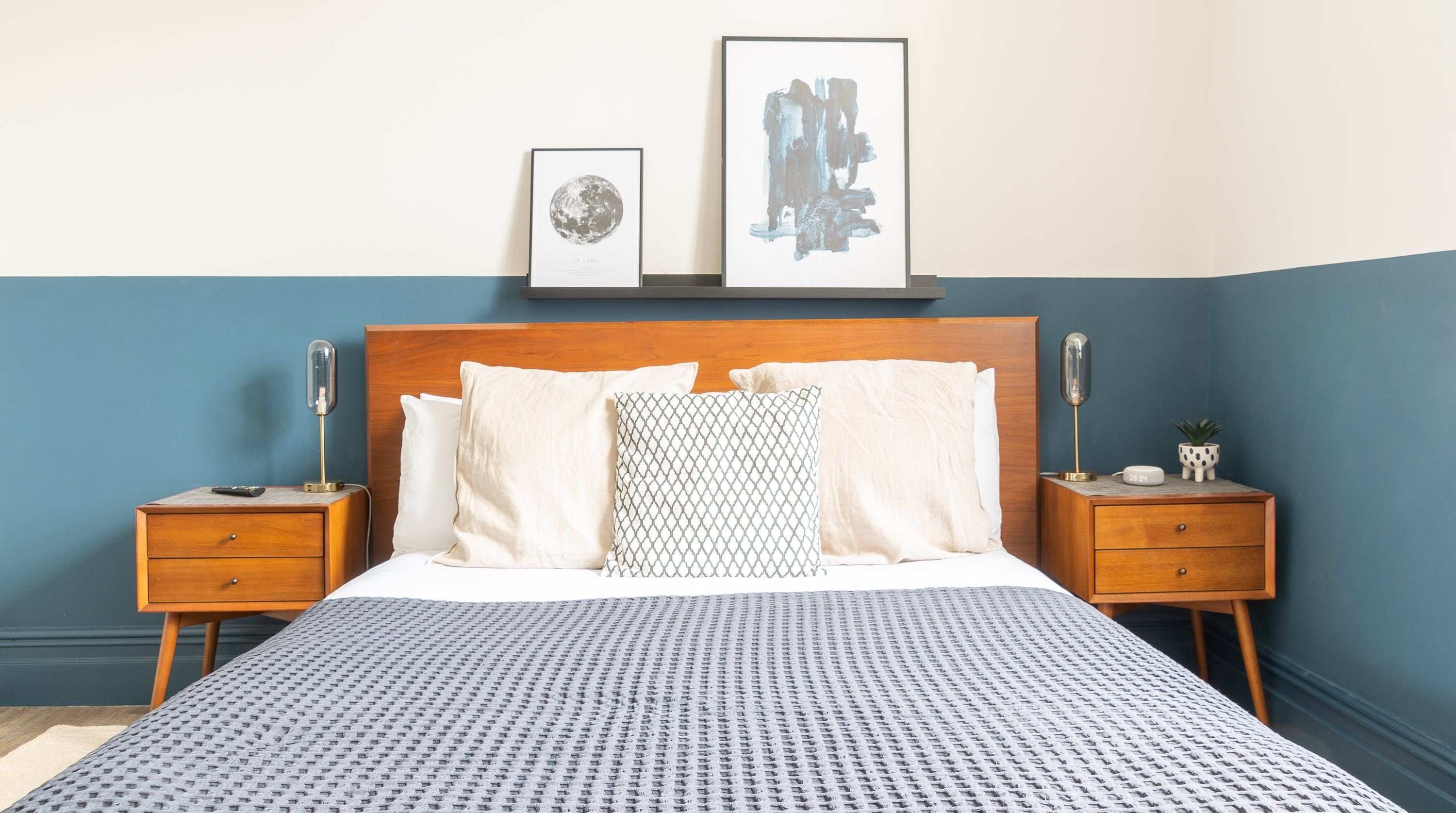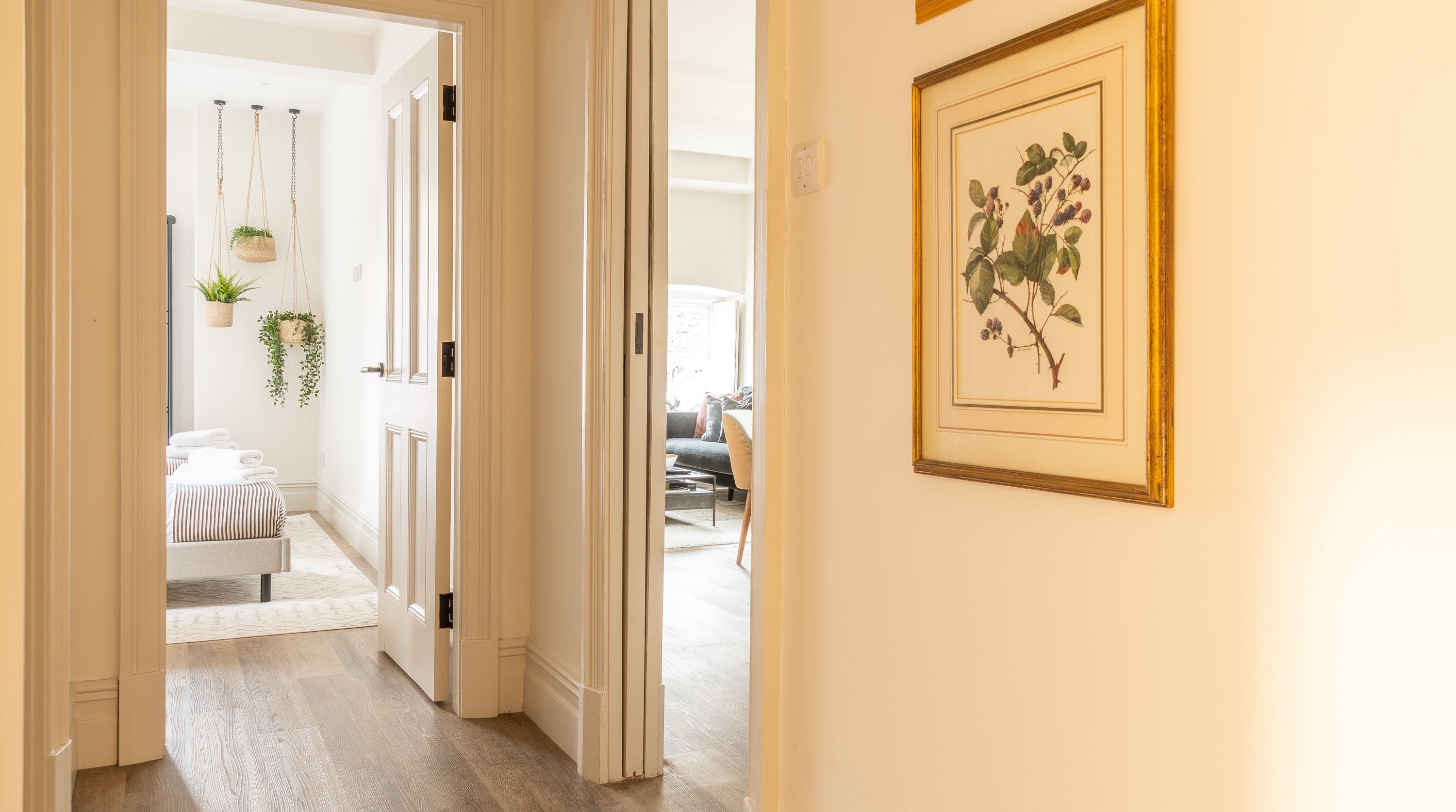 Housed within a restored Grade II listed Georgian building in Clitheroe, this elegant ground floor apartment puts you in an ideal spot to explore the Lancashire countryside, including the Ribble Valley and the enchanting Forest of Bowland. With its sophisticated contemporary decor and open-plan living space, this chic home is all set to cater to your relaxation. We love the plump blue sofa beside the pretty shuttered picture window, as well as the modern abstract art that gives the room plenty of stylish character. The sleek kitchen invites warming homecooked meals to be enjoyed at the beautiful round table, while both bedrooms have been carefully curated to ensure you get a tranquil night’s sleep. With a shared courtyard garden to enjoy – whether in the morning over coffee or the evenings with a sunset glass of bubbly – you’ve got everything you need for a comfortable stay. Outside of your home, the ancient ruins of Clitheroe Castle are a three-minute walk away, while the Forest of Bowland is a five-minute drive (or just under forty minutes away on foot). Factor in the walks along the River Ribble and the charming shops and pubs right on your front door, and there’s no end to the enjoyment this perfectly positioned home provides.