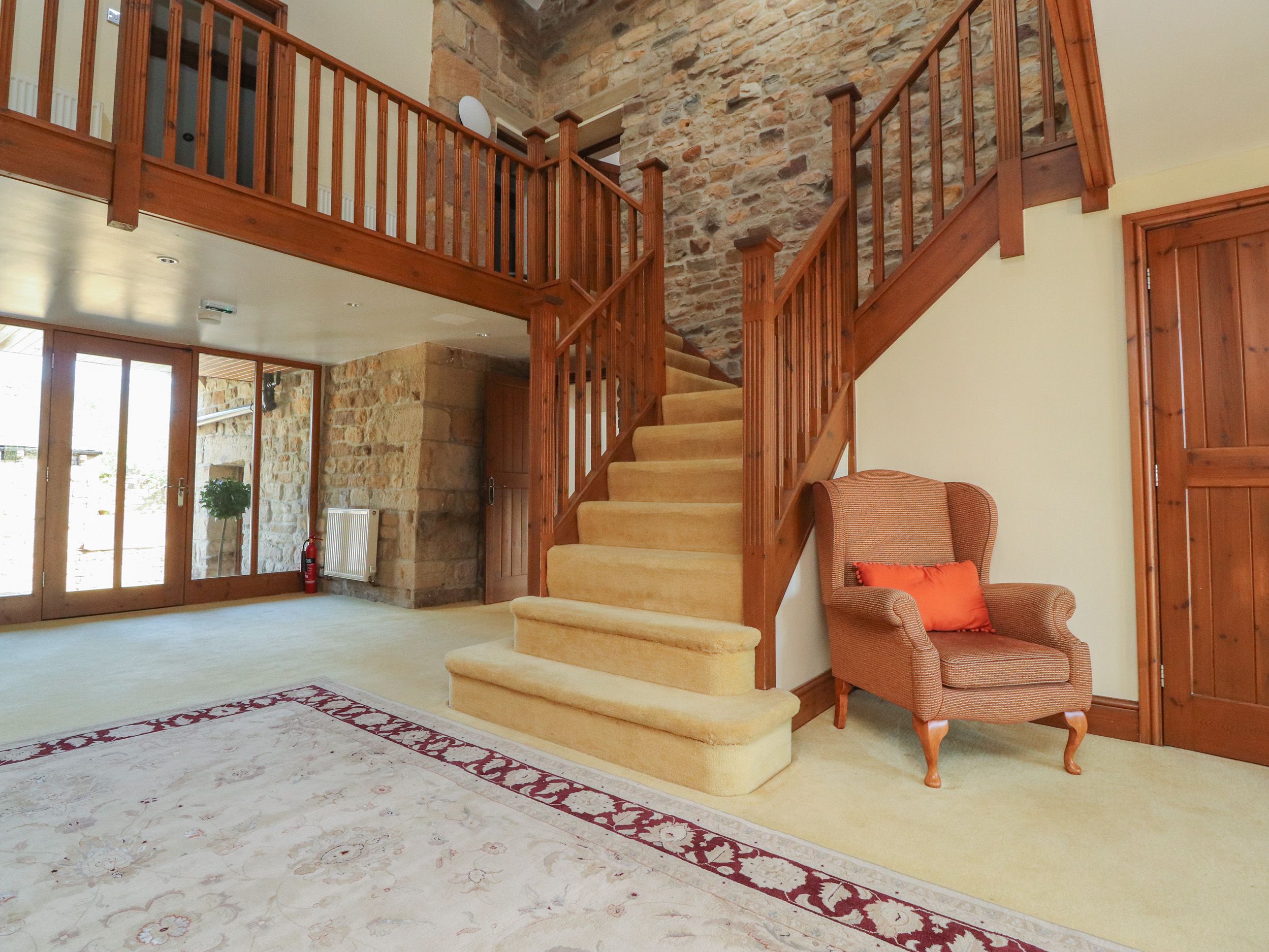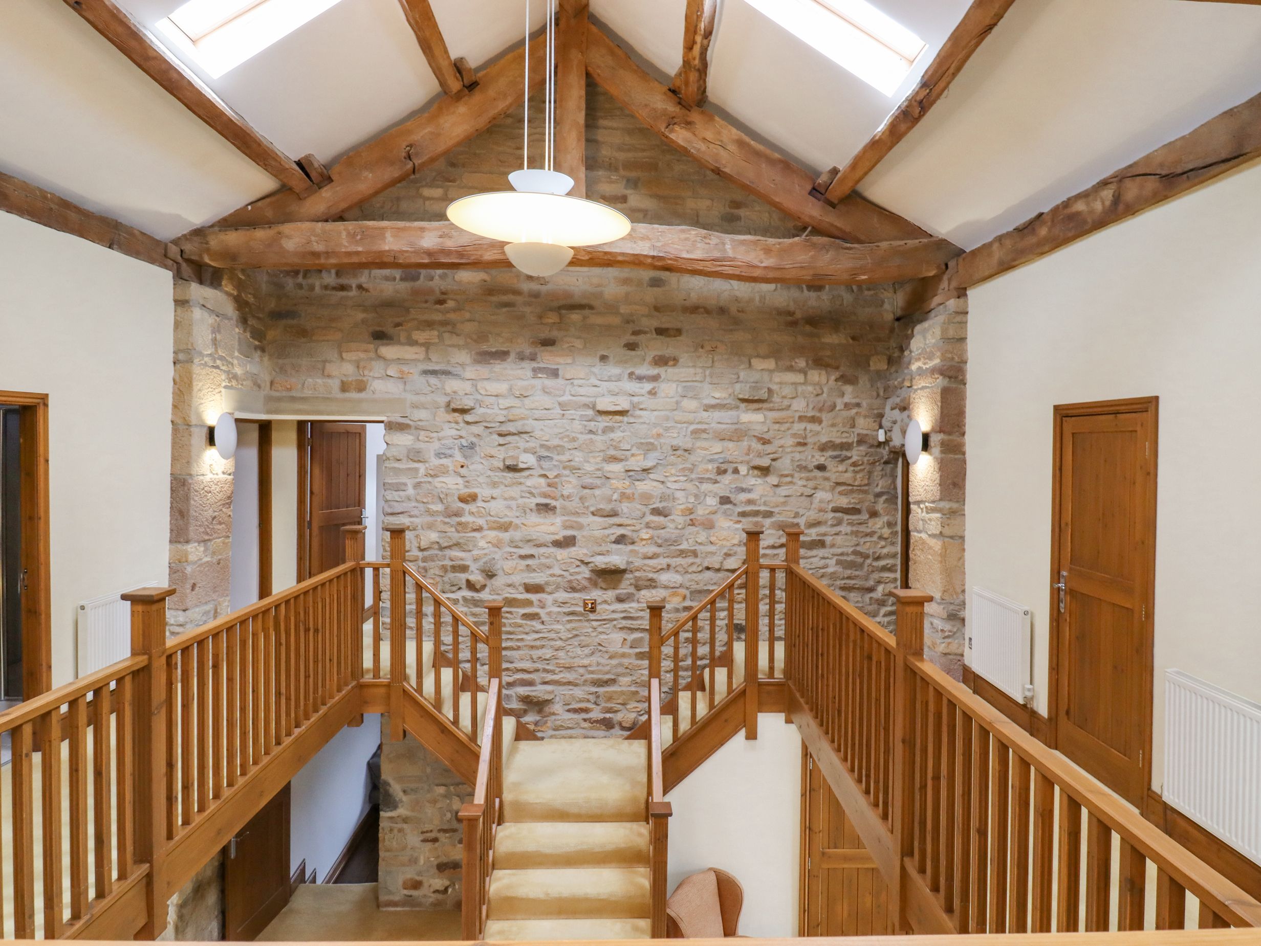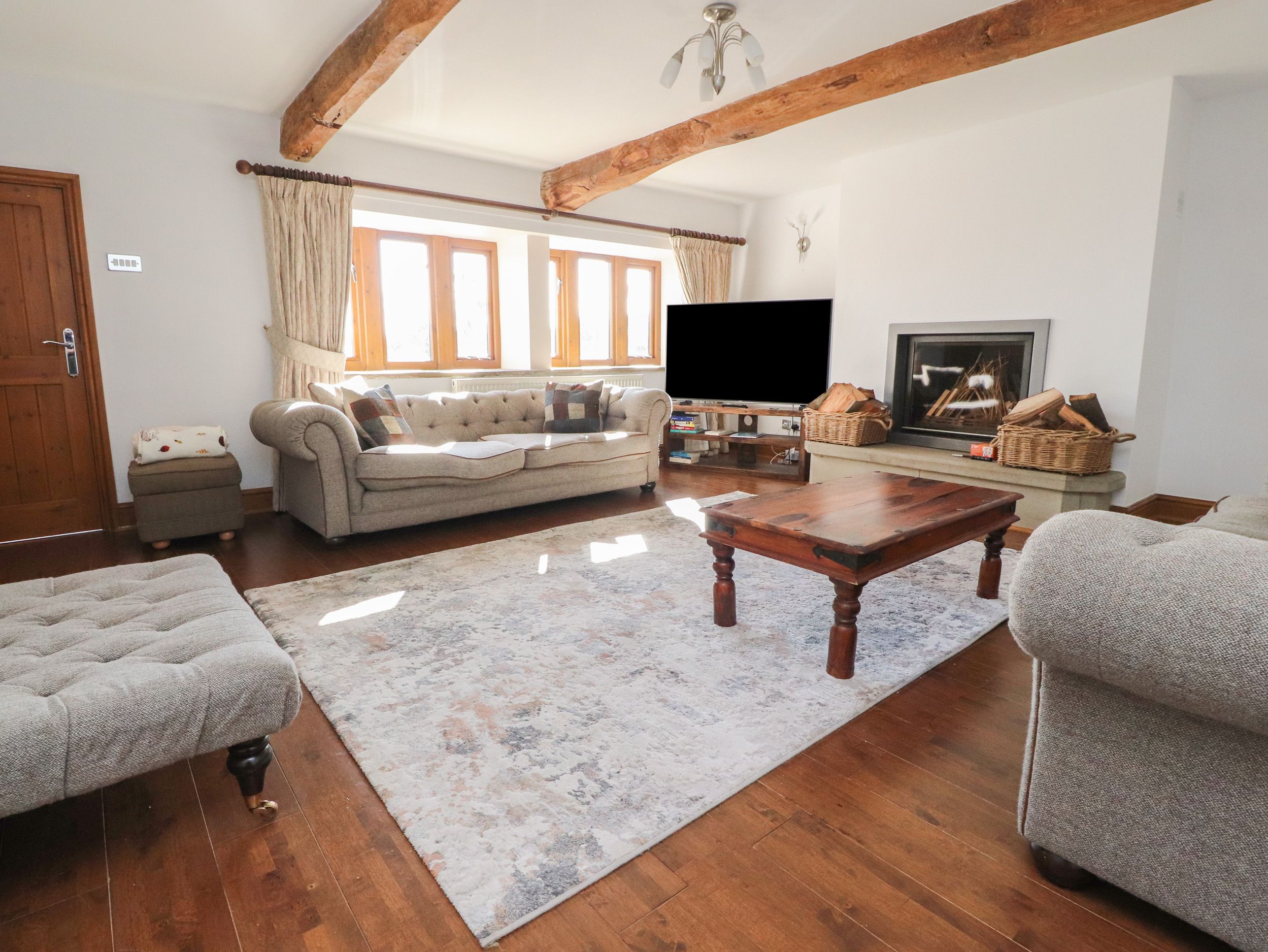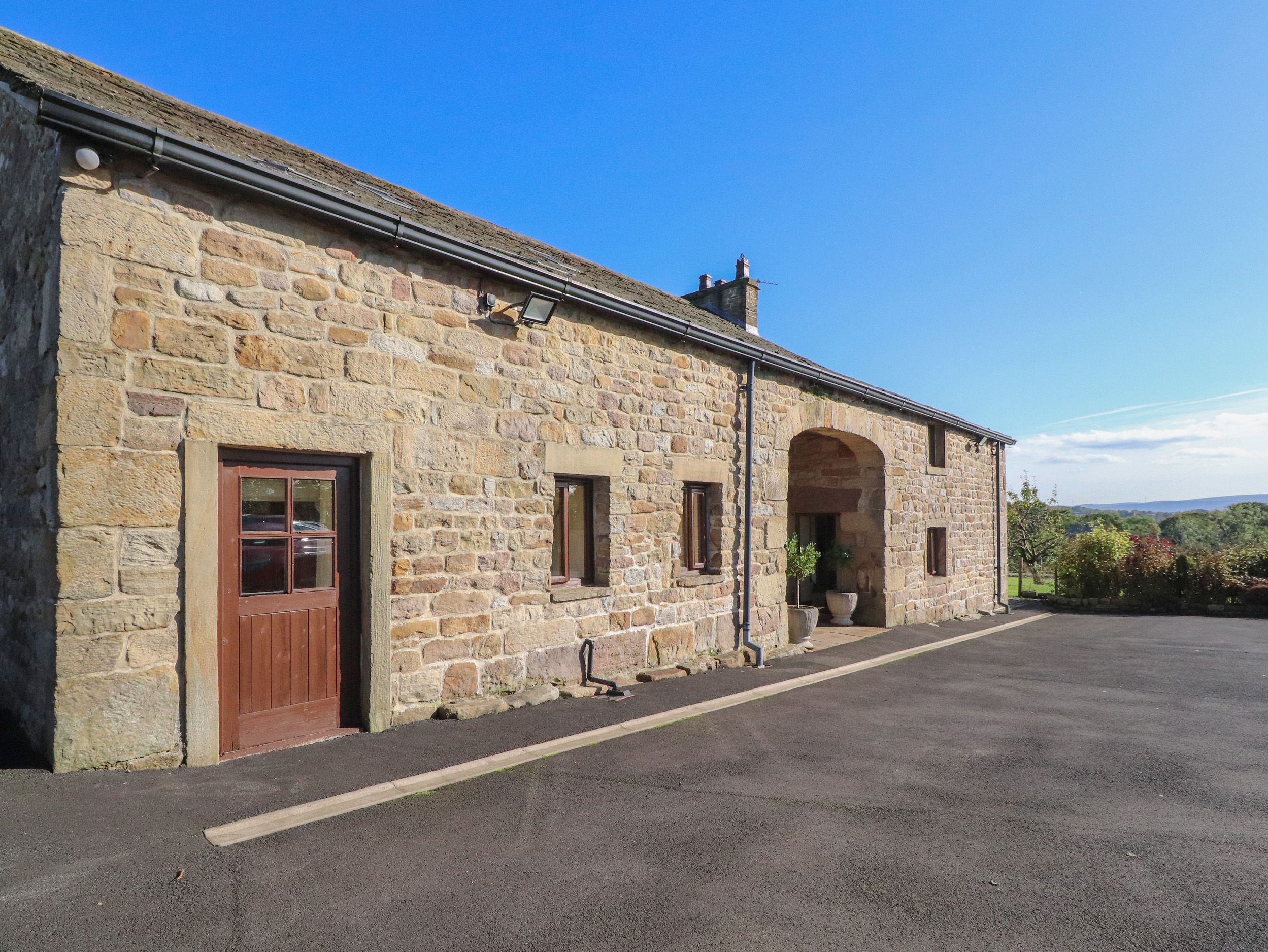 Holiday home Grains Barn Farm is a large property featuring a kitchen, dining room and sitting room. Appliances include an electric oven and hob, microwave, fridge/freezer, washing machine, dishwasher, Smart TV, and a woodburning stove. There are five bedrooms, consisting of a super-king and king-size with en-suite showers, a double, a twin, and a king-size with en-suite shower located in the annex, serviced by a communal bathroom. Outside, there is an enclosed garden with lawn and patio, along with ample off-road parking. Within 0.4 miles, you will find a shop and pub. Please note, this is a pet-free, non-smoking property. WiFi, fuel, power, bed linen, and towels are all included in the rent. Highchair, travel cot and stairgate available on request. Enjoy an unforgettable retreat to Lancashire at Grains Barn Farm. This property now accepts 1, well behaved dog.