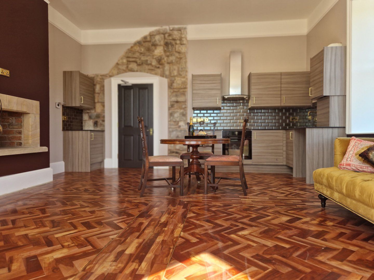 Holiday home Garstang 2.3 miles. The Hamilton is a multi million pound development and is a grade 2 listed building which dates back to the 1600s. The development now consists of 6 high end luxury apartments in the main residence and three high end barn conversions to the courtyard. The majority of the original features have been kept and restored and which was a high importance to the British Heritage Report. This ground-floor apartment has an open-plan kitchen, dining area and sitting area with an electric oven and hob, microwave, fridge/freezer, dishwasher, and Smart TV, and a communal utility with washing machine. There are two double bedrooms, one with an en-suite, along with a bathroom. Outside there is an enclosed patio with furniture and hot tub, a communal garden with lawned area, patio and furniture, and ample off-road parking. Two well-behaved dogs welcomed, but sorry, no smoking. WiFi, fuel, power, bed linen and towels are all included in the price. You'll find a shop in 0.6 miles and a pub in 0.5 miles. For a taste of luxury, book The Duke in Lancashire. There is a supplement of £20 , per dog, per night