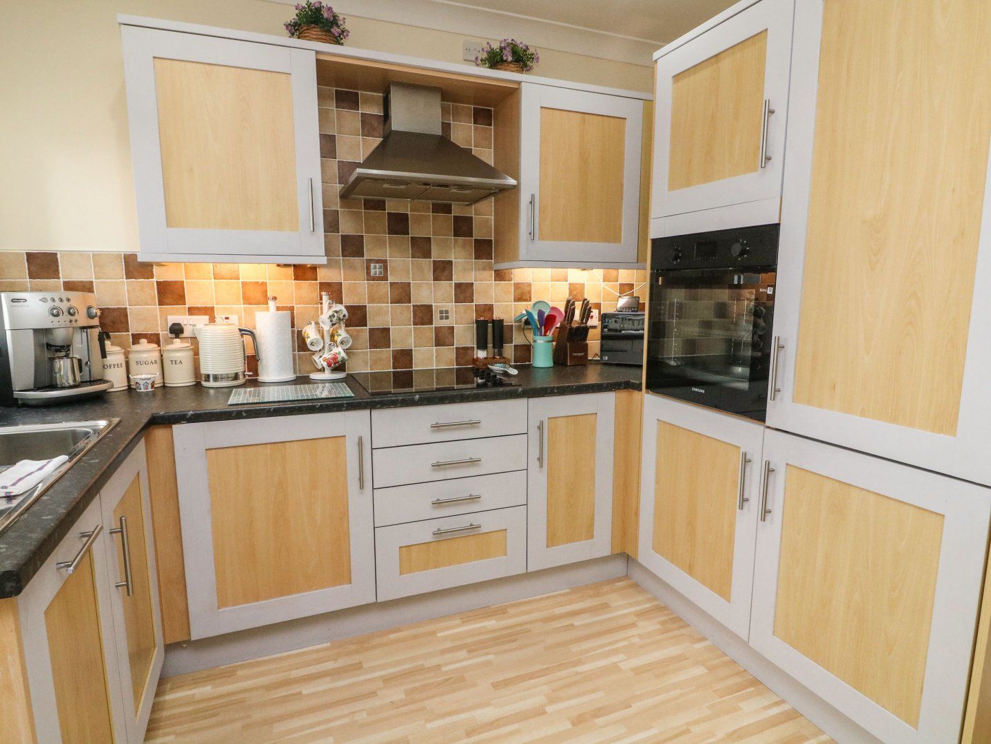 central heating. Electric oven, halogen hob, kettle, toaster, fridge/freezer and dishwasher. TV, WiFi. Fuel and power inc. in rent. Bed linen and towels inc. in rent,also 4 dressing gowns please leave in the property when you depart. Patio with furniture and access to shared lawned garden. Roadside parking available on a first-come, first-served basis within gated community. One well-behaved pet welcome. Sorry, no smoking. Shop 2.2 miles, pub 0.2 miles. Note: This property is pet-friendly, however please be mindful that owners will be held liable for any damages caused. Please note: tea, coffee, milk, sugar and essential items are provided at this property. Note: property only accepts a minimum of 3 night stay. Please note: As of September 2024, building work has started on the land across the road from this apartment to build 15 bungalows; work will be on week days only between 8am and 4:30pm or when it gets dark; parking may be affected when machinery is present; please call Sykes for further information