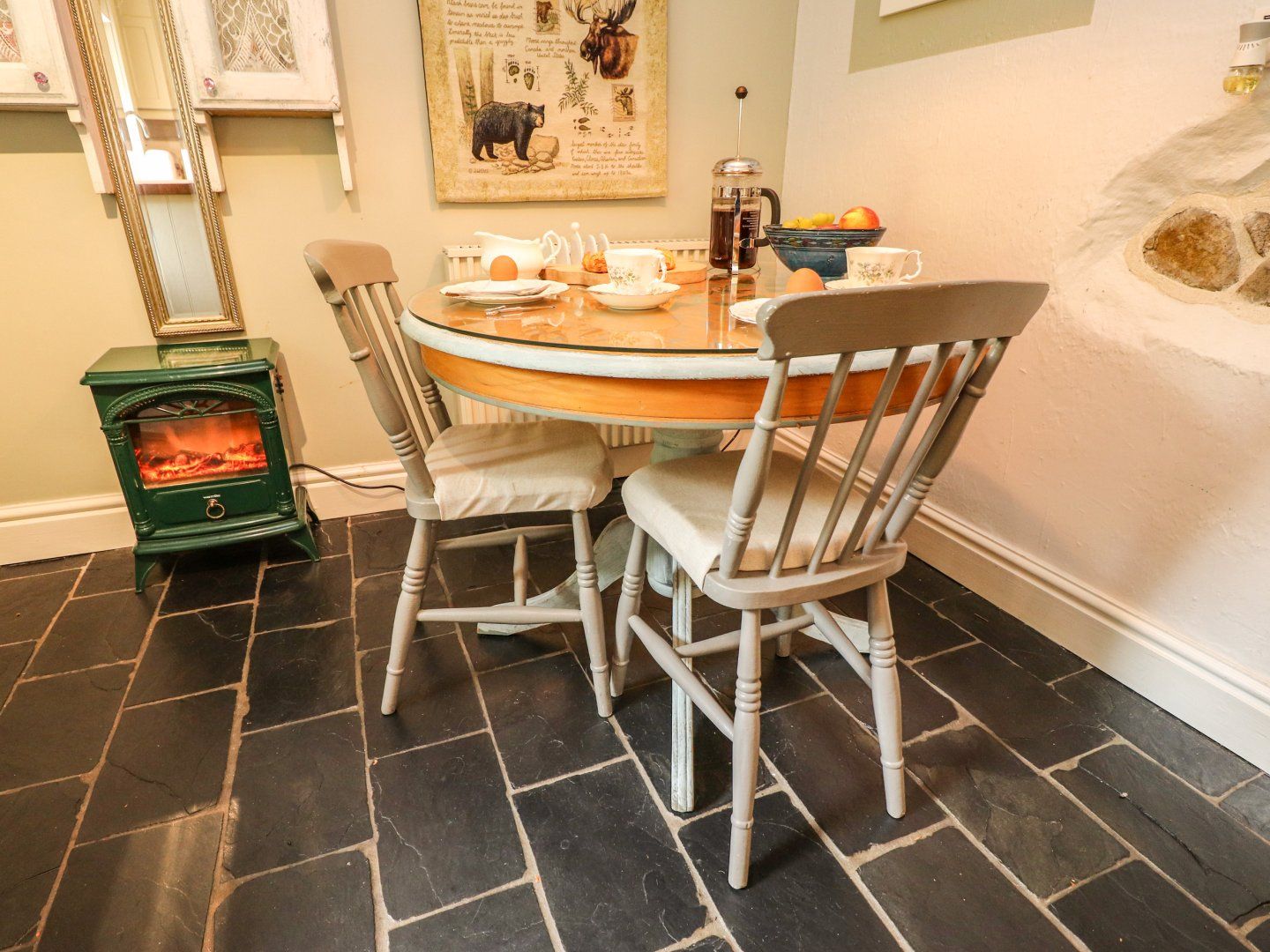 I visited Duckdown Cottage with my Golden Retriever and was lucky enough to get glorious weather. The cottage is situated in the beautiful village of Hurst Green in the Forest of Bowland an AOB in North-Western England. The cottage is beautifully decorated and maintained, has a very welcoming homely feeling, with every facility one could require - even a pub 3 doors away! There are superb walks from the doorstep, both long for the heroes and shorter for us mere mortals. I would highly recommend Duckdown cottage.