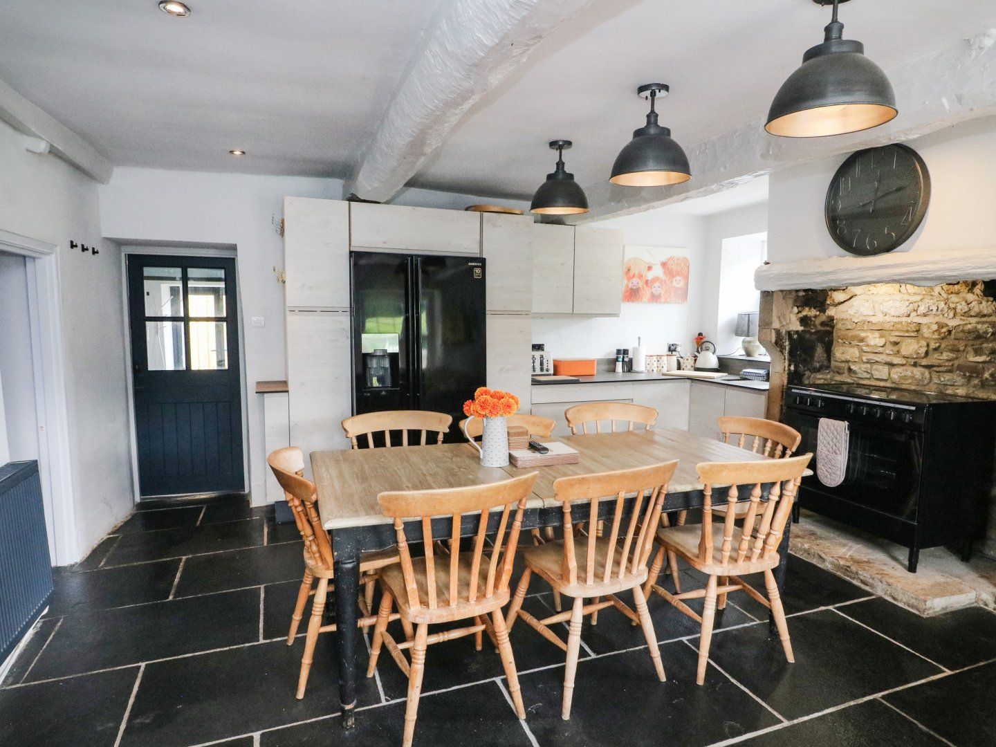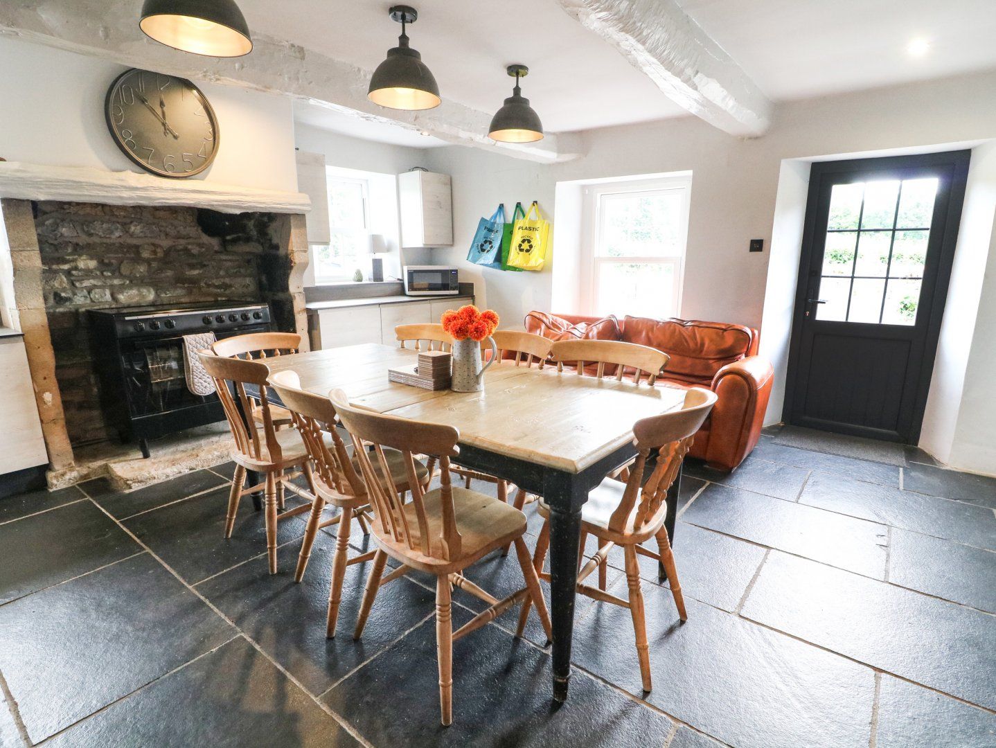 Amenities Unlimited heating. Electric range cooker, microwave, fridge/freezer, dishwasher. 6 x TV's. Unlimited super-fast broadband/WIFI. Fuel and power inc. in rent. Bed linen and towels inc. in rent. Off-road parking for 6 cars. Patio with covered hot tub. Webber charcoal BBQ & fire pit. Large picnic table and deck chairs. Sorry, no pets and no smoking indoors. Shop 3 miles, pub 1 mile. Please note: Car charging is not permitted at this property.