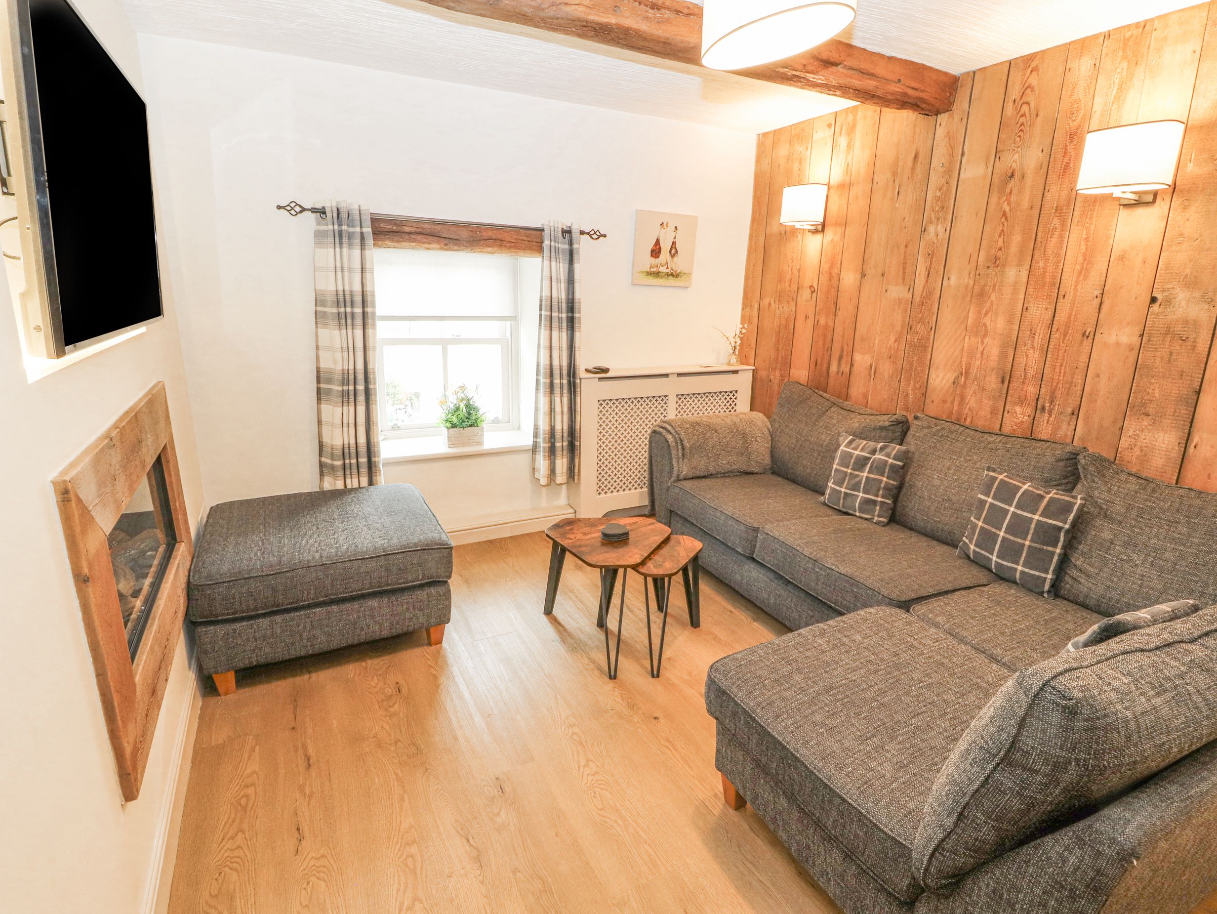 Holiday home The living space for this first-floor apartment consists of a kitchen with electric oven and hob, microwave, fridge, dishwasher, and a living/dining room with a sitting area with Smart TV and electric fire stove and a dining space for four. The bedrooms consist of two doubles, along with a shower room with walk-in shower, basin, heated towel rail and WC. Outside there is pay and display parking or roadside parking a short walk away. Within 0.1 miles or less you will find a shop and a pub, and within 0.2 miles, a river, and please note this is a pet-free and smoke-free property. Fuel, power, bed linen, towels, and WiFi included in the rent. Explore the wonders of Cumbria with a stay at the delightful Tawny Own.