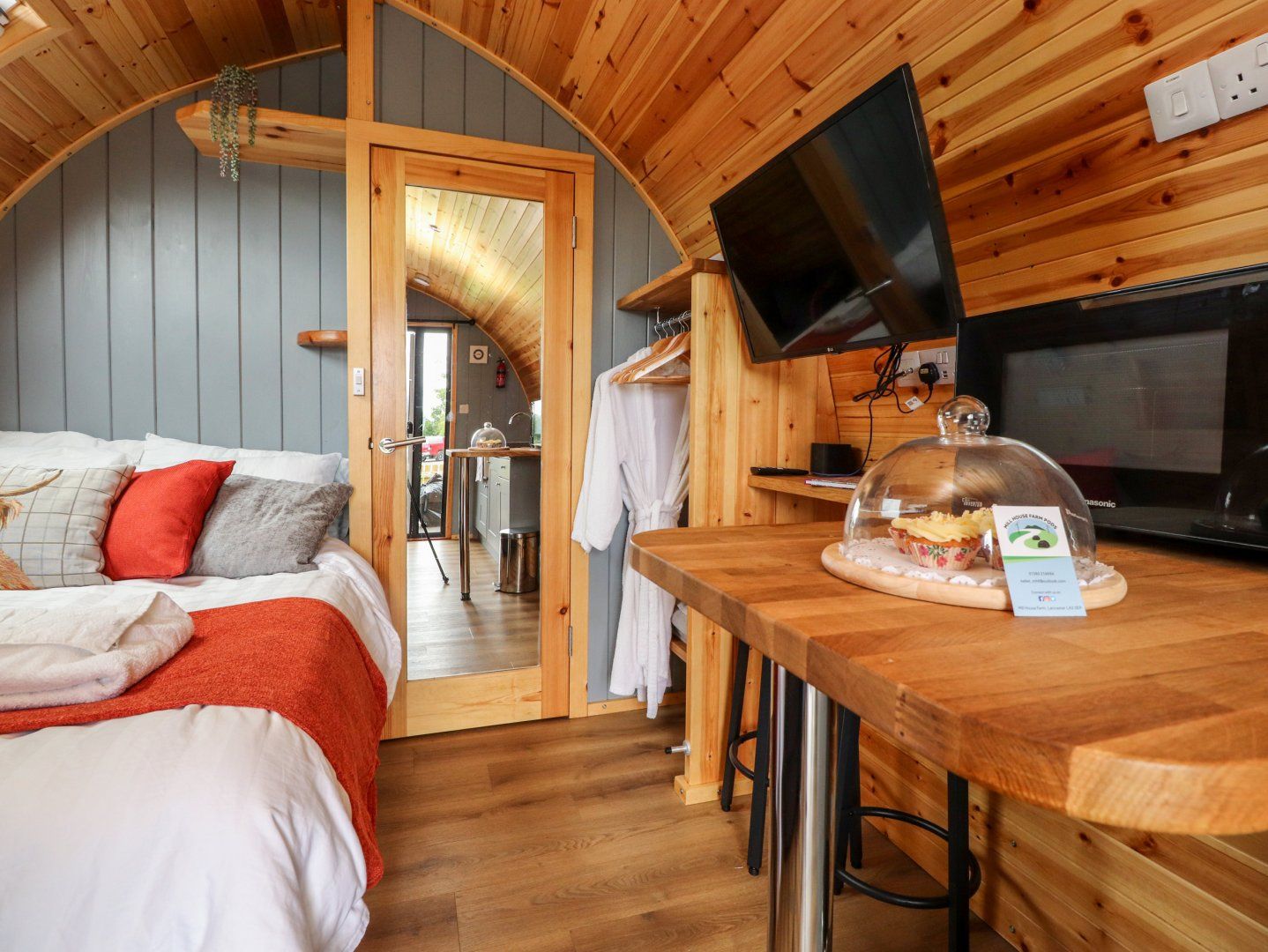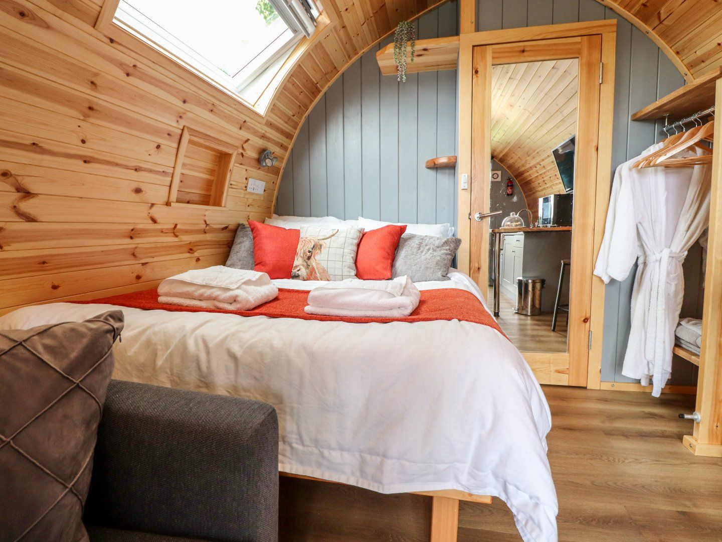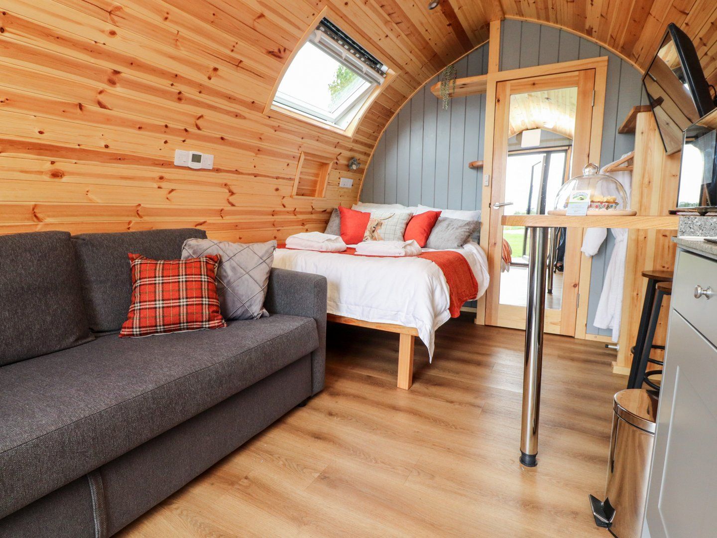 Accomodation Details Studio-style layout with double bed, kitchen, dining area and sitting area. Shower room with walk-in shower, basin, heated towel rail and WC
