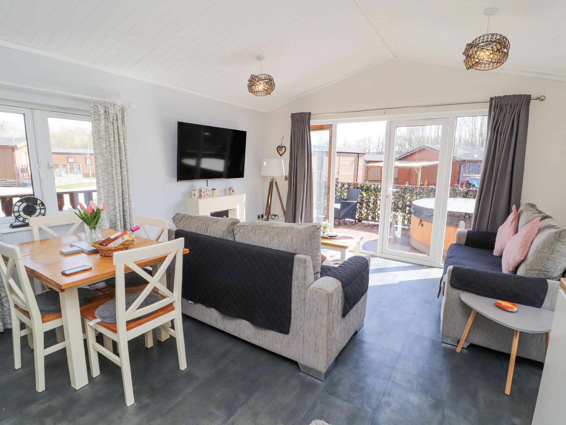 Amenities Gas heating and gas fire. Electric oven and gas hob, microwave, fridge/freezer, TV and WiFi. Fuel and power inc. in rent. Bed linen and towels inc. in rent. Off-road parking for one car. Enclosed decking area with furniture and hot tub. Facilities on offer on site include an indoor swimming pool, steam room and gym. Two well-behaved pets welcome. Sorry, no smoking. Shop >1 mile and pub 0.2 miles. Note: Additional charges for use of leisure facilities, please contact the site for details. Note: An on-site lake is available for fishing at £6 per day.