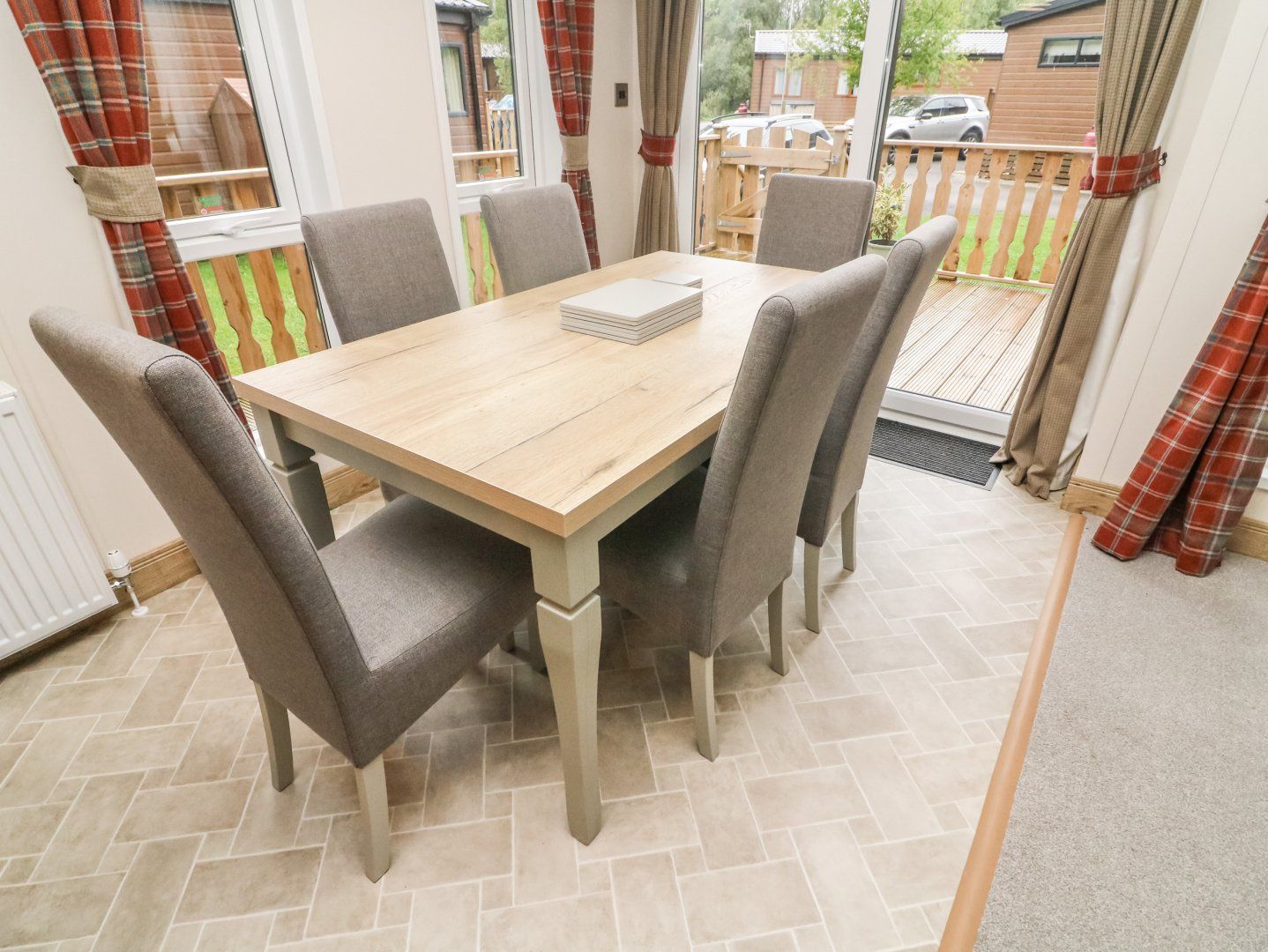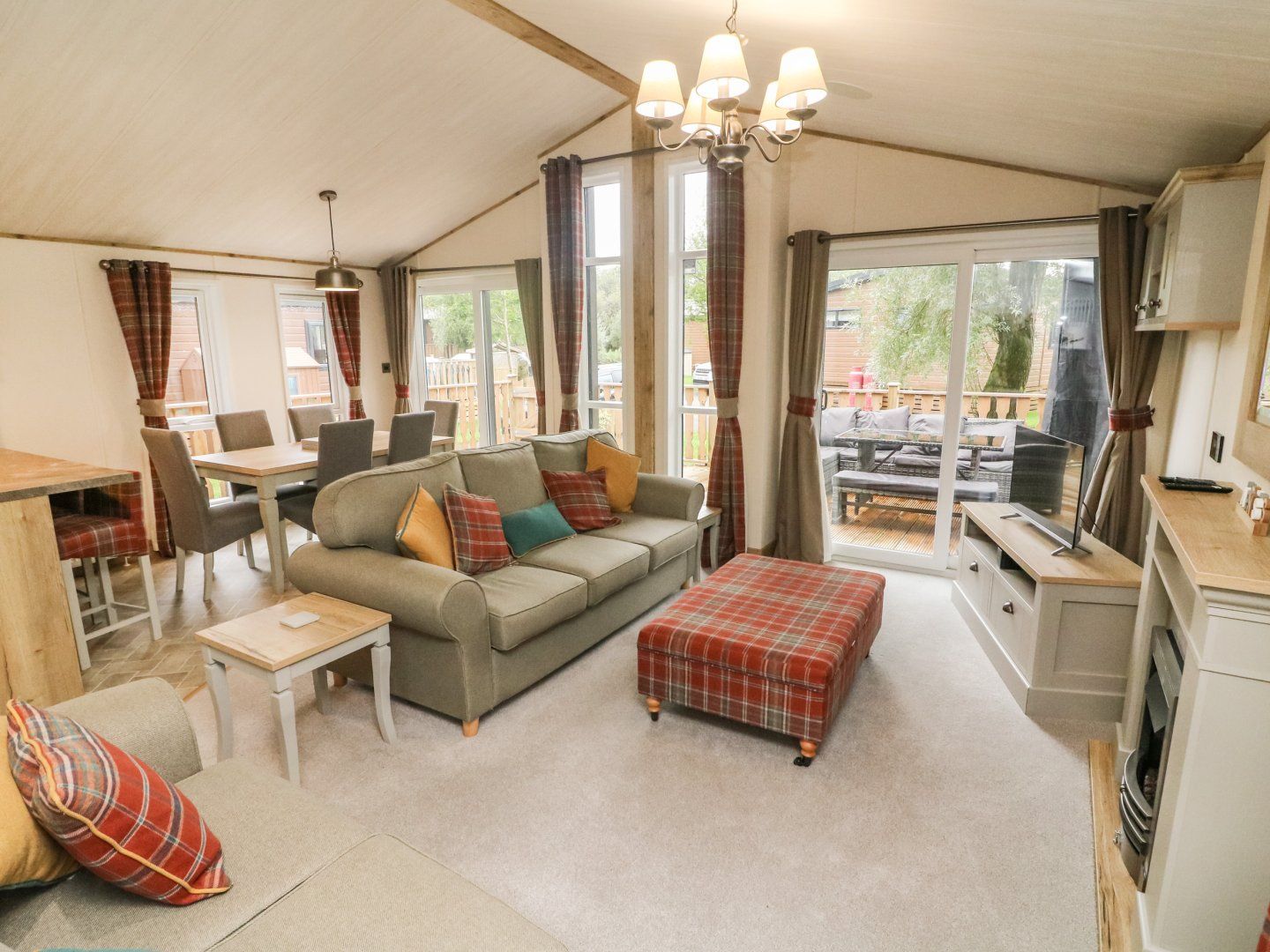Amenities Central heating with electric fire. Electric and Gas Range ovens, gas hob, microwave, fridge, freezer, dishwasher, wine cooler. 3 x Smart TVs, WiFi. Fuel and power inc. in rent. Bed linen and towels inc. in rent. Off-road parking for 2 cars. Enclosed wrap-around veranda with decking and furniture. One well-behaved dog welcome. Sorry, no smoking. Shop 0.9 miles, pub on-site, Pine Lake 1.4 miles. Note: There are steps to the exterior of the lodge