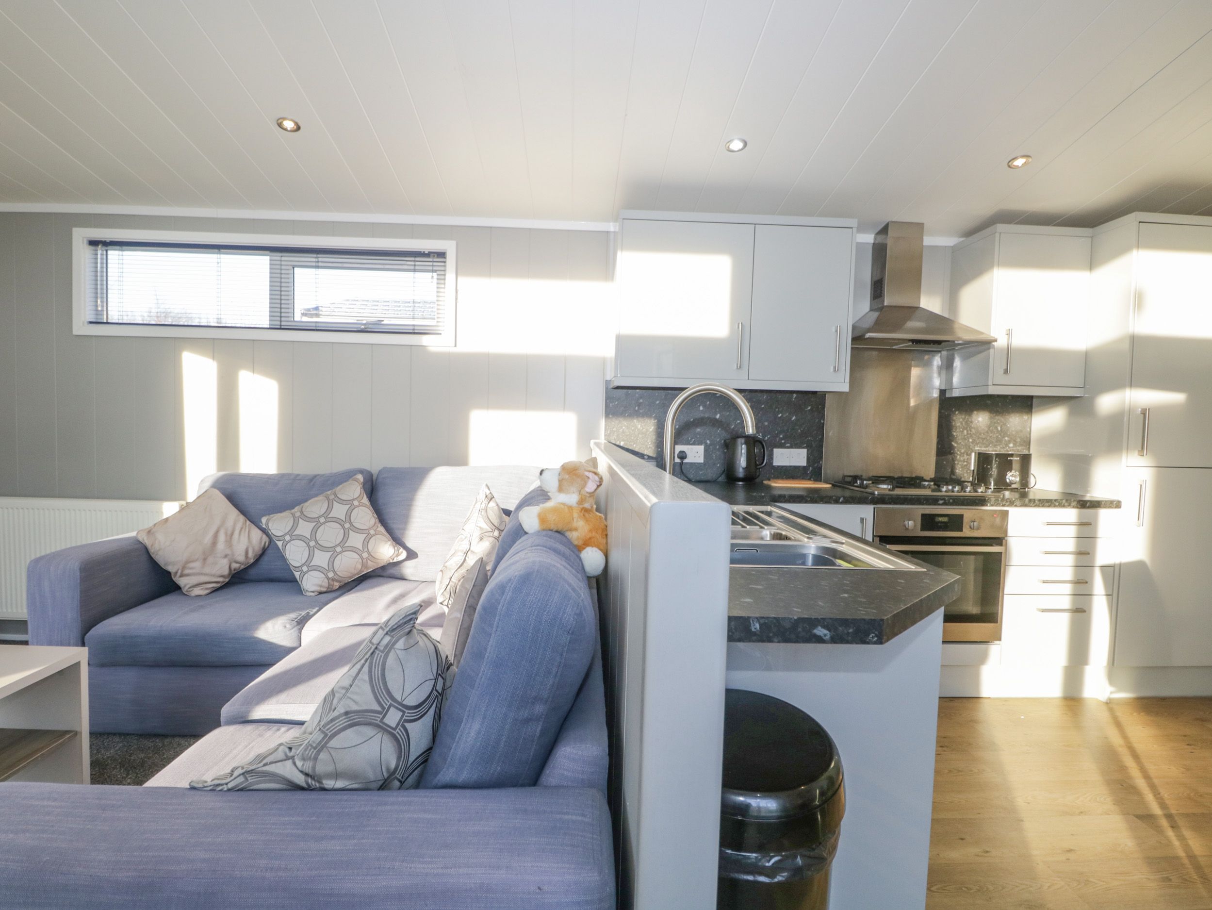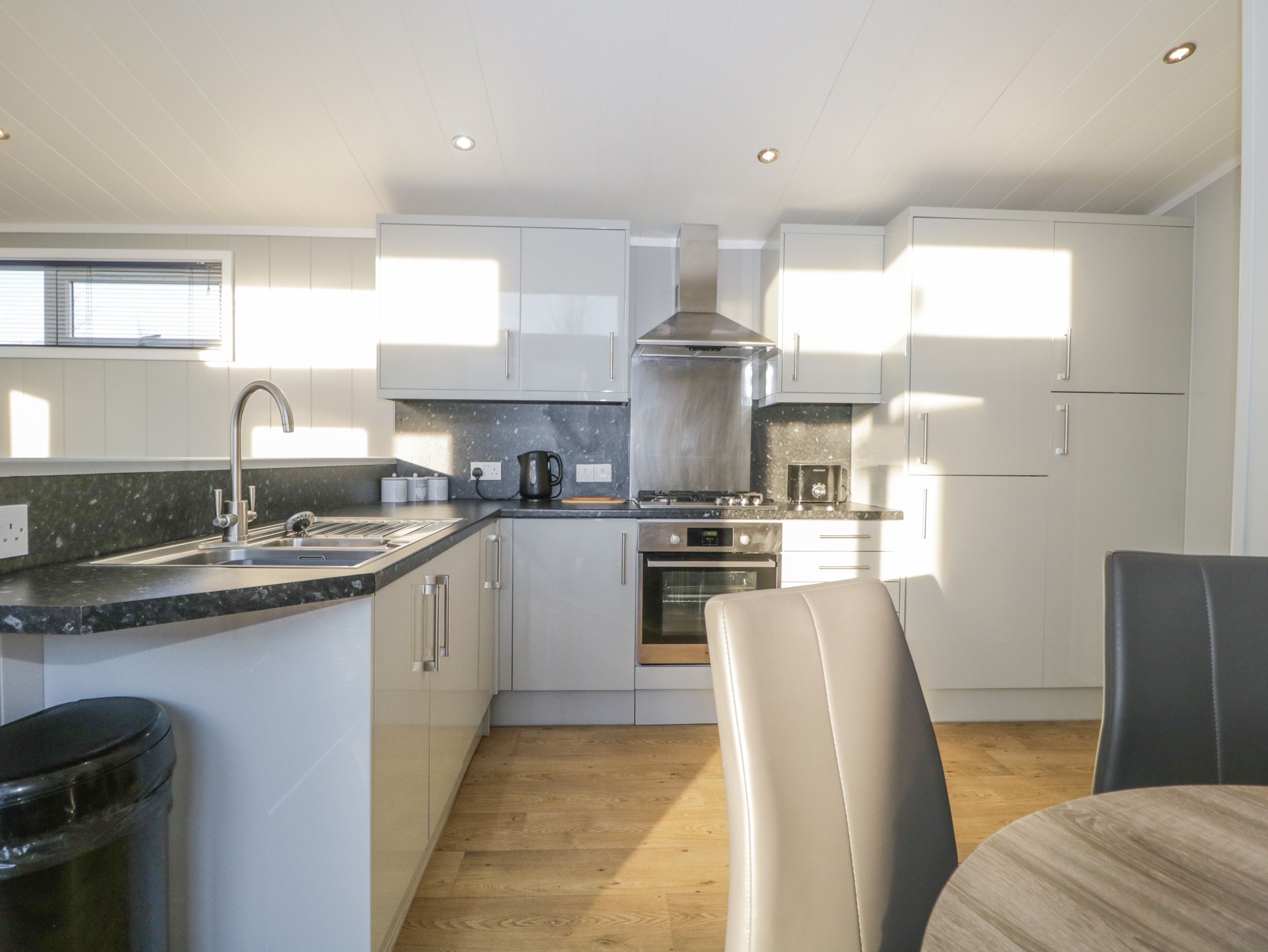 Accomodation Details All-ground-floor. Two bedrooms: 1 x king-size with en-suite basin and WC, 1 x twin. Shower room with walk-in shower, basin, heated towel rail and WC. Open-plan living space with kitchen, dining area and sitting area