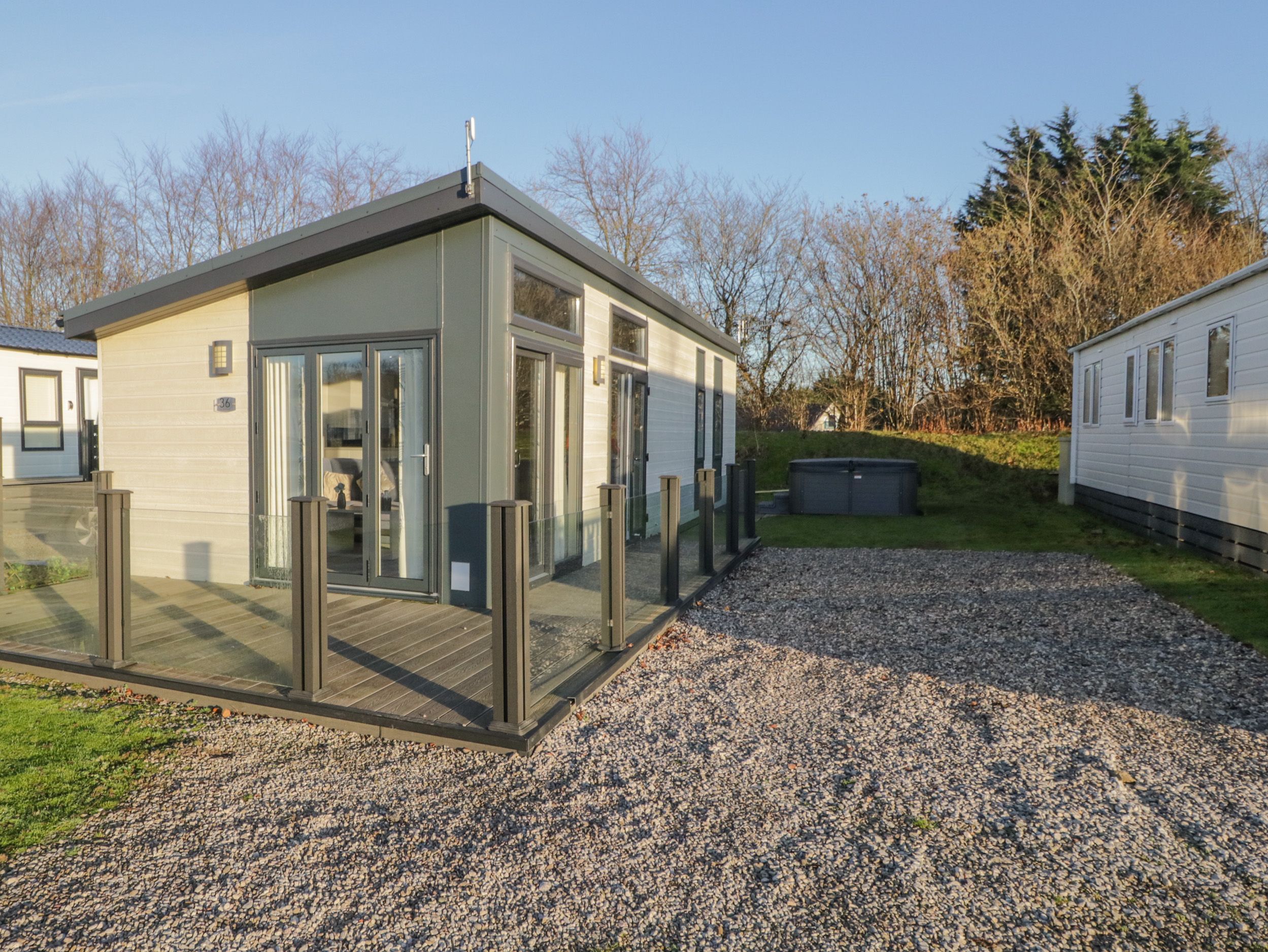 Amenities Gas central heating. Electric oven, gas hob, fridge/freezer, washing machine. TV, WiFi. Fuel and power inc. in rent. Bed linen and towels inc. in rent. Highchair and travel cot available. Off-road parking for 2 cars. Rear decking with furniture and hot tub. One well-behaved dog welcome. Sorry, no smoking and no stag, hen or similar parties.. Shop 1.1 miles, pub 0.2 miles. Note: The rear decking is not enclosed, please consider this when booking. Note: Guests have access to several leisure facilities within South Lakeland Leisure Village, such as: Bar/restaurant, cafe, picnic area, fishing, swimming pool and a gym at an additional cost paid locally. Please note: Use of the on-site swimming pool and gym facilities are at an additional cost, please speak to the reception team on-site for further details