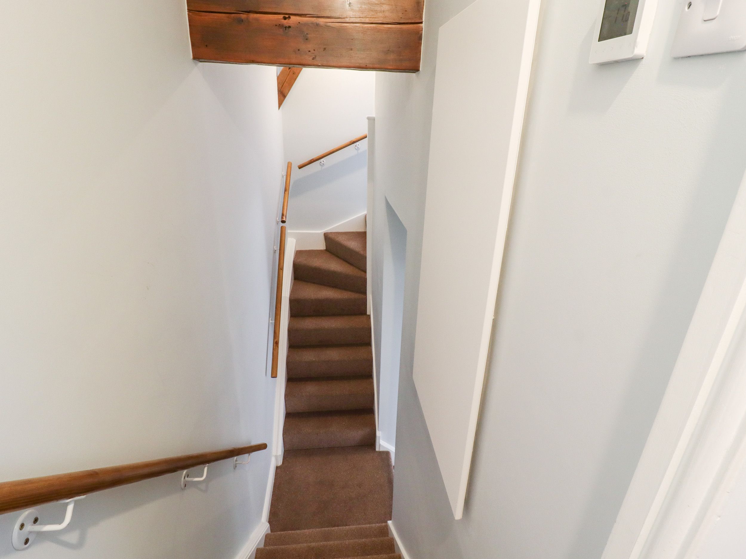 Amenities Underfloor heating. Electric oven and hob, microwave, fridge/freezer, washing machine, dishwasher. TV, WiFi. Fuel and power inc. in rent. Bed linen and towels inc. in rent. Parking. Rear patio with furniture. Gas fired barbeque and chiminea are available during good weather. One well-behaved dog welcome. Sorry, no smoking. Shop 0.2 miles, pub 0.2 miles. Note: The staircase is steep; please take care. Note: The patio is accessed from the bedrooms, and has steps down
