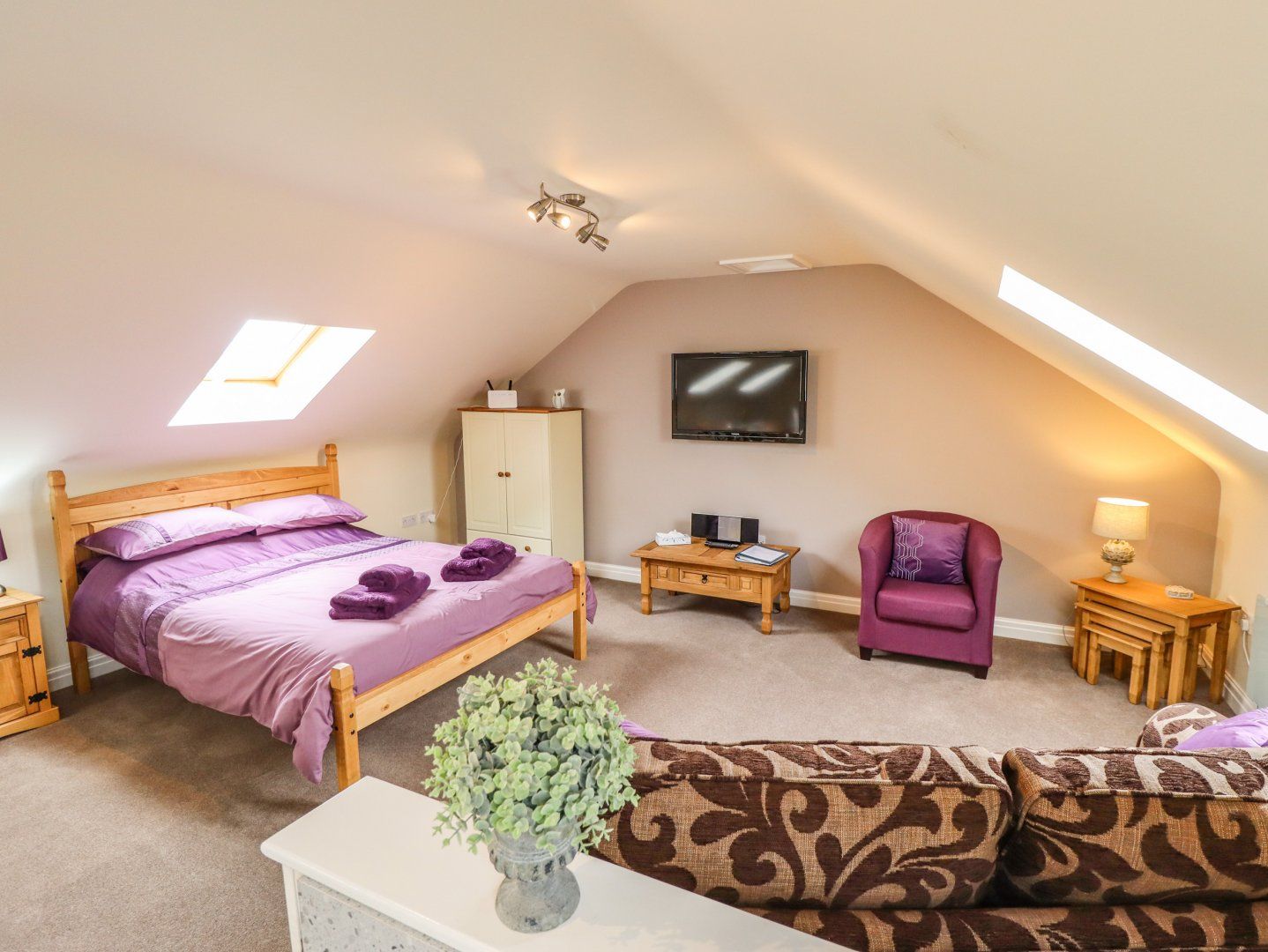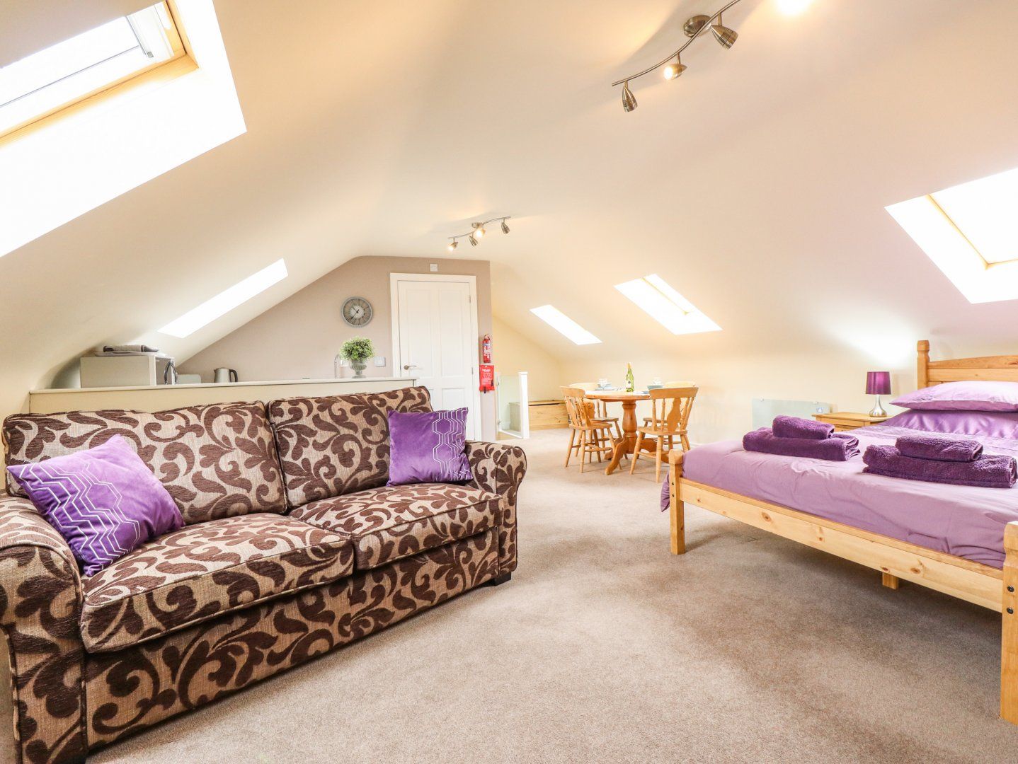 Accomodation Details First-floor studio-style annex. Open-plan living space with kitchen, dining and sitting area with king-size bed. Shower room with walk-in shower, basin and WC