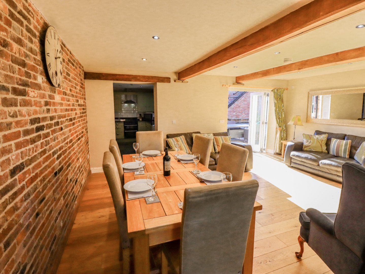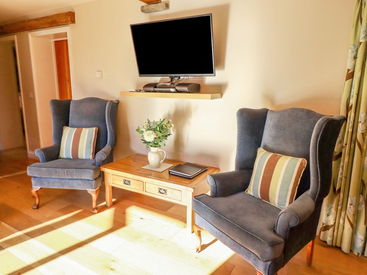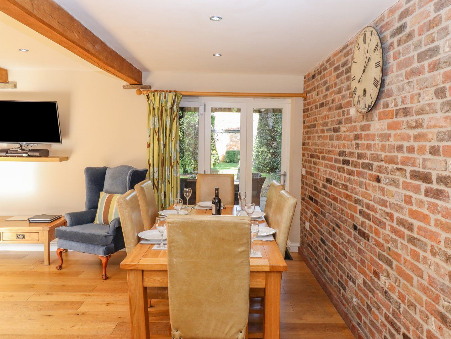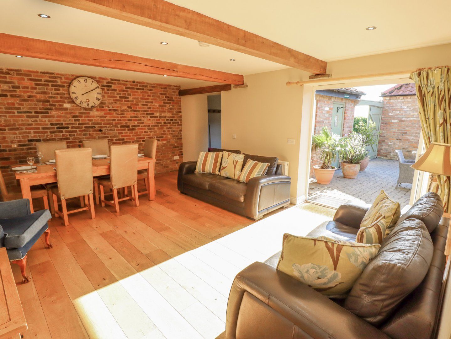 Amenities Central heating and underfloor heating. Electric oven and hob, microwave, fridge, freezer, dishwasher. TV with Freeview, 2 x TVs, DVD player, stereo, iPod dock. WIFI. Fuel and power inc. in rent. Bed linen and towels inc. in rent. Off-road parking. Shared courtyard and private enclosed garden with lawn, patio and furniture. Shared hot tub to be booked via owner for private sessions. Two well-behaved dogs welcome - not to be left unattended and a charge of £30 per dog payable in cash upon arrival. Sorry, no smoking. Shop 0.7 miles, pub 0.6 miles