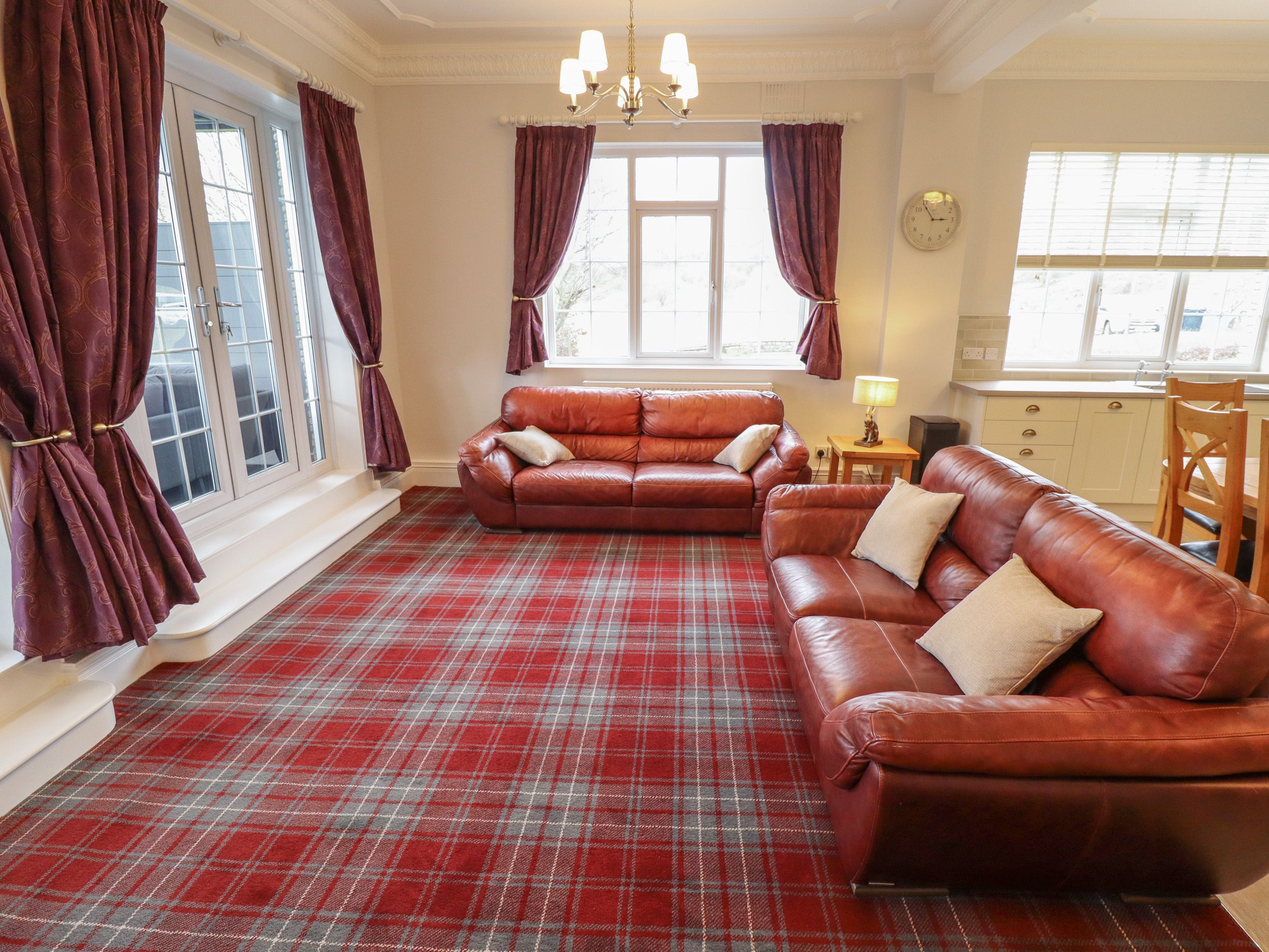 Gas central heating. Electric oven and hob, microwave, fridge/freezer, washing machine, tumble dryer, dishwasher. 4 x Smart TVs and WiFi. Fuel and power inc. in rent. Bed linen and towels inc. in rent. Off-road parking. Enclosed veranda with decking, furniture, and hot tub. Sorry, no pets and no smoking. Shop 3.1 miles, pub 1.7 miles. Note: The staircase in the property has a stairlift for those with limited mobility