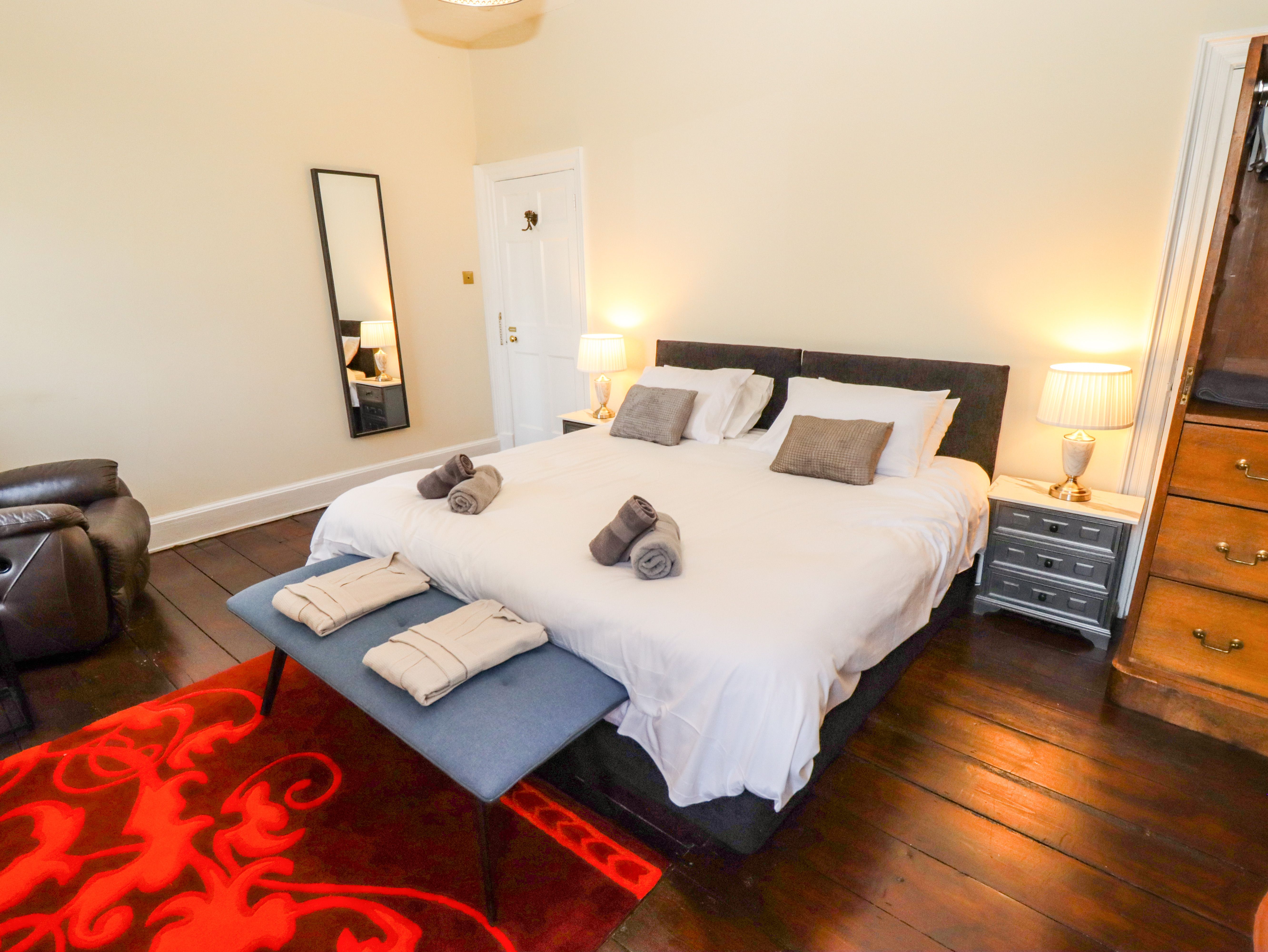 Accomodation Details Visit England 4 star Gold Award. Six bedrooms: 4 x king-size, 2 x twins (one on ground floor). Ground-floor shower room with shower, basin, heated towel rail and WC. Shower room with shower, basin, heated towel rail and WC. Bathroom with bath, shower over, basin, heated towel rail and WC. Kitchen. Dining room. Sitting room. Hot tub. Indoor heated garden swimming pool, BBQ, tennis court and summer house and table football.