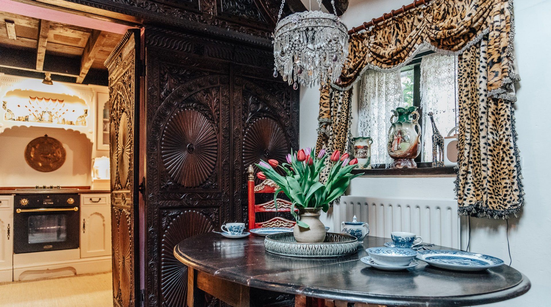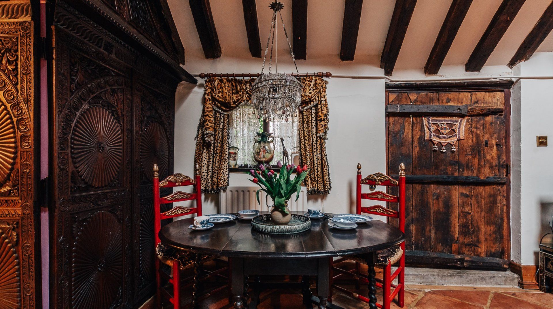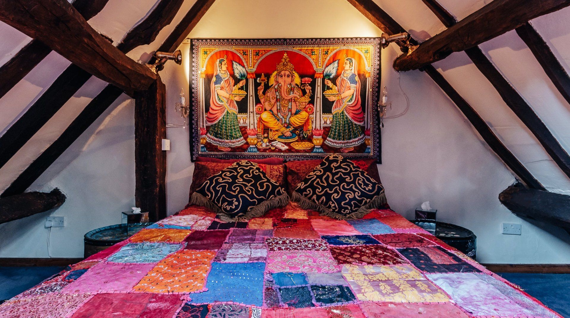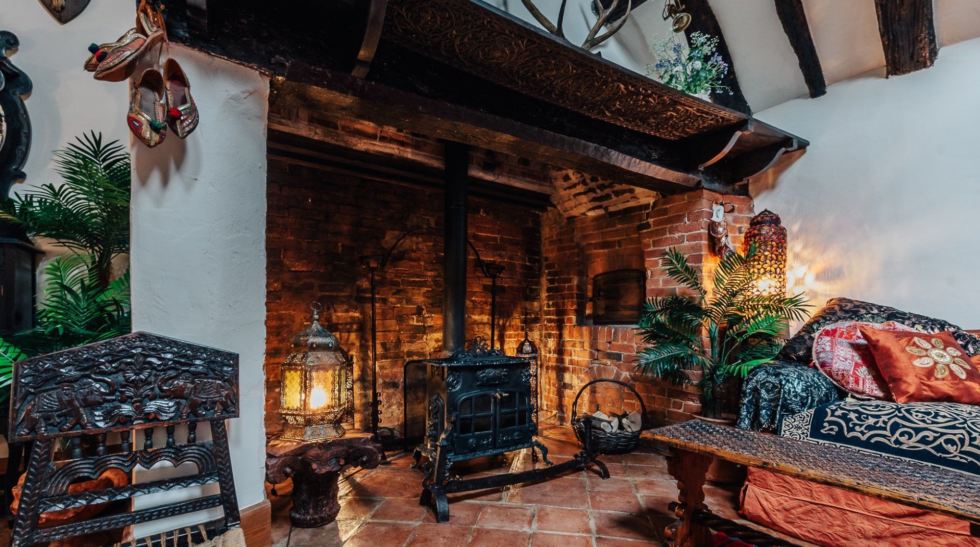 Secret doors and treasures galore, this Grade II listed home in a quiet part of Long Bennington village is steeped in history and culture. A visual feast – you’ll find carved furniture from Africa, a Rajasthani chest, a coffee table from China, and red and gold chairs from Spain. It’s no wonder your hosts are both artists who love to travel. We could spend hours here just admiring the precious antiques around the home – including an intricately carved screen brought back by explorer Sir Francis Younghusband after he led the British Army into Tibet. More is more here with curiosities in every corner, but there’s plenty of space to relax too. Unwind in the foliage-filled conservatory, lie on the sofa in the living room where a traditional Persian rug pops against a terracotta floor, or take a walk amidst the daffodils in the garden outside. If you can ever peel yourself away from this magical gem, Newark historic market town – known for its indie shops, antiques and old buildings – is only a fifteen-minute drive from your door. One thing’s for sure, this spot will satisfy the soul.