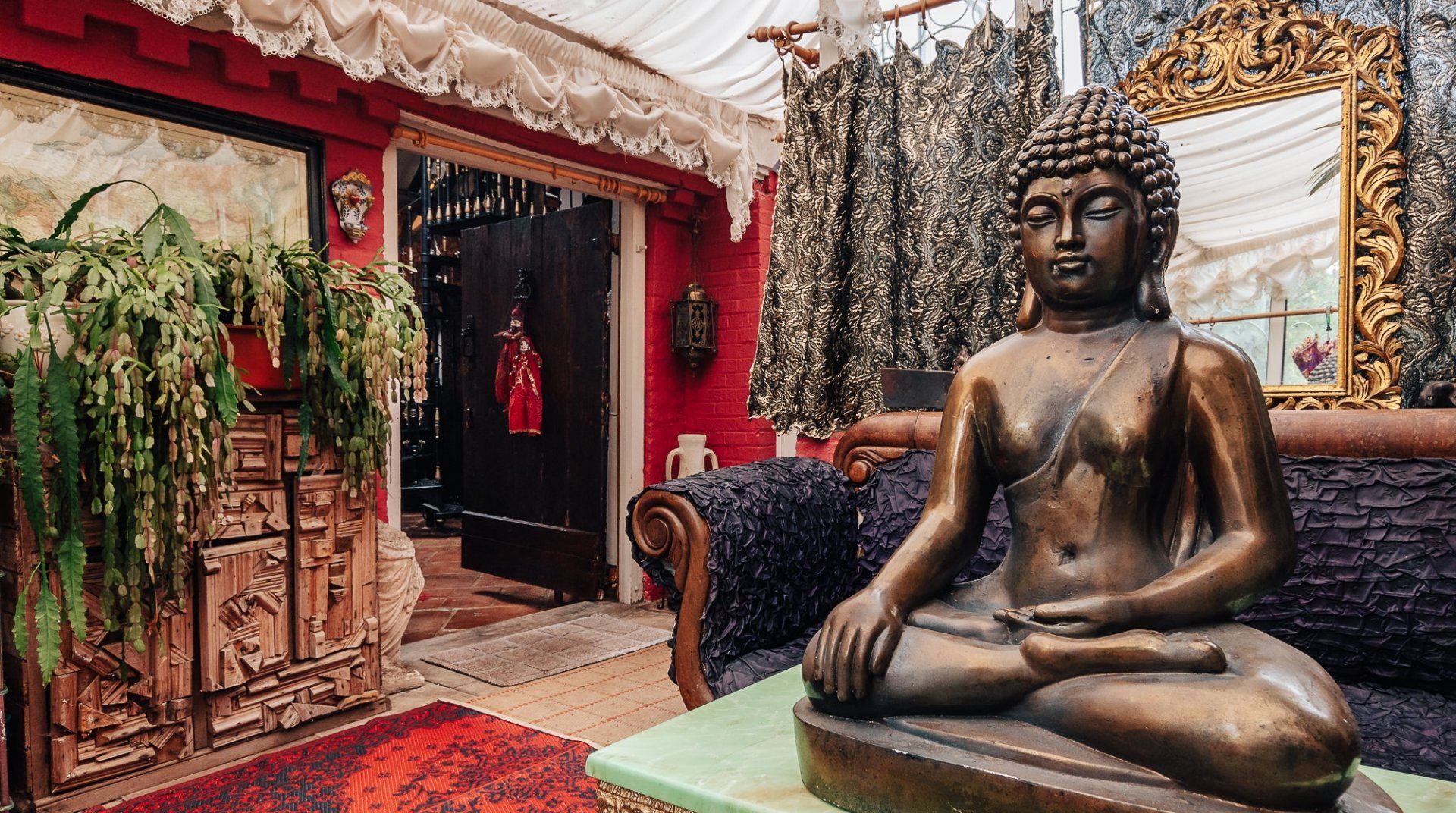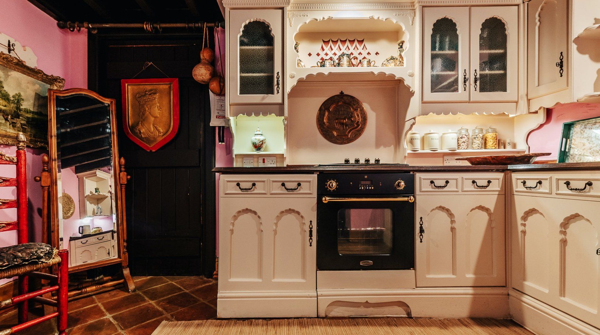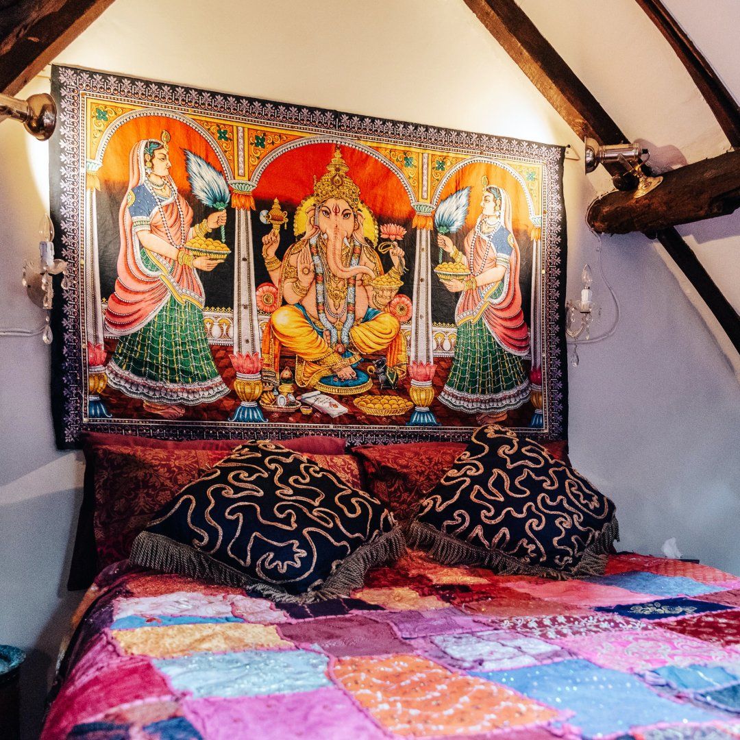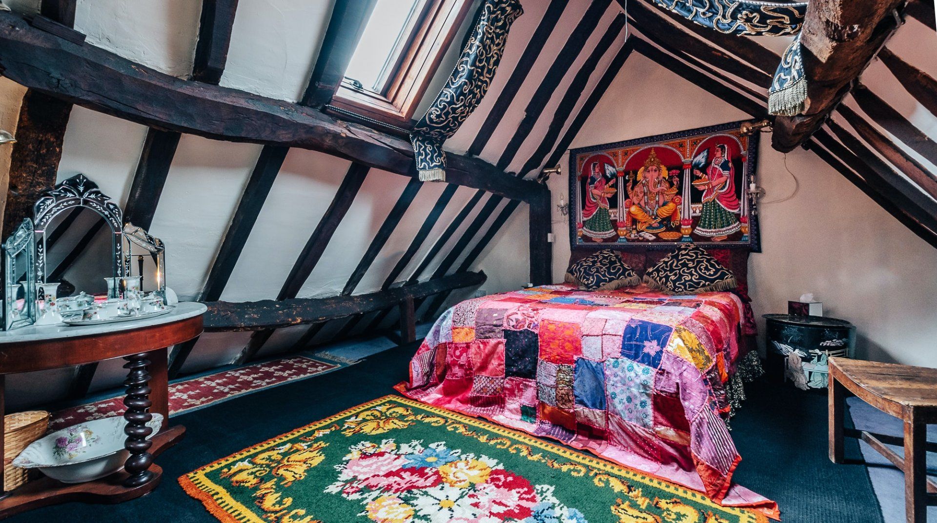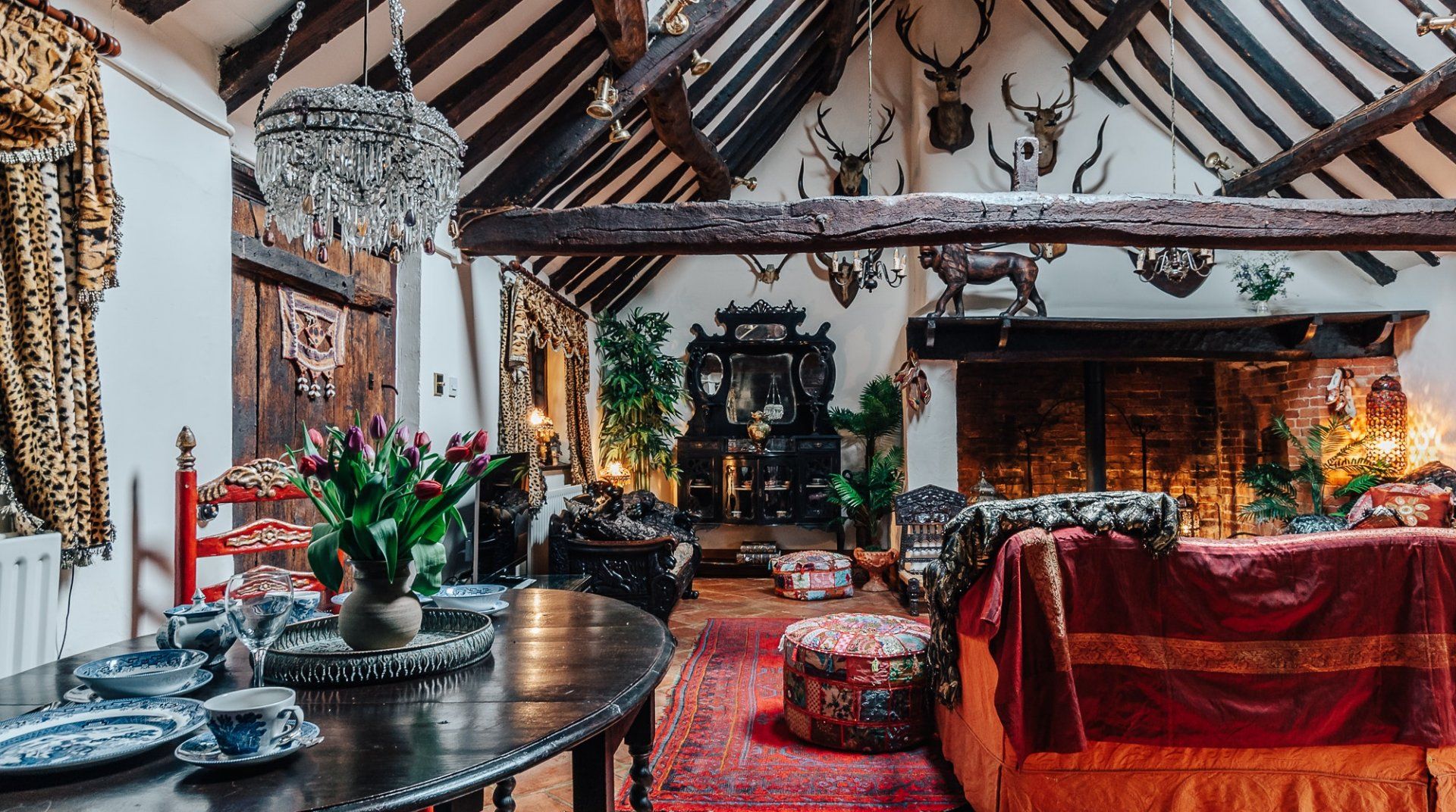 Secret doors and treasures galore, this Grade II listed home in a quiet part of Long Bennington village is steeped in history and culture. A visual feast – you’ll find carved furniture from Africa, a Rajasthani chest, a coffee table from China, and red and gold chairs from Spain. It’s no wonder your hosts are both artists who love to travel. We could spend hours here just admiring the precious antiques around the home – including an intricately carved screen brought back by explorer Sir Francis Younghusband after he led the British Army into Tibet. More is more here with curiosities in every corner, but there’s plenty of space to relax too. Unwind in the foliage-filled conservatory, lie on the sofa in the living room where a traditional Persian rug pops against a terracotta floor, or take a walk amidst the daffodils in the garden outside. If you can ever peel yourself away from this magical gem, Newark historic market town – known for its indie shops, antiques and old buildings – is only a fifteen-minute drive from your door. One thing’s for sure, this spot will satisfy the soul.