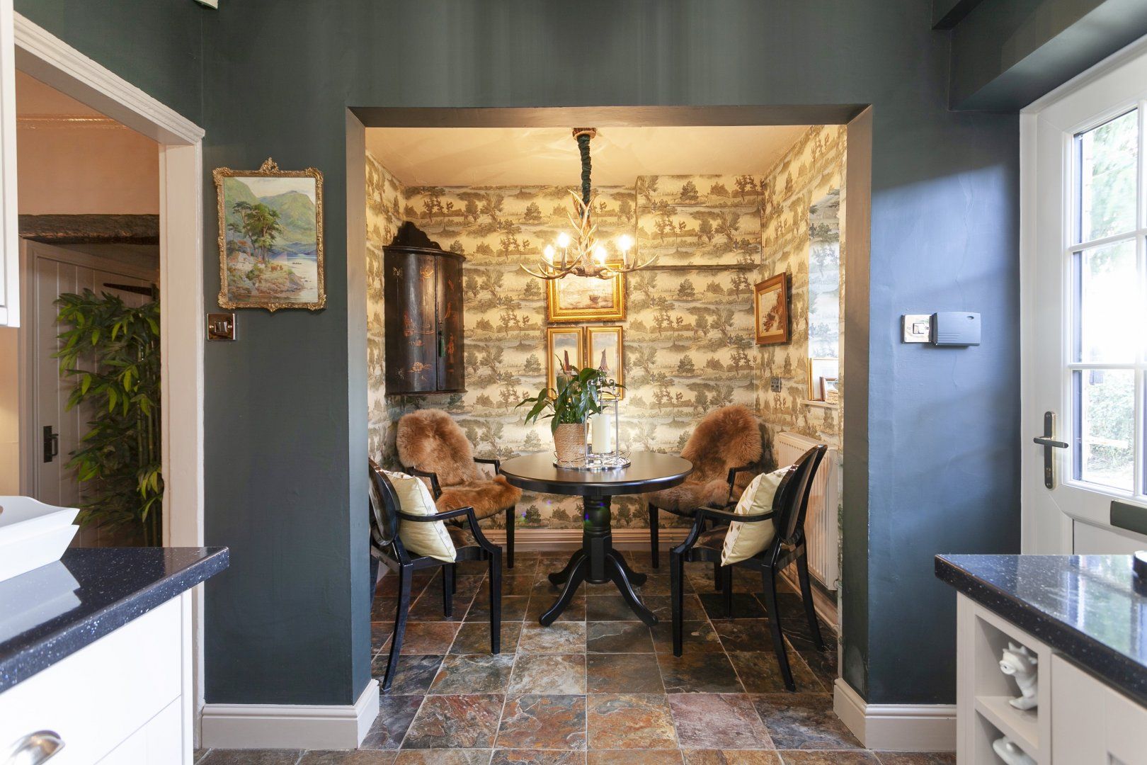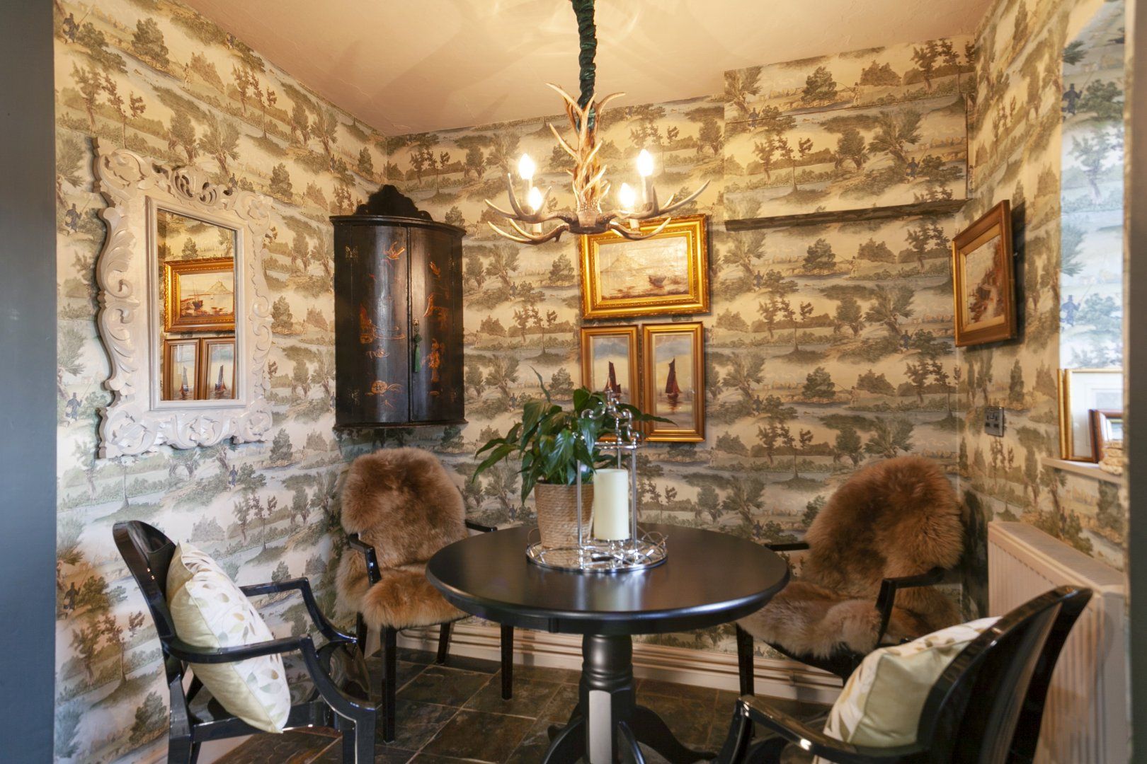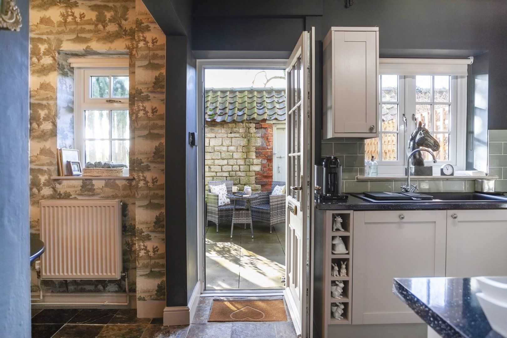 A dash of magic has been liberally sprinkled over the traditional interior of this charming cottage and we’re big fans. The living room is cosy as you like, with a squashy pair of teal chesterfield sofas, an open fire and gilt-framed pictures. Upstairs, the bedrooms have a sumptuous boutique feel (we loved the luscious leafy look in one of them) and rural views that invite total relaxation. The unique dining nook is adorned with sheepskins, a chandelier made of antlers and characterful wallpaper depicting country scenes, making it a space fit for a (smallish) party of lords and ladies. The setting is rather lovely too, in a pretty Lincolnshire hamlet, with open countryside all around. Outside there’s a beautiful garden with a pergola and dining areas for those dusky summer evenings. Nearby Harlaxton, a five-minute drive away, is ideal for stocking up on basic supplies, as well as providing a slice of history with Harlaxton Manor. Drive a little further to take a stroll down Grantham Canal for gorgeous waterside views or explore the pale limestone streets of Stamford. Depending on the season, evenings are either about a glass of something cold in the garden, or a warming red in front of the fire – whichever way, it’s a delight.
