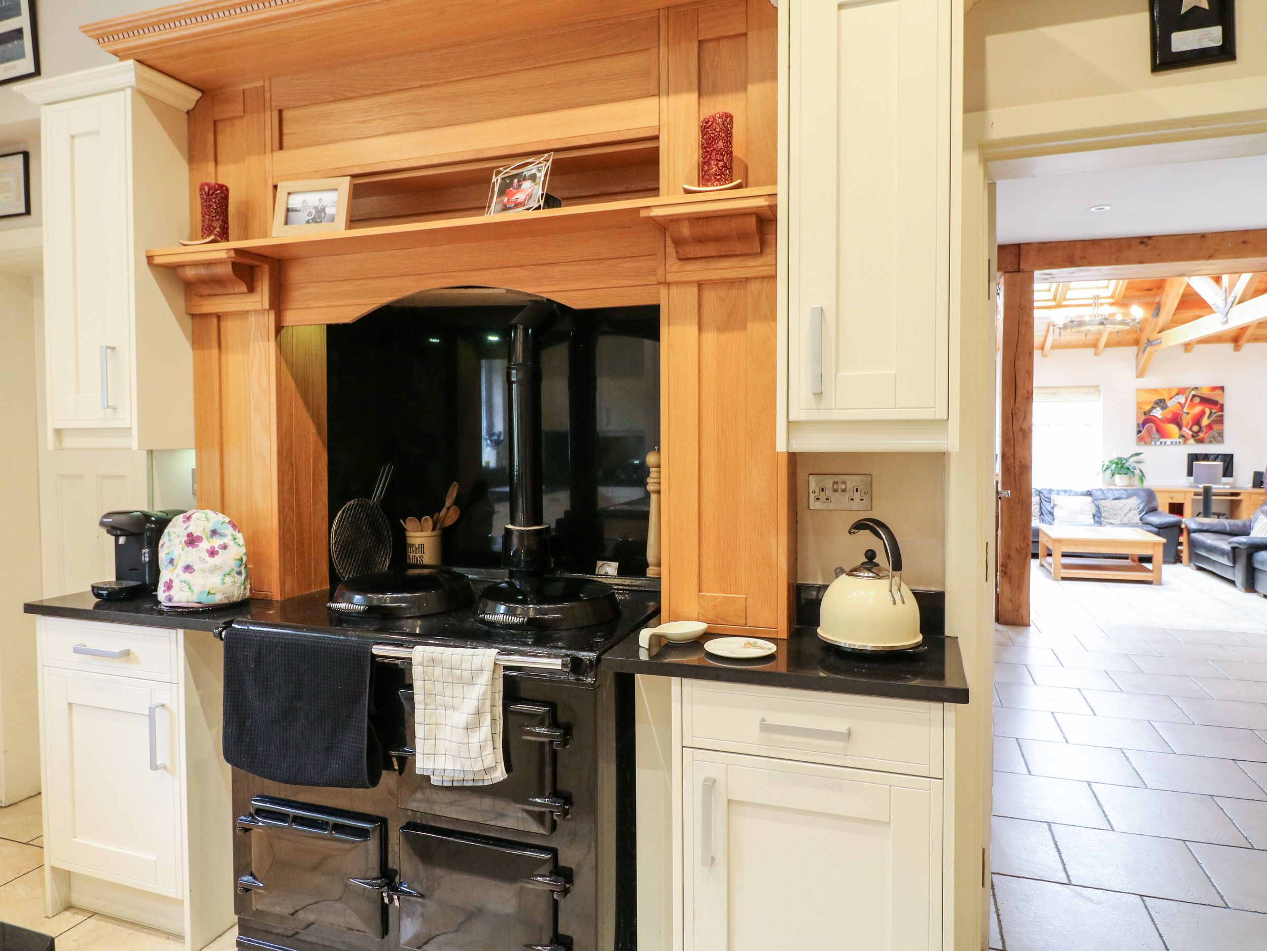 Amenities Central heating with open fire and AGA. AGA, double electric ovens, induction hob, steamer oven, combi microwave/oven, 3 x fridge, washing machine, tumble dryer, 2 x dishwashers, coffee maker, 2 x plate warmer, 1 x water dispenser, 1 x wine fridge, 1 x large pantry. 2 x TVs, table tennis table, WiFi, a large selection of books and DVDs, Wii and PlayStation with games in family room and Netflix on all TVs. Fuel, power and starter pack for open fire inc. in rent. Bed linen and towels inc. in rent. 2 x highchairs and 2 x travel cots available on request. Off-road parking for 10 cars on driveway. One-acre rear garden with lawn, patio, gazebo, hot tub, croquet lawn and football play area with 5 aside goals and child's play area with swings, slide, Wendy house and monkey bars, trampoline and furniture. Secure bike storage in garage. Well-behaved dogs welcome. Sorry, no smoking. Shop 0.4 miles, pub 200 yards. Note: The large family room can be converted into a party room for special occasions seating 40 people for a separate fee of £300, local in-house catering can also be arranged, please ensure you provide the necessary information with the date of the event when booking. Note: There is a large, private and secluded garden - Pets are welcome but the garden is not secure for dogs. Note: There is a pond on driveway in front of property, please take care. Note: Check-in from 4pm, check-out at 10am