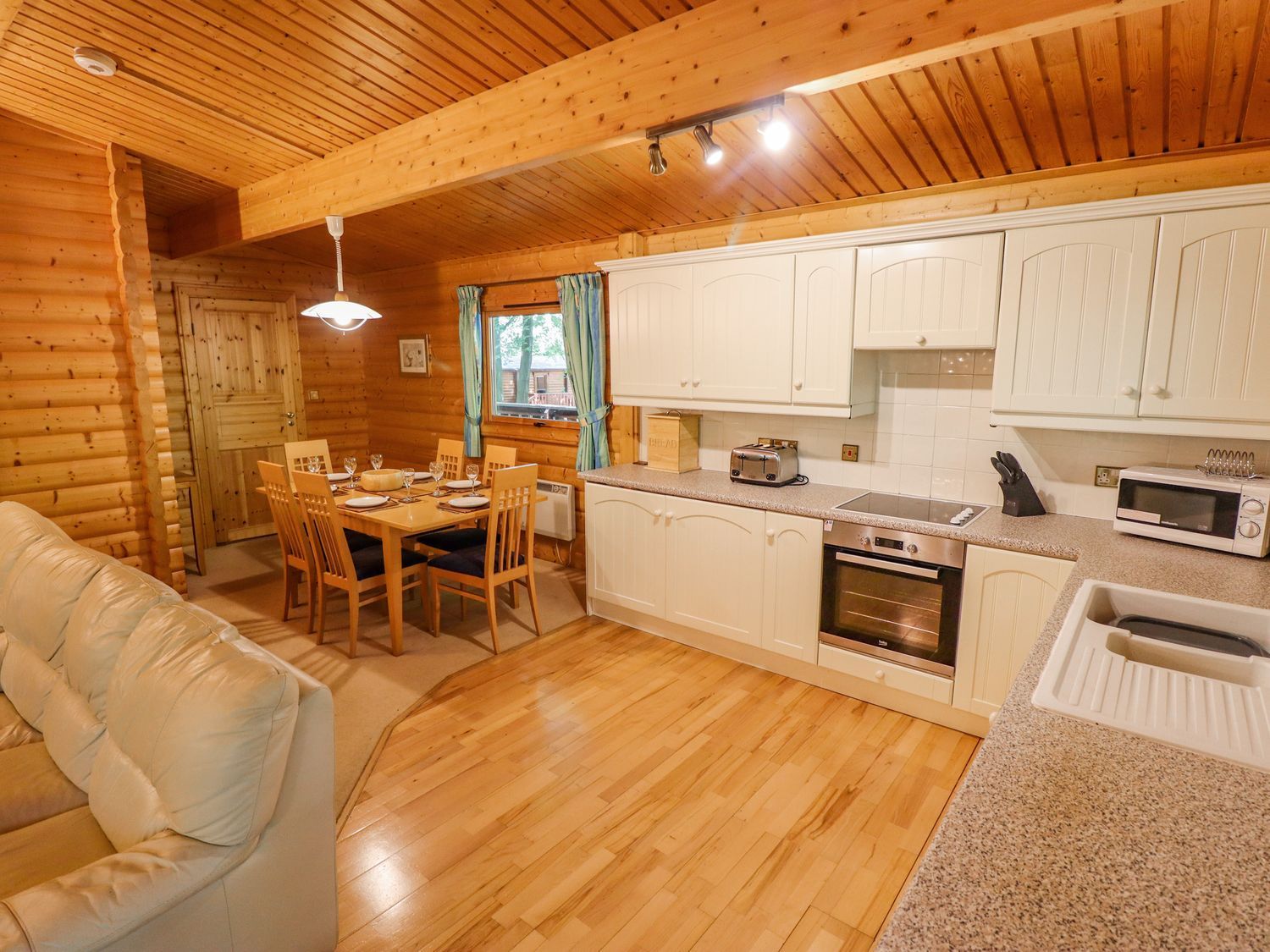 Amenities Electric central heating. Electric oven and hob, microwave, fridge, dishwasher and washing machine. Smart TV, DVD Player and WiFi. Fuel and power inc. in rent. Bed linen and towels inc. in rent. Travel cot and highchair. Off-road parking for 3 cars. Rear decking with furniture. Sorry, no pets and no smoking. Shop and pub/bar on-site. miles. Note: There are steps leading up to the decking, please take care. Note: The decking isn't enclosed, please consider this when booking. Note: There are a range of on-site facilities, including: luxury spa, shop, bar/restaurant, golf course (all at extra charge). Note: Short breaks are Friday - Monday or Monday - Friday only