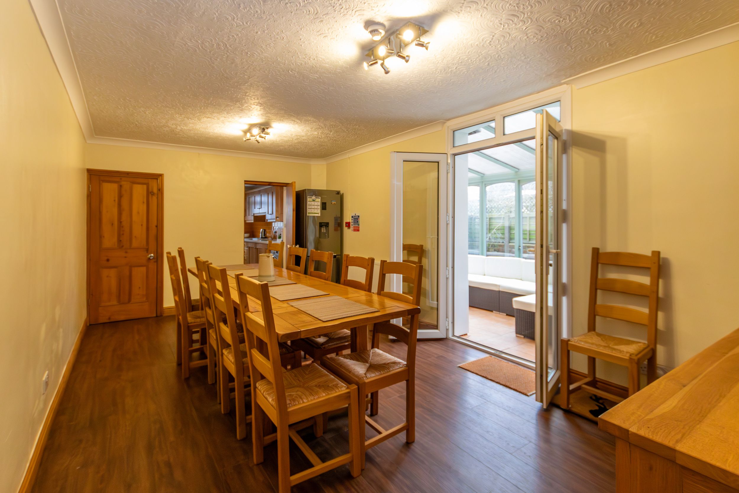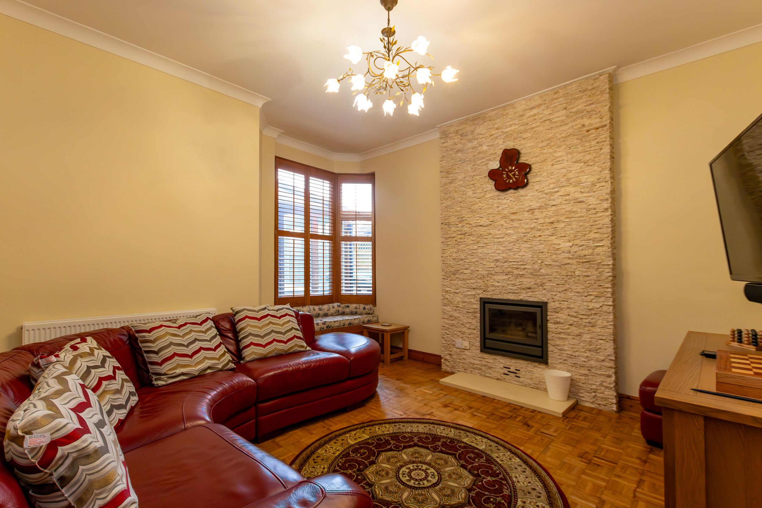 Accomodation Details Over three floors. Five bedrooms: 2 x double, 1 x second-floor double, 1 x twin, 1 x second-floor twin. Bathroom with p-shaped bath, shower over, basin, heated towel rail, and WC. Second-floor bathroom with bath, shower over, basin, heated towel rail, and WC. Ground-floor shower room with walk-in shower, basin, and WC. Kitchen with Electric oven, gas hob, microwave, fridge/freezer, washing machine, dishwasher. Dining room. Sitting room with woodburning stove. Conservatory. Second reception room with Smart TV