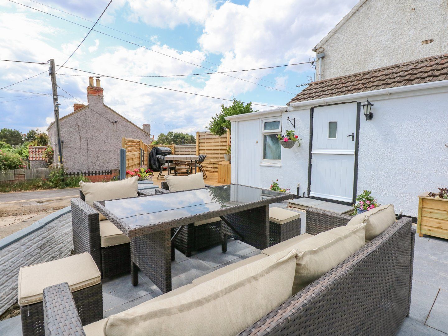 Holiday home The living areas in this holiday home consist of a kitchen with oven, hob, fridge and microwave, a utility with fridge/freezer and two washing machines, a dining room and a sitting room with gas flame-effect stove. The bedrooms consist of a king-size with Juliet balcony, a double, a ground-floor double and a ground-floor twin serviced by a ground-floor bathroom, ground-floor shower room and first-floor cloakroom. Outside there is off-road parking for three cars, a front lawn and a rear garden with lawn and beach access. Within 0.4 miles there is a shop, 0.3 miles a pub and 0.1 miles a beach. One well-behaved dog welcome, but sorry, no smoking. WiFi, fuel, power, bed linen and towels are all included in the price. Explore Lincolnshire at The Retreat. Note: There are steep drops on the front lawn and rear garden, please take care. Note: The stairs in this property are narrow and steep, please take care.