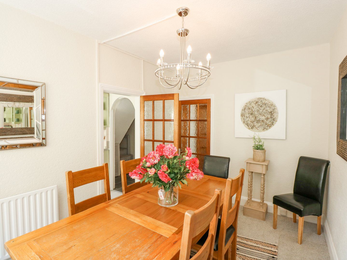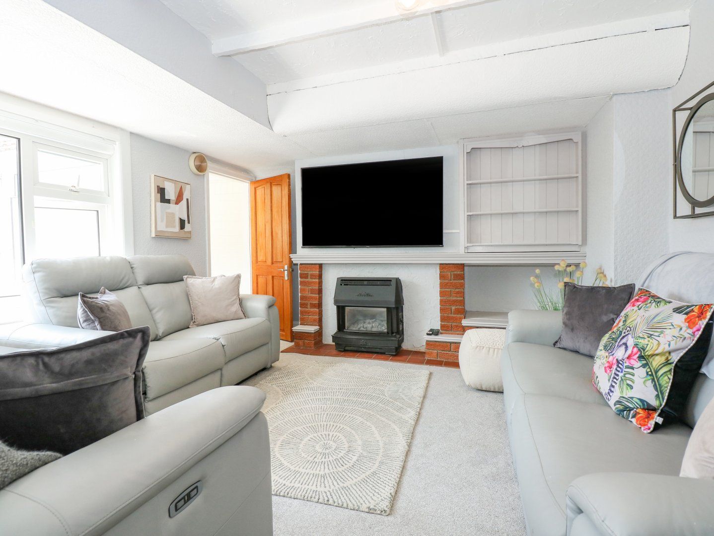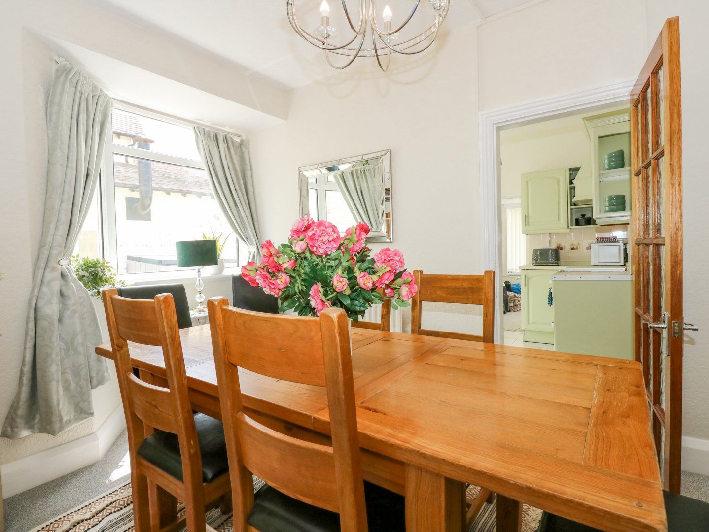 Accomodation Details Four bedrooms: 1 x king-size with Juliet balcony, 1 x double, 1 x ground-floor double, 1 x ground-floor twin. Ground-floor bathroom with bath, hand-held shower, basin and WC. Ground-floor wet room with walk-in shower, basin and WC. Kitchen. Utility. Dining room. Sitting room with gas flame-effect stove