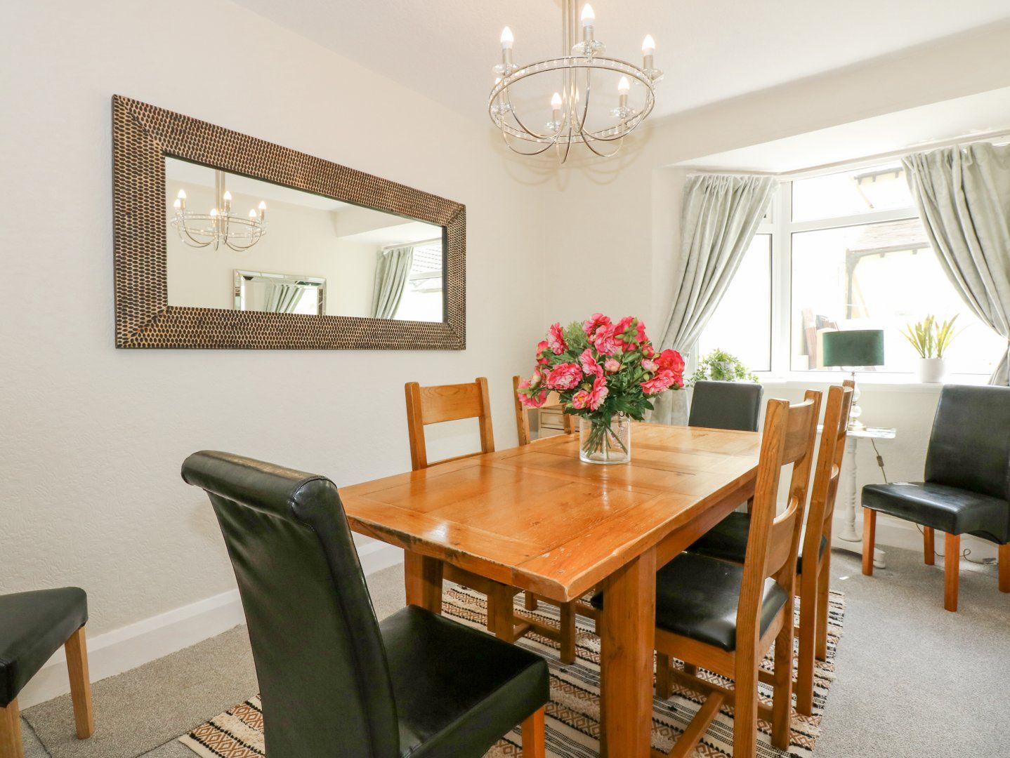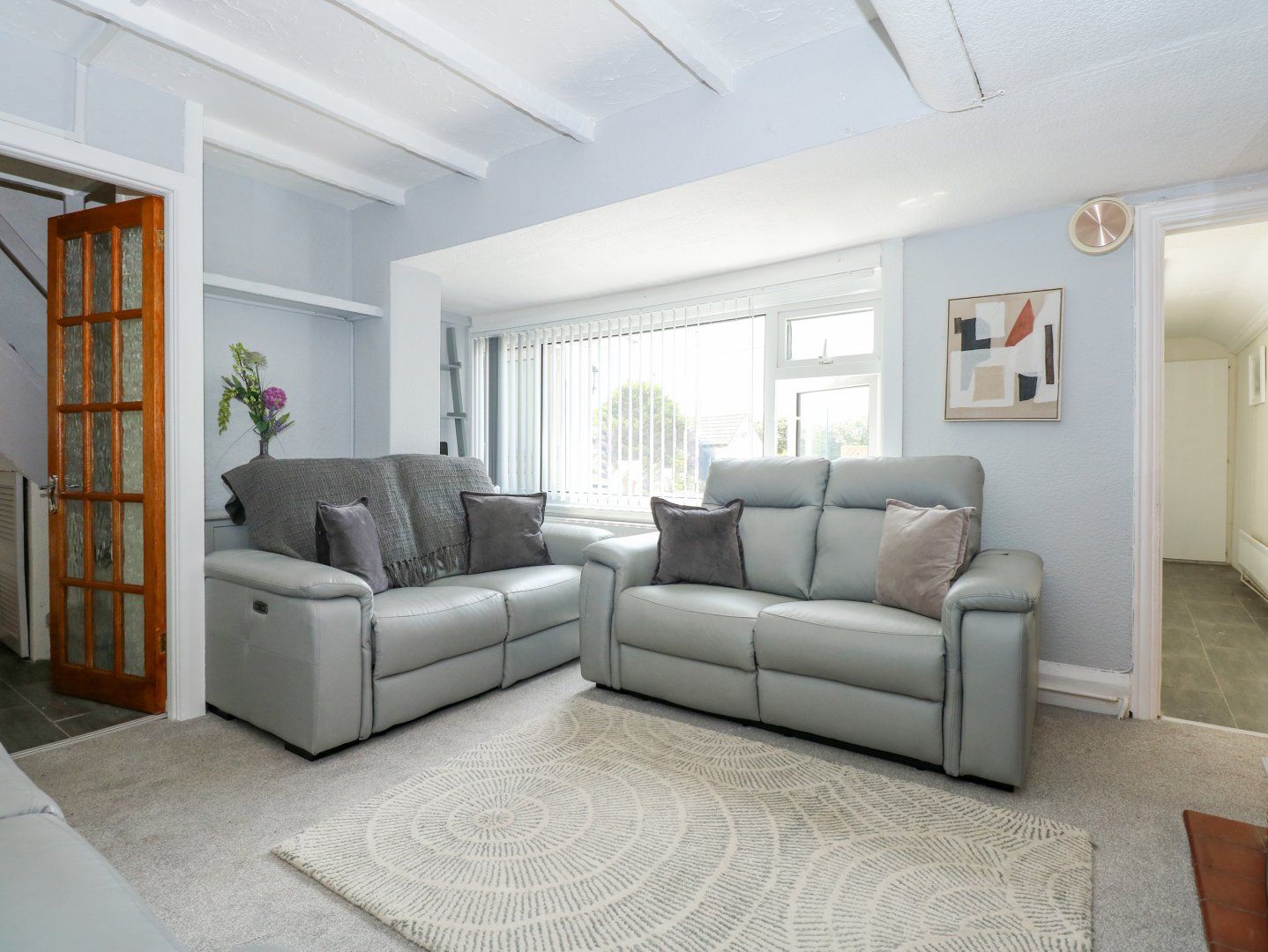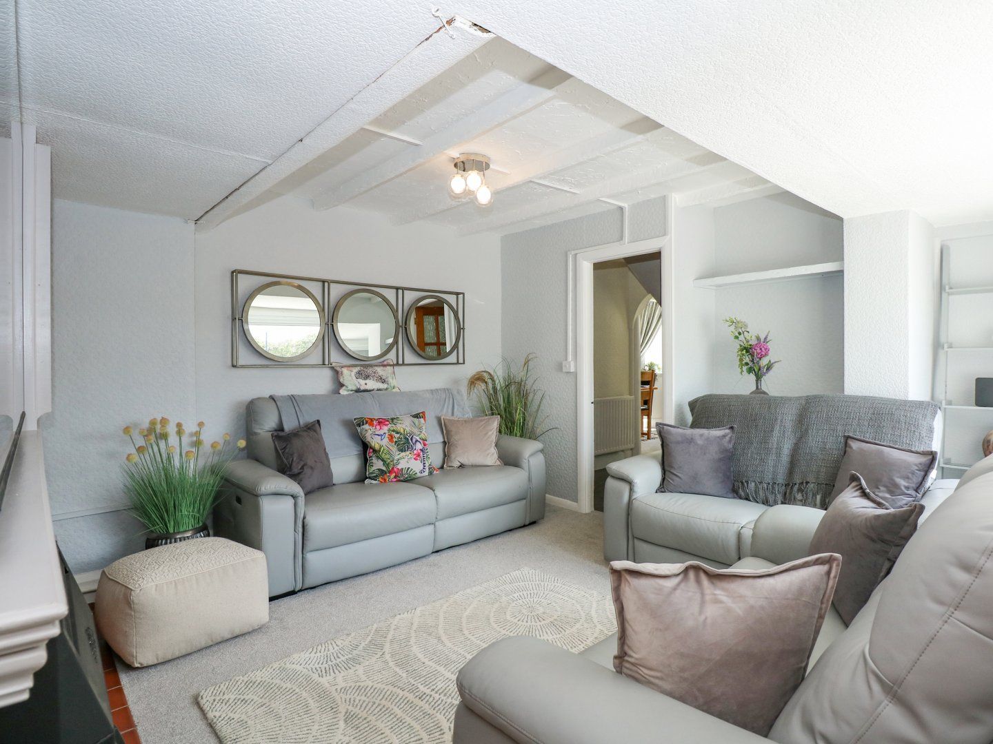 Accomodation Details Four bedrooms: 1 x king-size with Juliet balcony, 1 x double, 1 x ground-floor double, 1 x ground-floor twin. Ground-floor bathroom with bath, hand-held shower, basin and WC. Ground-floor wet room with walk-in shower, basin and WC. Kitchen. Utility. Dining room. Sitting room with gas flame-effect stove