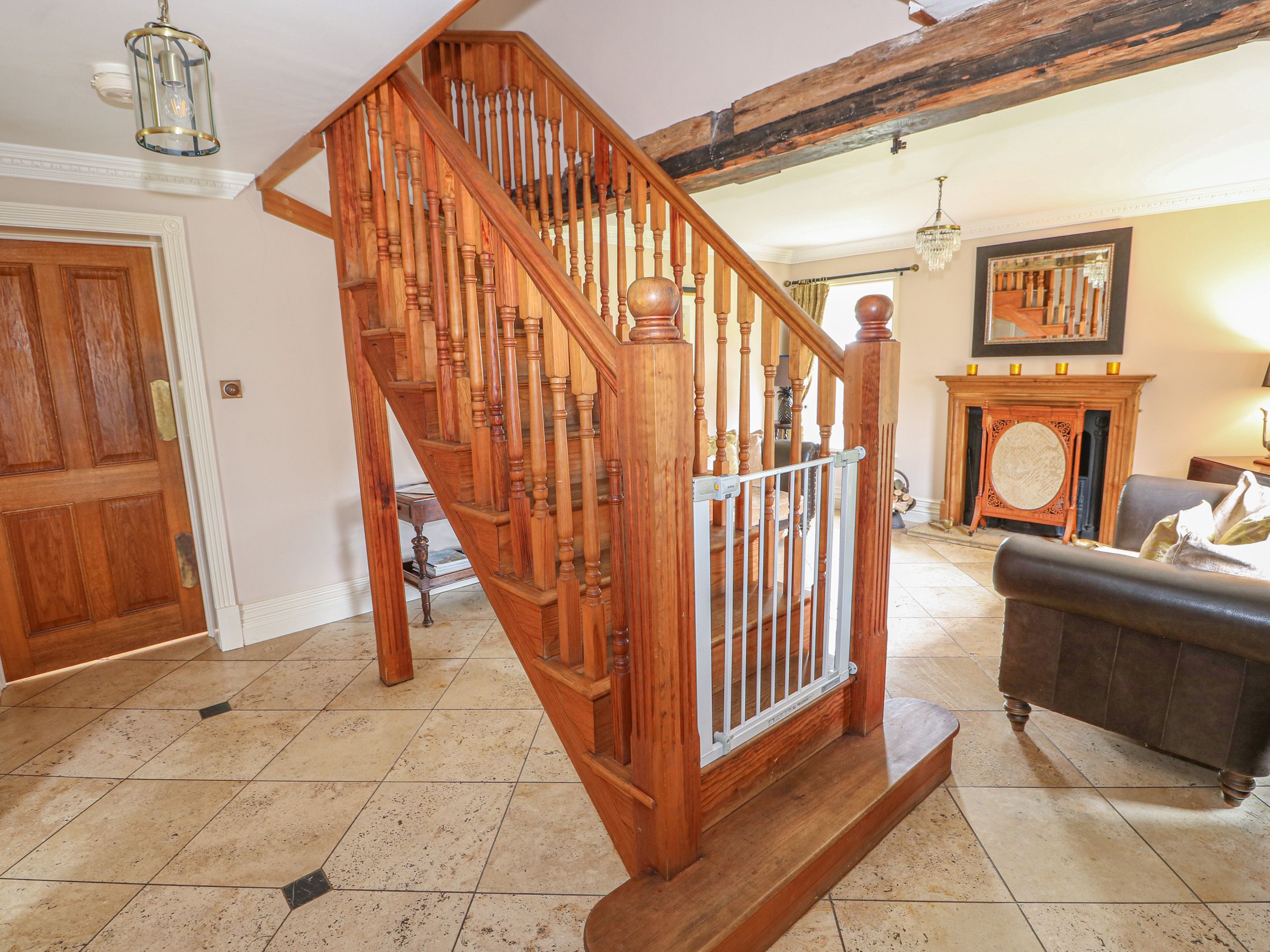 Over three floors. Five bedrooms: 1 x second-floor family room with king-size and 2 single beds, 1 x super king-size with en-suite roll-top bath with hand-held shower attachment, basin and WC, 1 x double with en-suite shower, basin and WC, 2 x king-size beds. Second-floor bathroom with corner bath, basin and WC. First-floor bathroom with bath, shower over, basin and WC. Kitchen. Utility. Dining room. Sitting room with woodburning stove. Snug with open fire.