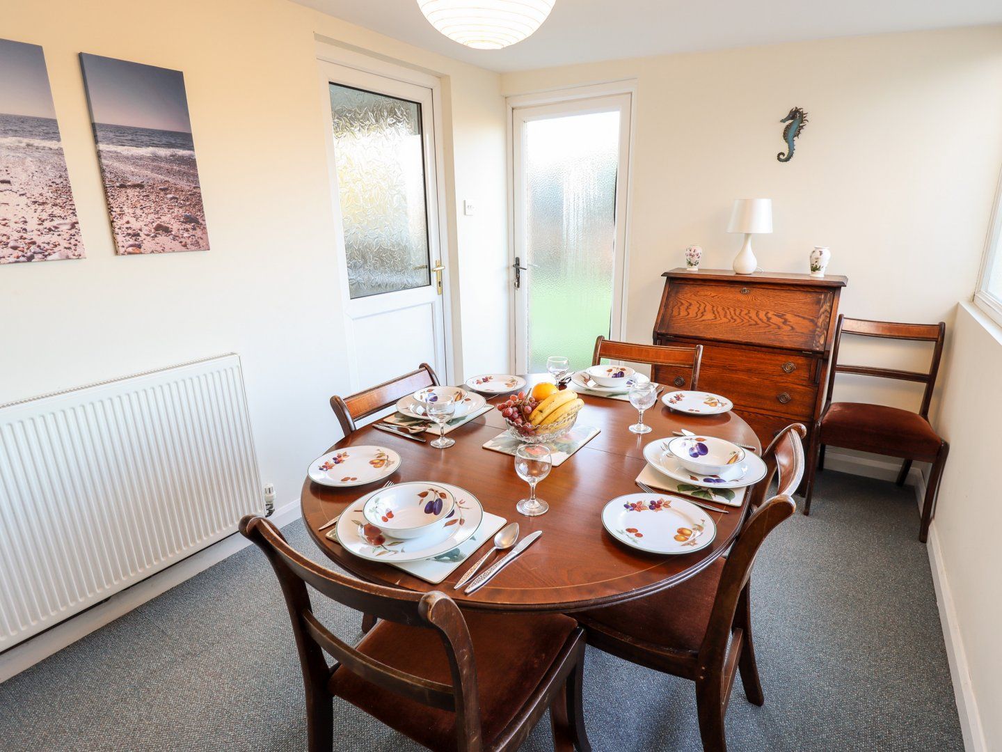 Amenities Gas central heating. Electric oven, gas hob, microwave, fridge/freezer, washing machine, dishwasher. Smart TV, WiFi. Fuel and power inc. in rent. Bed linen and towels inc. in rent. Travel cot and highchair available on request. Private driveway for 1 car, along with ample roadside parking. Front lawn, enclosed rear garden with lawn, patio, and furniture. One well-behaved dog welcome. Sorry, no smoking. Shop 1.2 miles, pub 0.3 miles, beach 500 metres. Note: The front garden is not enclosed. Note: The sofa bed in the sitting room sleeps one additional guest