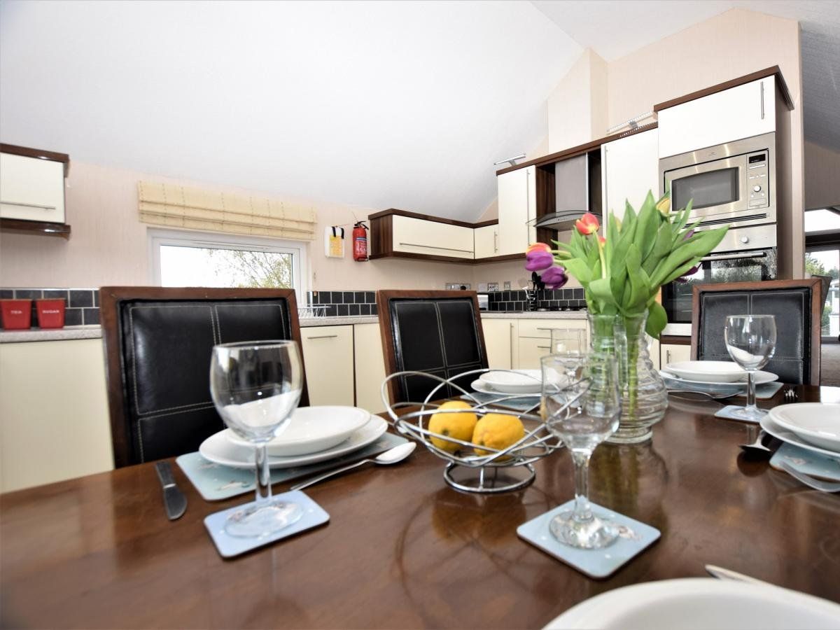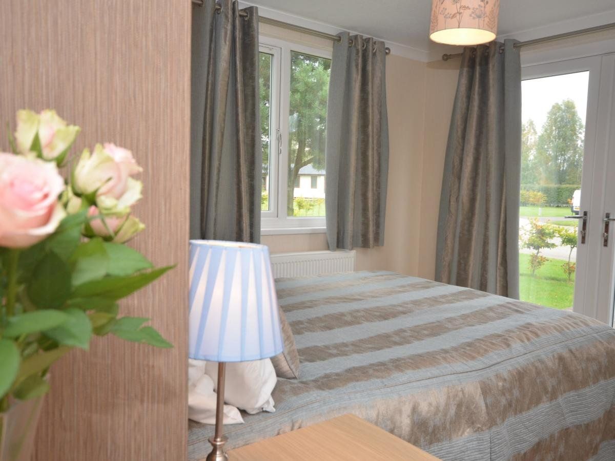 Boasting a spacious design and high-end amenities, the property offers a peaceful escape surrounded by 150 acres of thoughtfully landscaped grounds. The lodge sleeps up to five guests and provides access to excellent on-site facilities (charges apply), including a heated indoor pool, fishing lake, and an 18-hole golf course.