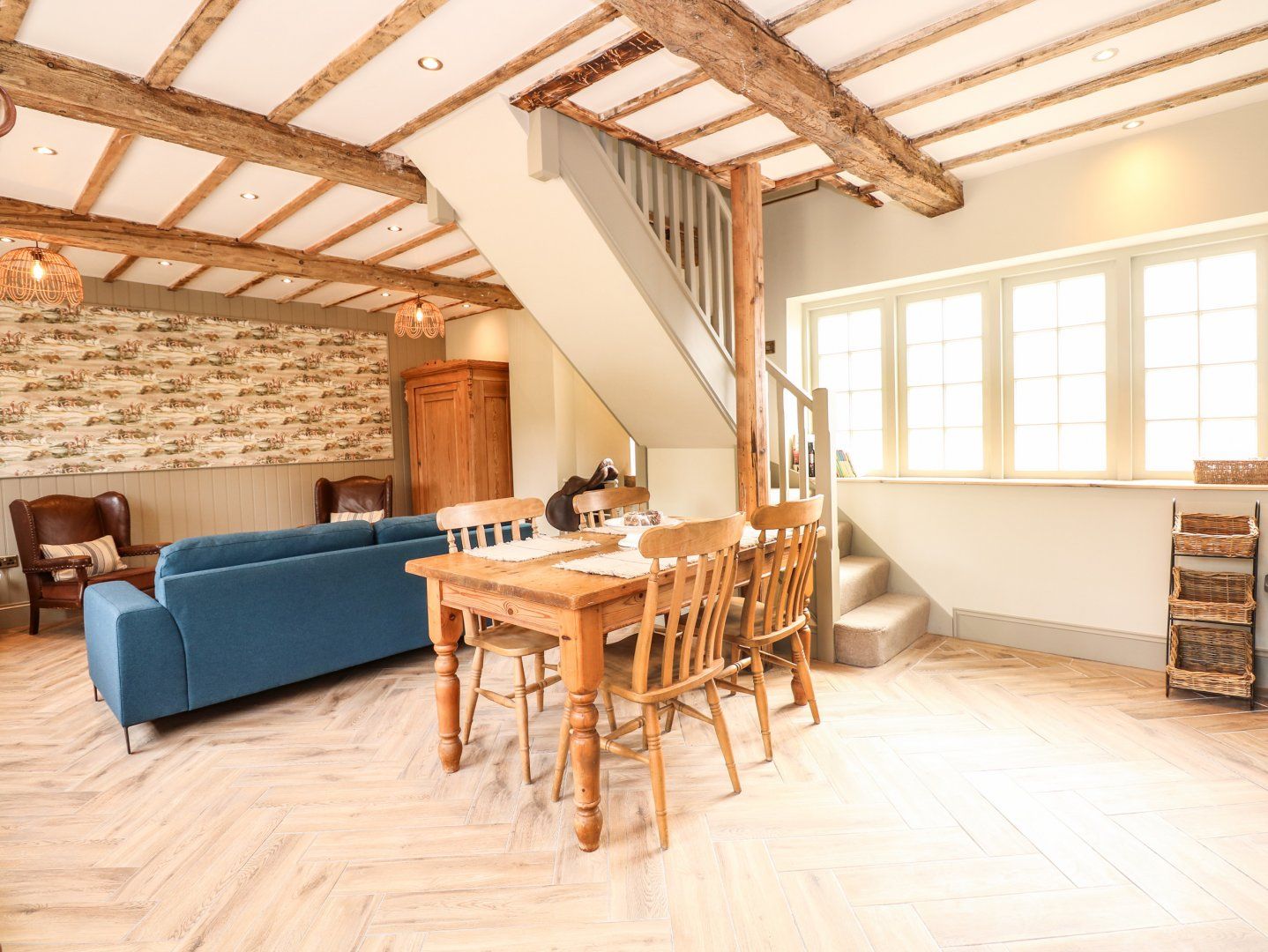 Accomodation Details Two bedrooms: 1 x king-size, 1 x twin. Ground-floor bathroom with bath, shower over, basin, heated towel rail and WC. First-floor cloakroom with basin and WC. Open-plan living space with kitchen, dining area and sitting area